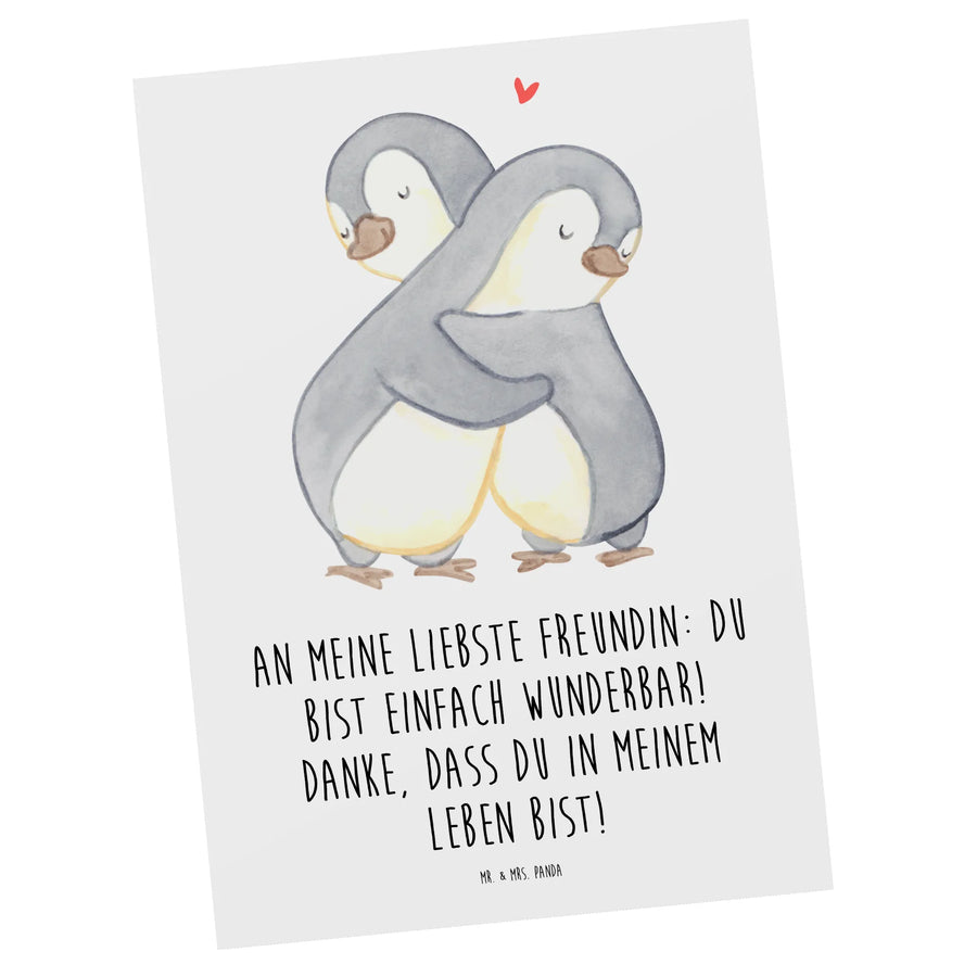 Zeig deiner besten Freundin, wie sehr du sie schätzt. Diese liebevoll gestaltete Postkarte aus der Mr. & Mrs. Panda „Danke“-Kollektion trägt den herzlichen Text: „An meine liebste Freundin: Du bist einfach wunderbar! Danke, dass du in meinem Leben bist!“ und ist damit die perfekte Dankeskarte für besondere Freundschaften.