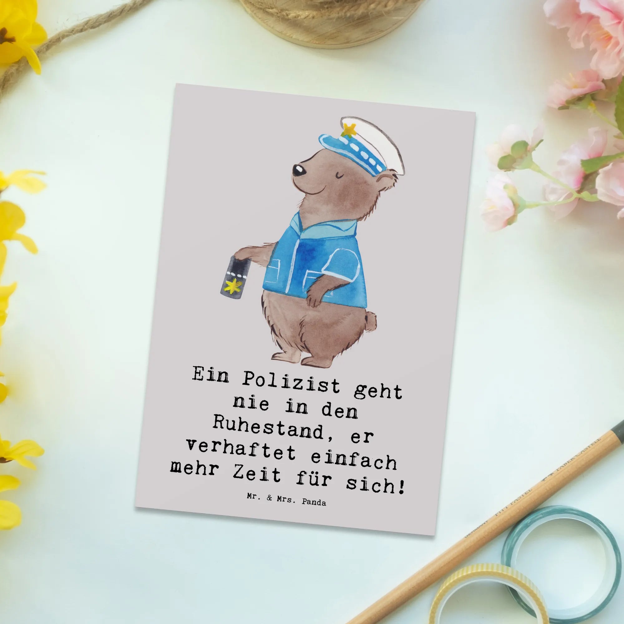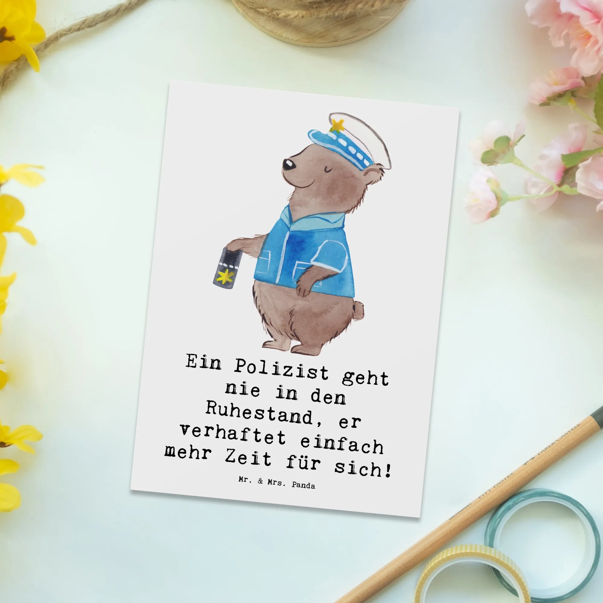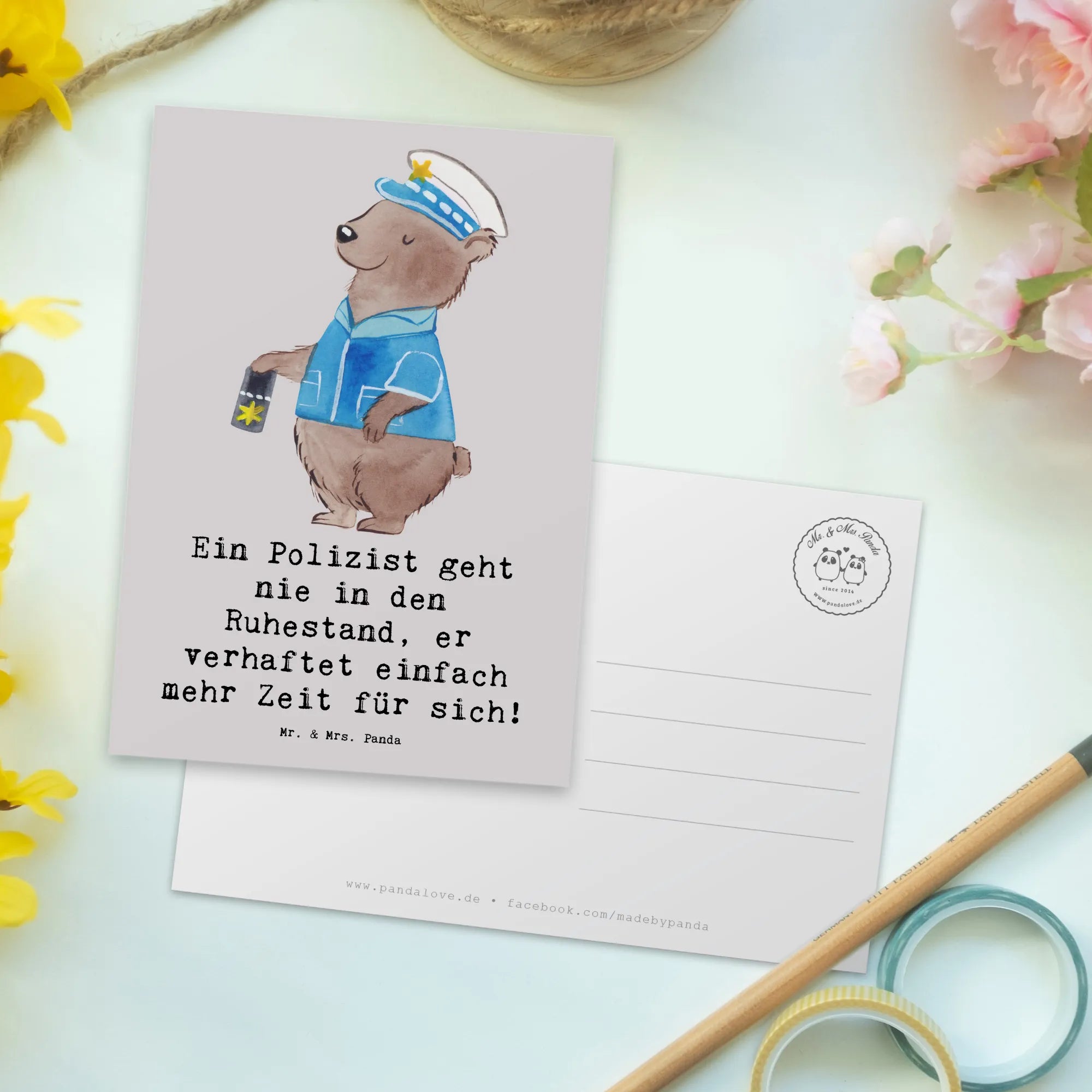 Auf dieser Karte prangt der witzige Slogan: 'Ein Polizist geht nie in den Ruhestand, er verhaftet einfach mehr Zeit für sich!' Diese Botschaft bringt nicht nur ein Lächeln auf die Lippen, sondern zeigt auch Wertschätzung für die wichtigen Aufgaben, die Polizisten täglich leisten.