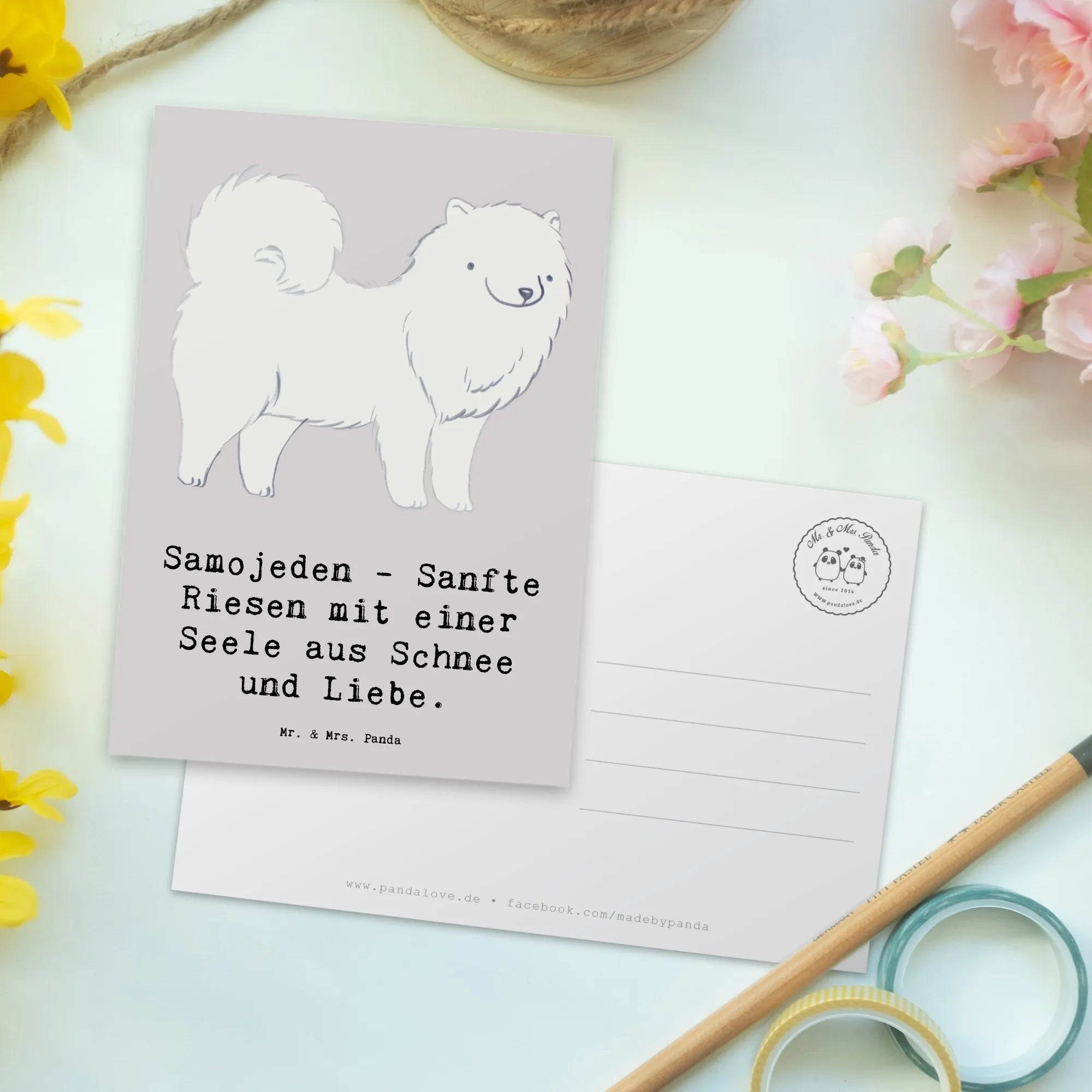 Postkarte Samojede Liebe - Weiß