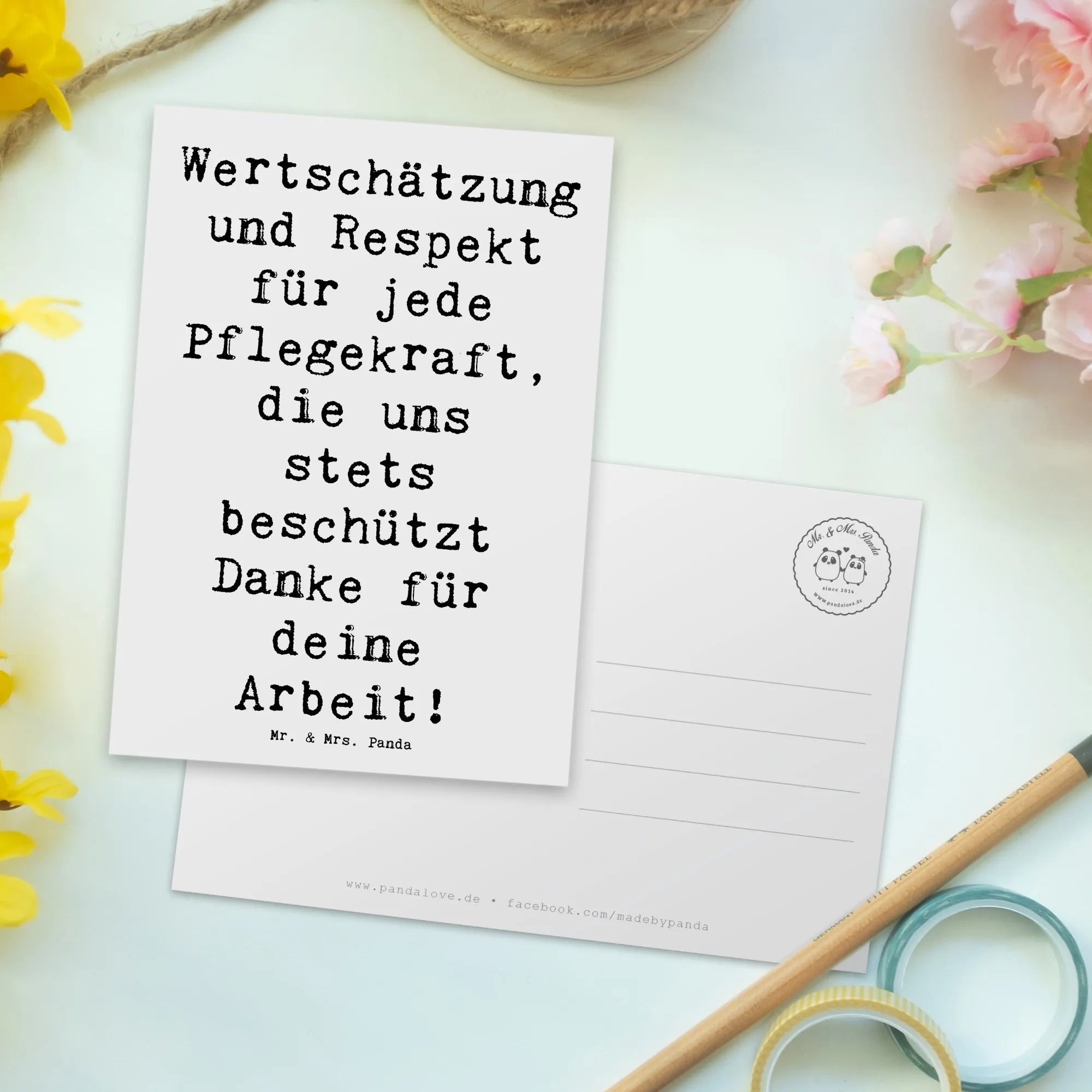 Suchst du nach einer besonderen Art, um Dankbarkeit auszudrücken? Dann ist die Postkarte "Pflegekraft" aus der Danke-Kollektion von Mr. & Mrs. Panda genau das Richtige für dich! Diese liebevoll gestaltete Postkarte trägt den wertvollen Slogan: "Wertschätzung und Respekt für jede Pflegekraft, die uns stets beschützt – Danke für deine Arbeit!" Damit zeigst du nicht nur deine Anerkennung, sondern hinterlässt auch einen bleibenden Eindruck.