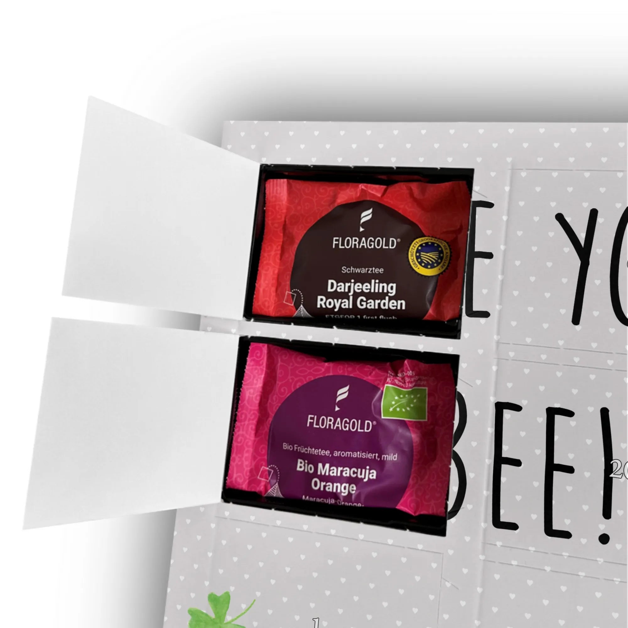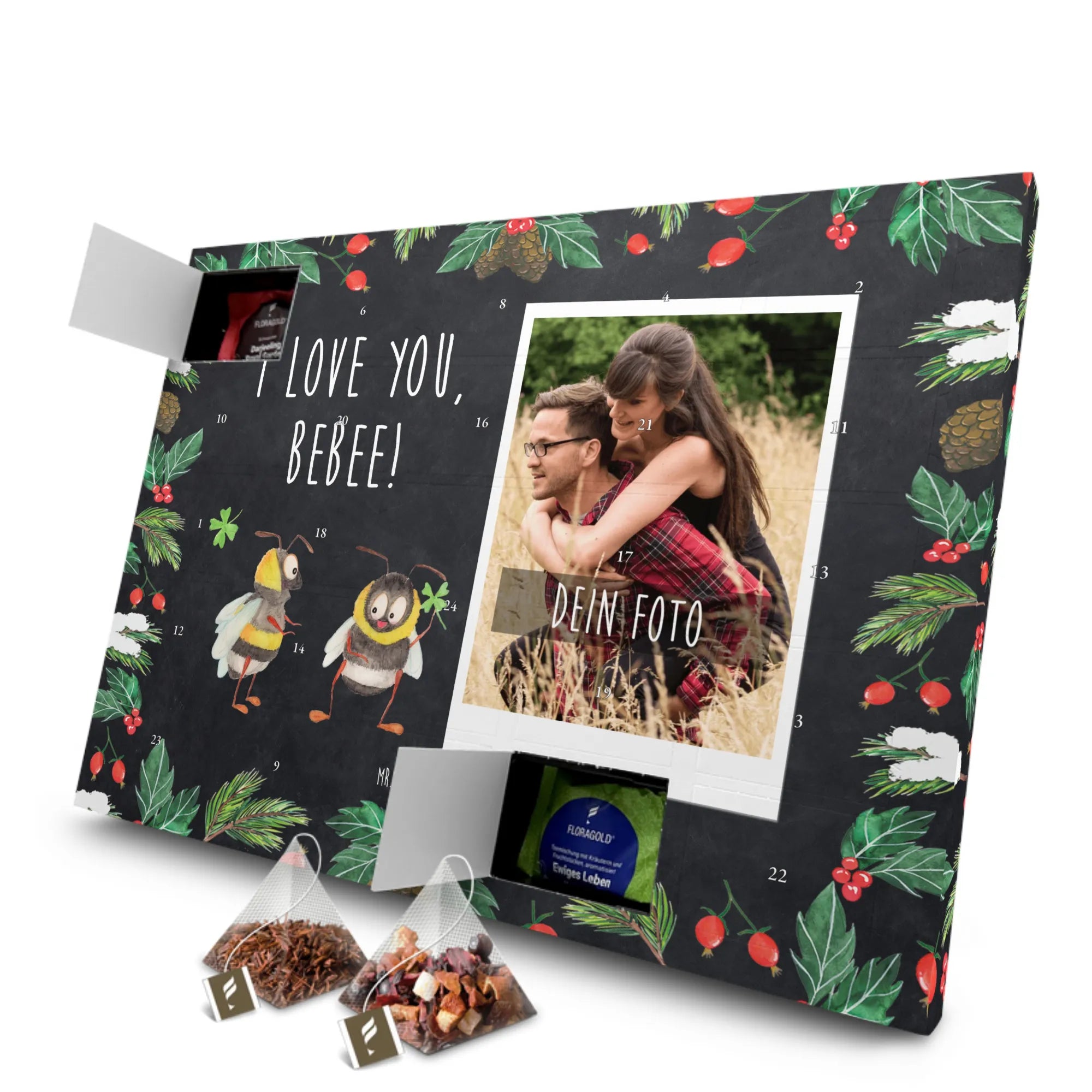 Der personalisierte Tee Foto Adventskalender mit dem Motive Bienen Paar ist das perfekte Geschenk für all diejenigen, die ihren Liebsten eine besondere Freude bereiten möchten. Ob zum Valentinstag, Jahrestag oder einfach als Liebesbeweis, dieser Adventskalender ist eine wundervolle Möglichkeit, jeden Tag im Advent ein wenig Wärme und Freude zu schenken.