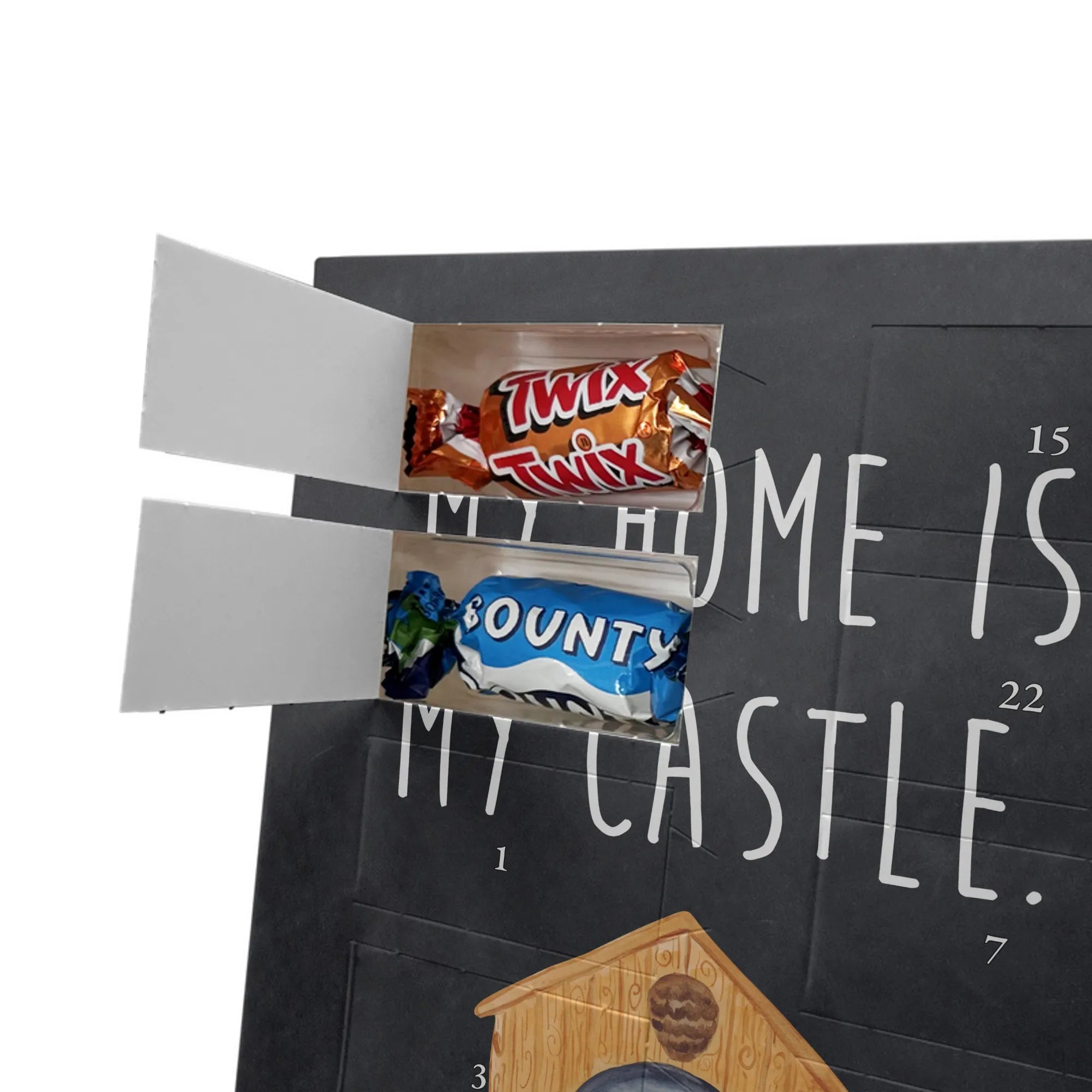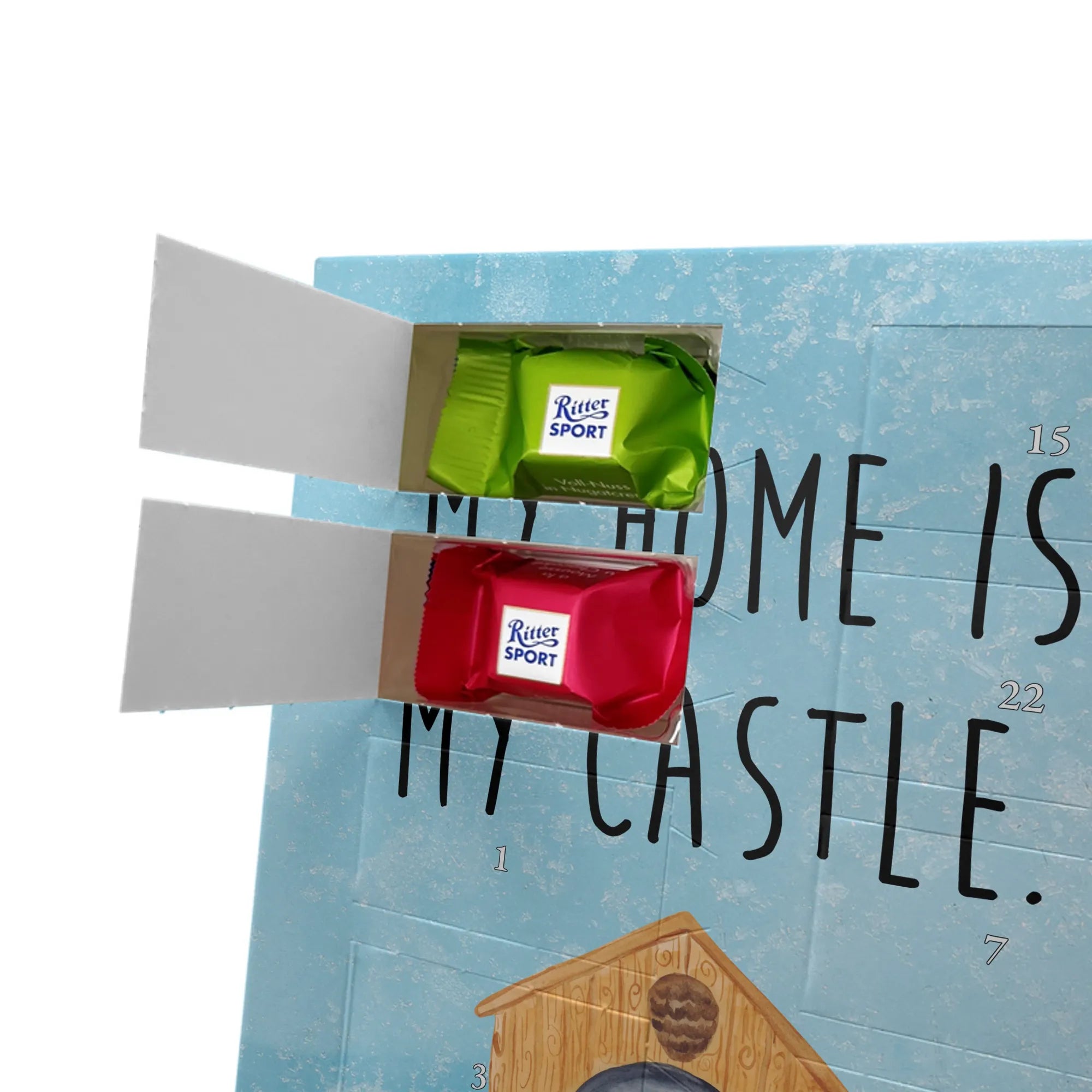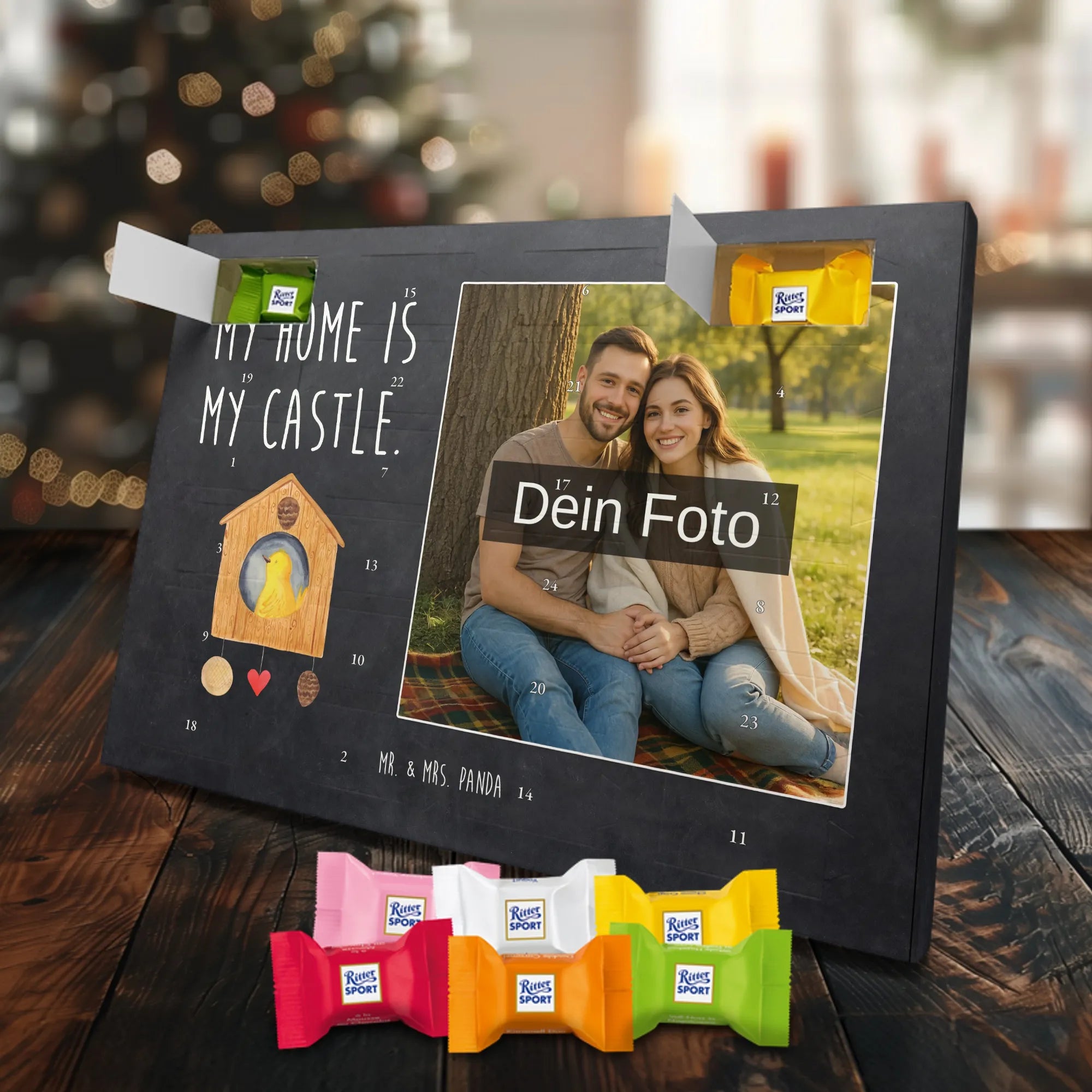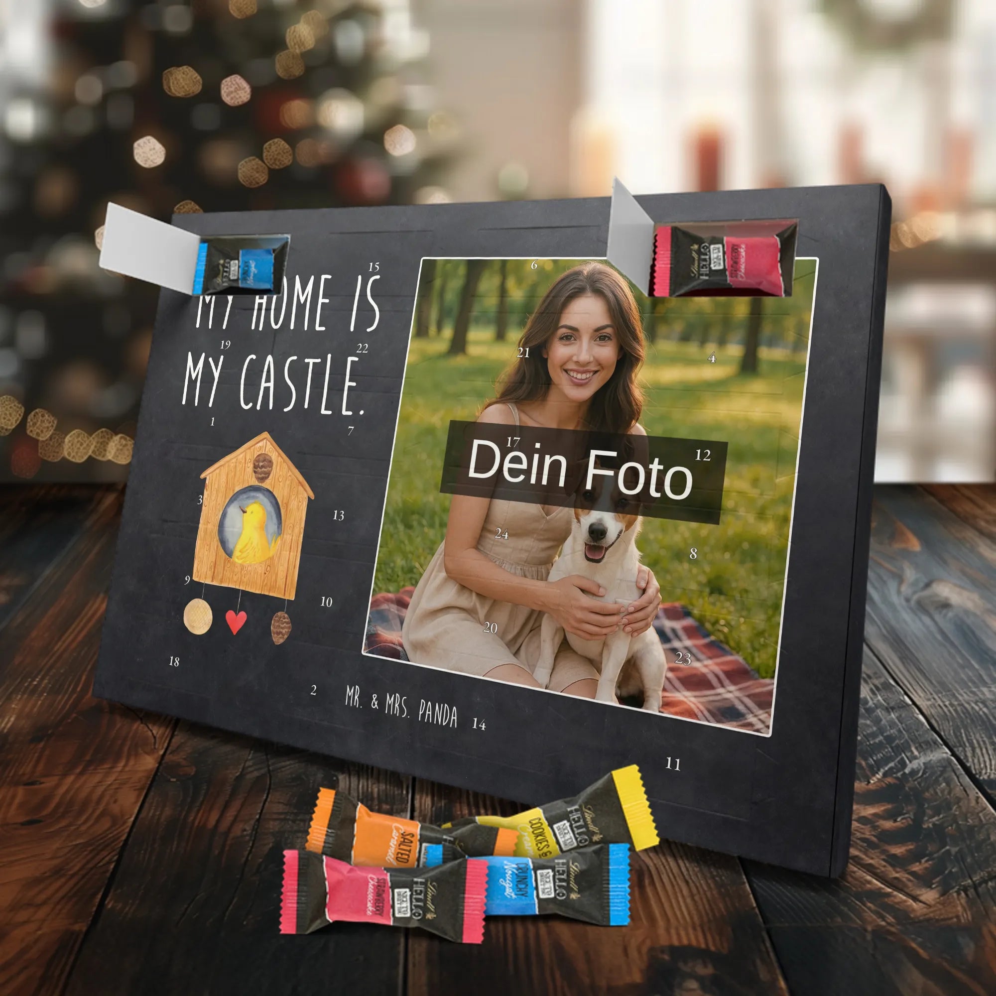 Personalisierter Schoko Foto Adventskalender Vogelhaus aus der liebevollen Small World Kollektion von Mr. & Mrs. Panda – perfekt für alle, die Weihnachten mit Herz und einem Hauch Natur feiern möchten. Auf dem Motiv sitzt ein fröhlicher gelber Vogel in einem gemütlichen Vogelhäuschen. Der dazugehörige Spruch „My home is my castle.“ macht den Kalender zum charmanten Zeichen für Geborgenheit und Lieblingsorte. 🎄