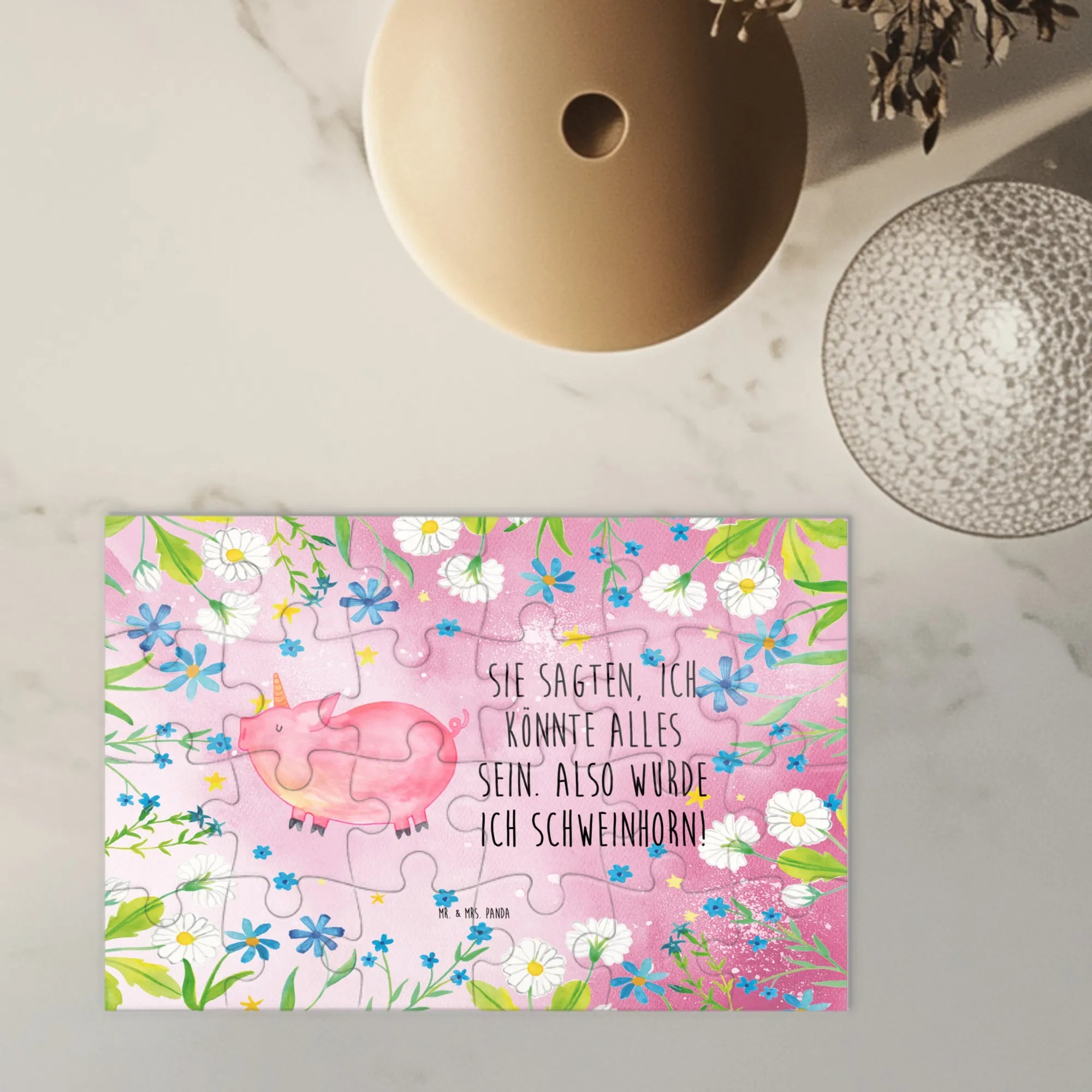 Ob für Kinder, Erwachsene, Einhorn-Fans oder als lustiges Geschenk für Freunde – dieses Schweinhorn-Puzzle ist ein Hingucker und sorgt für Lachen, gemeinsame Zeit und entspannte Puzzle-Momente. Ein zauberhaftes Geschenk aus der Einhorn - Kollektion von Mr. & Mrs. Panda.