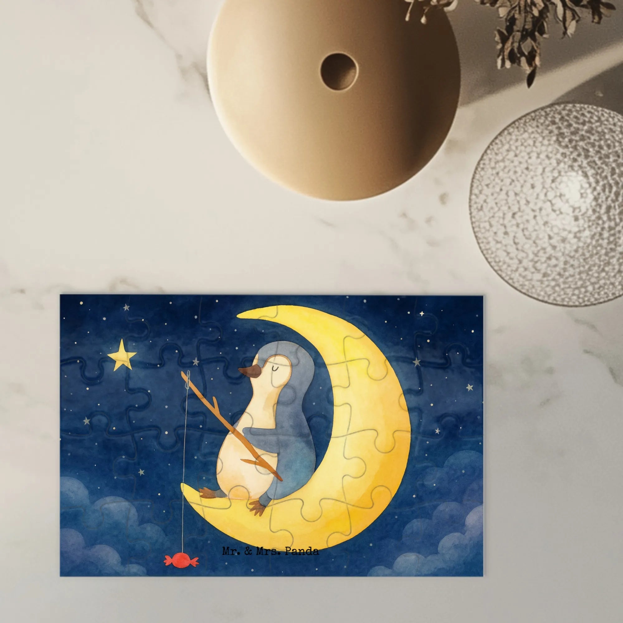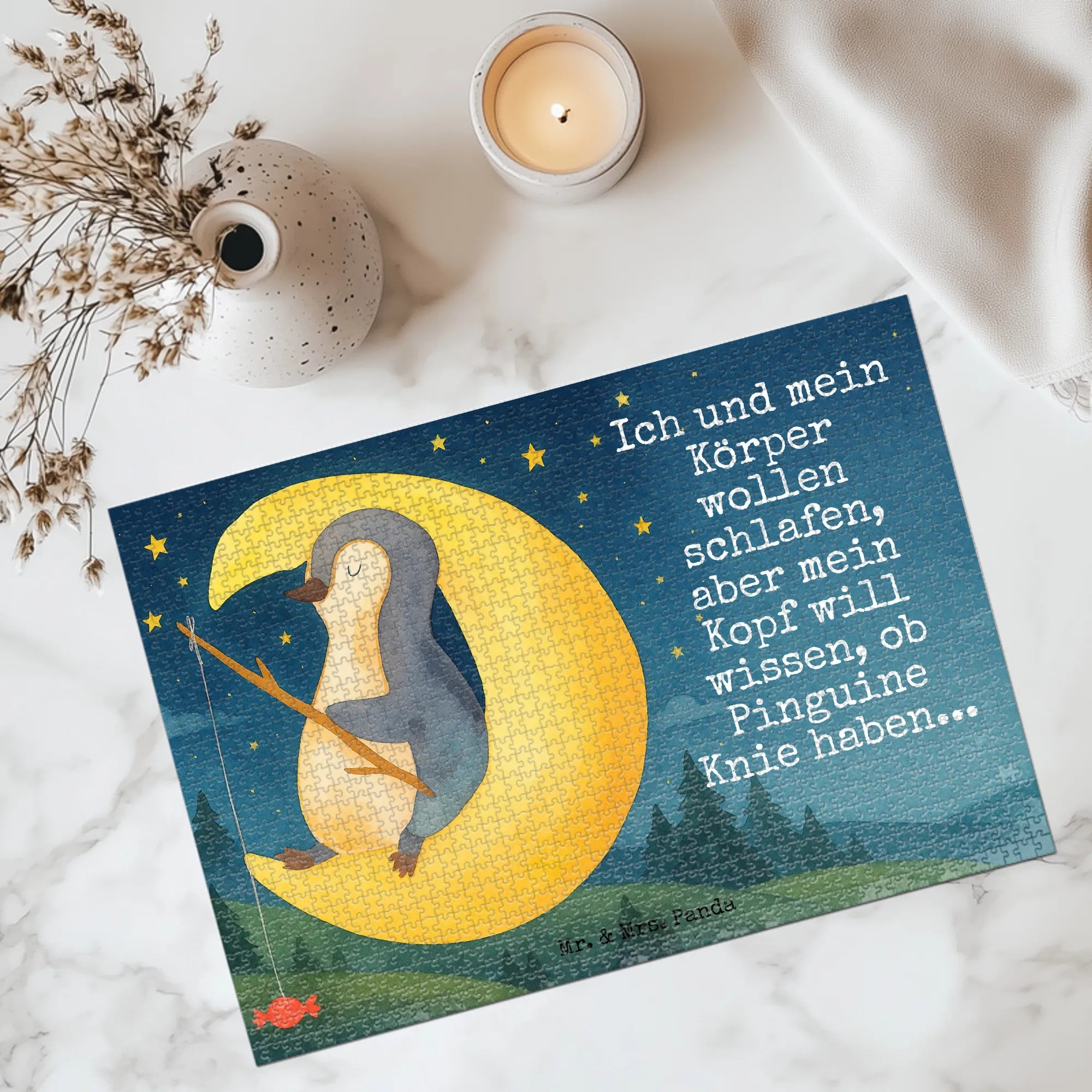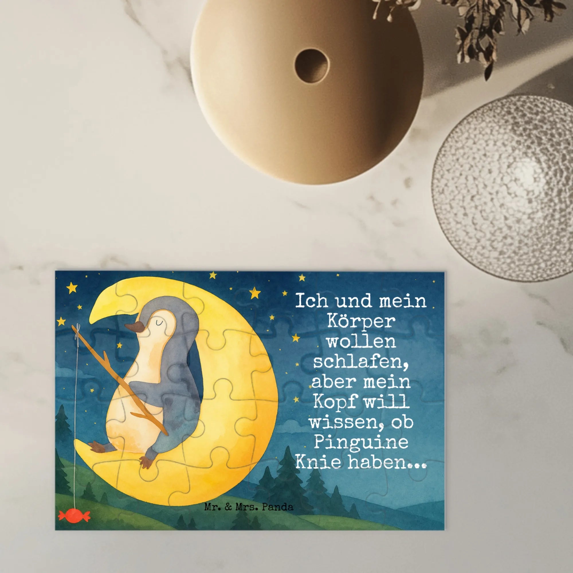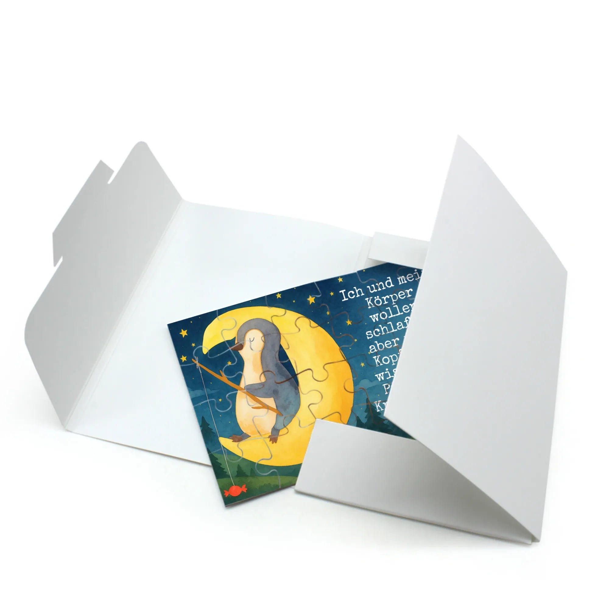 Puzzle pingwin księżyc Design Puzzle, Pinguin, Pinguine, Spruch, schlafen, Nachtruhe, Einschlafen, Schlafzimmer, Schlafstörungen, Gästezimmer