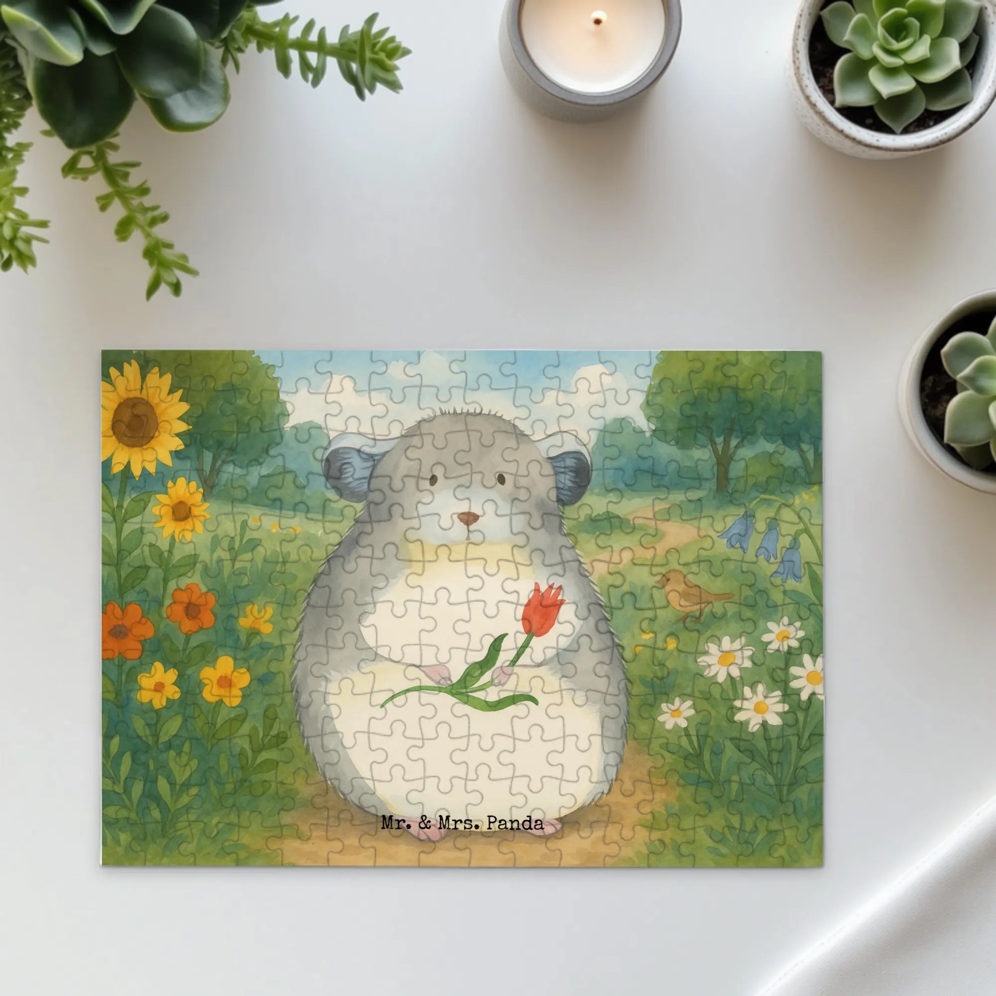 Puzzle szynszyla kwiat Design - 192 Teile - z napisem