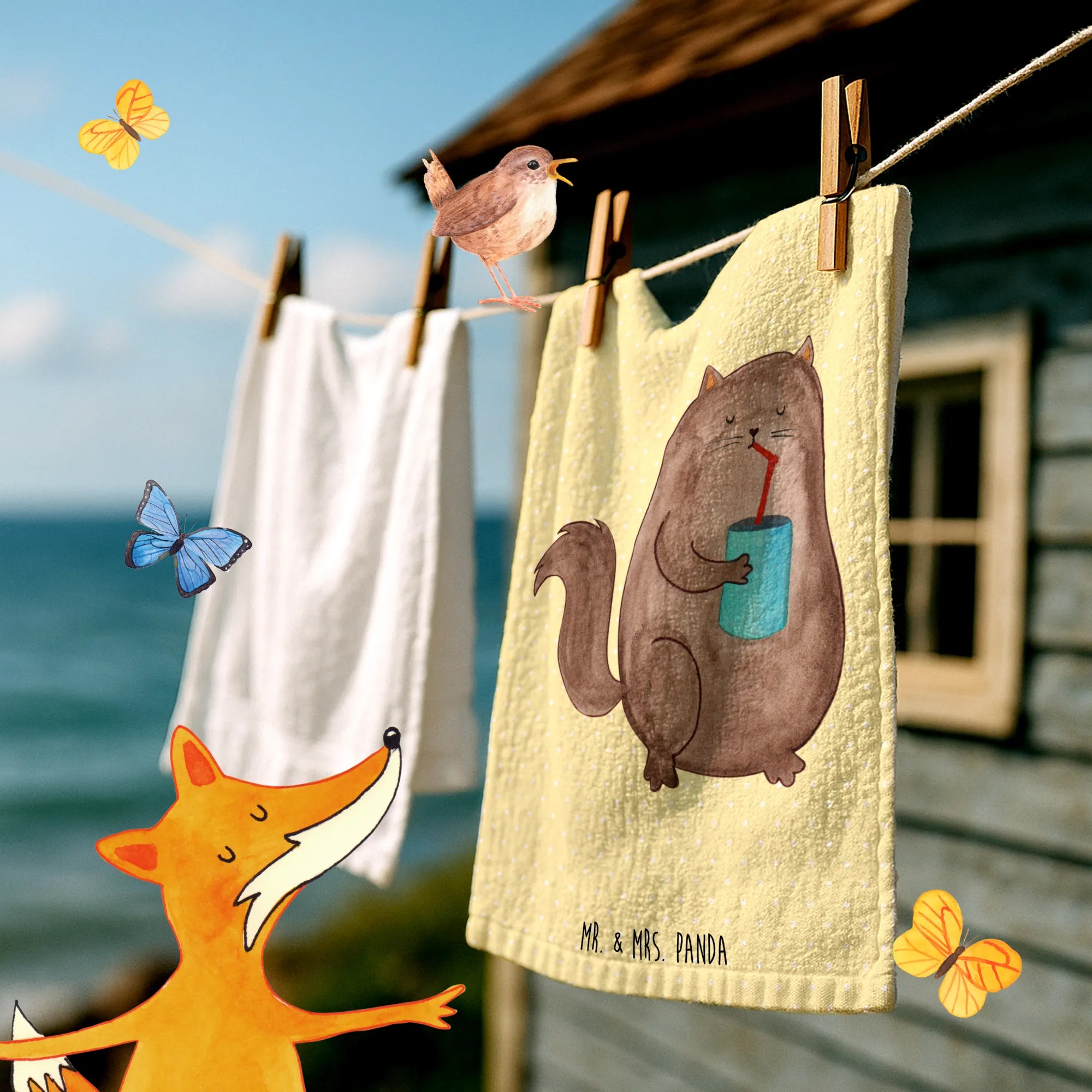 Ręcznik dla gości kot puszka - z napisem - Pastelowy żółty