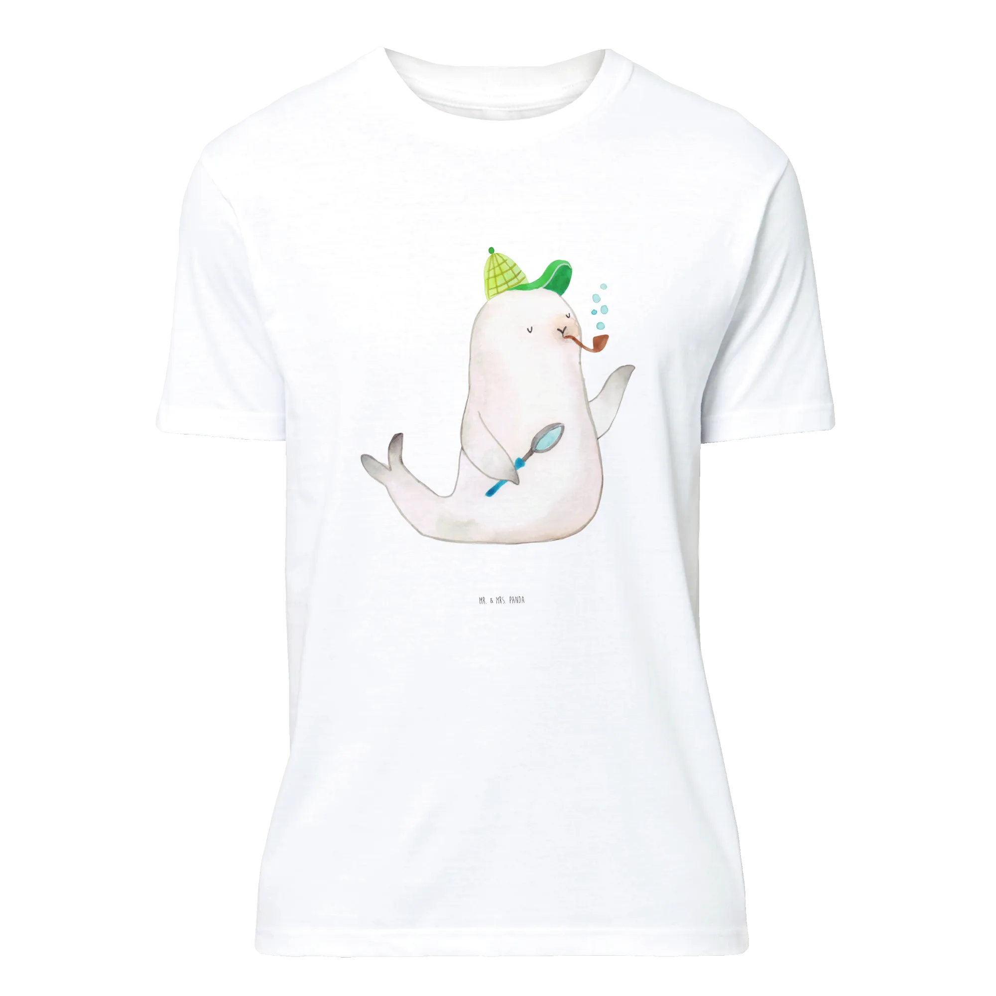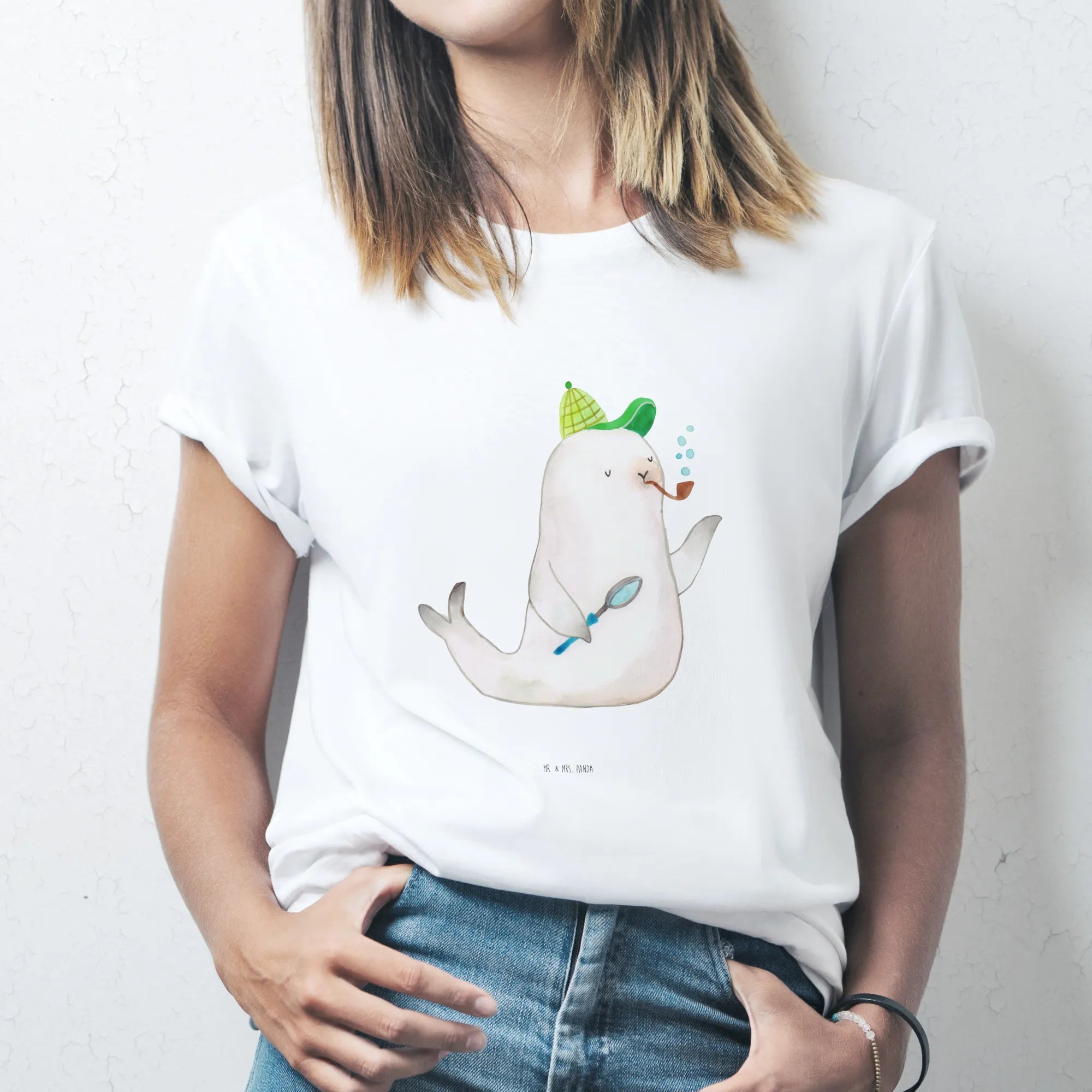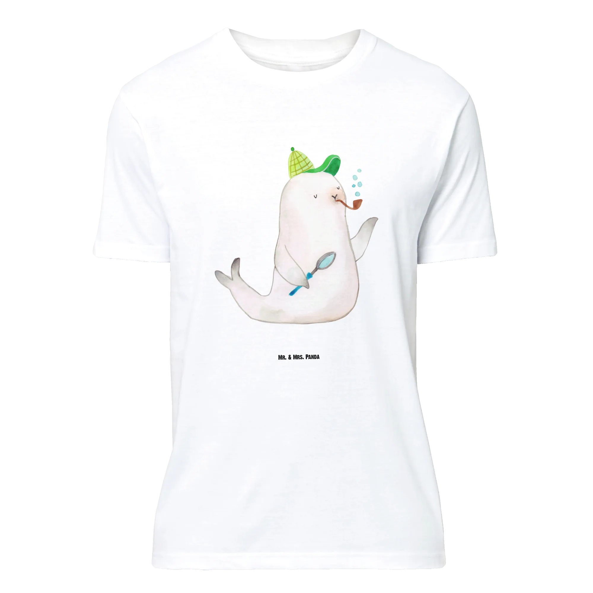Rozmiar M T-shirt foka Sherlock - Größe XXL T-Shirt - z napisem - biały