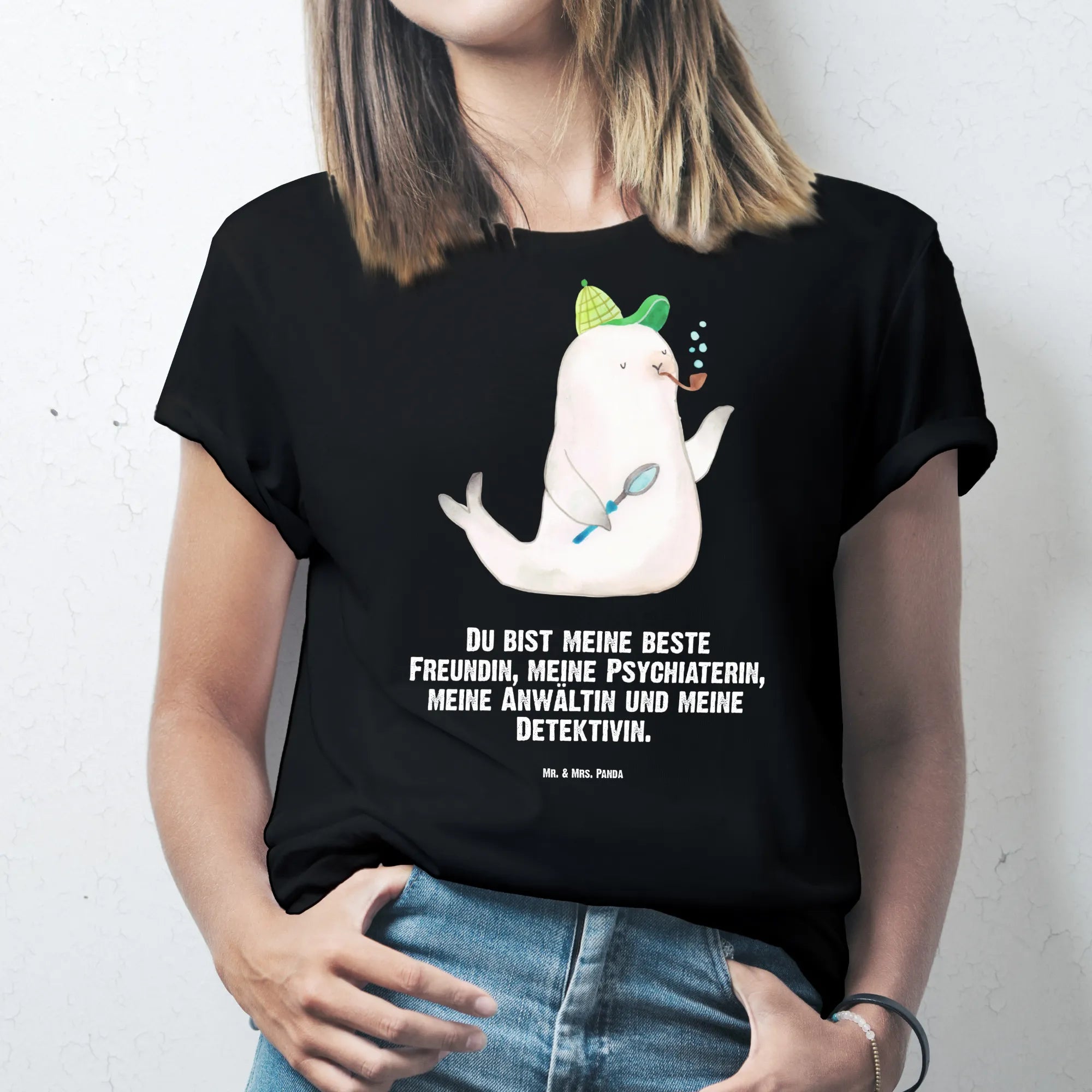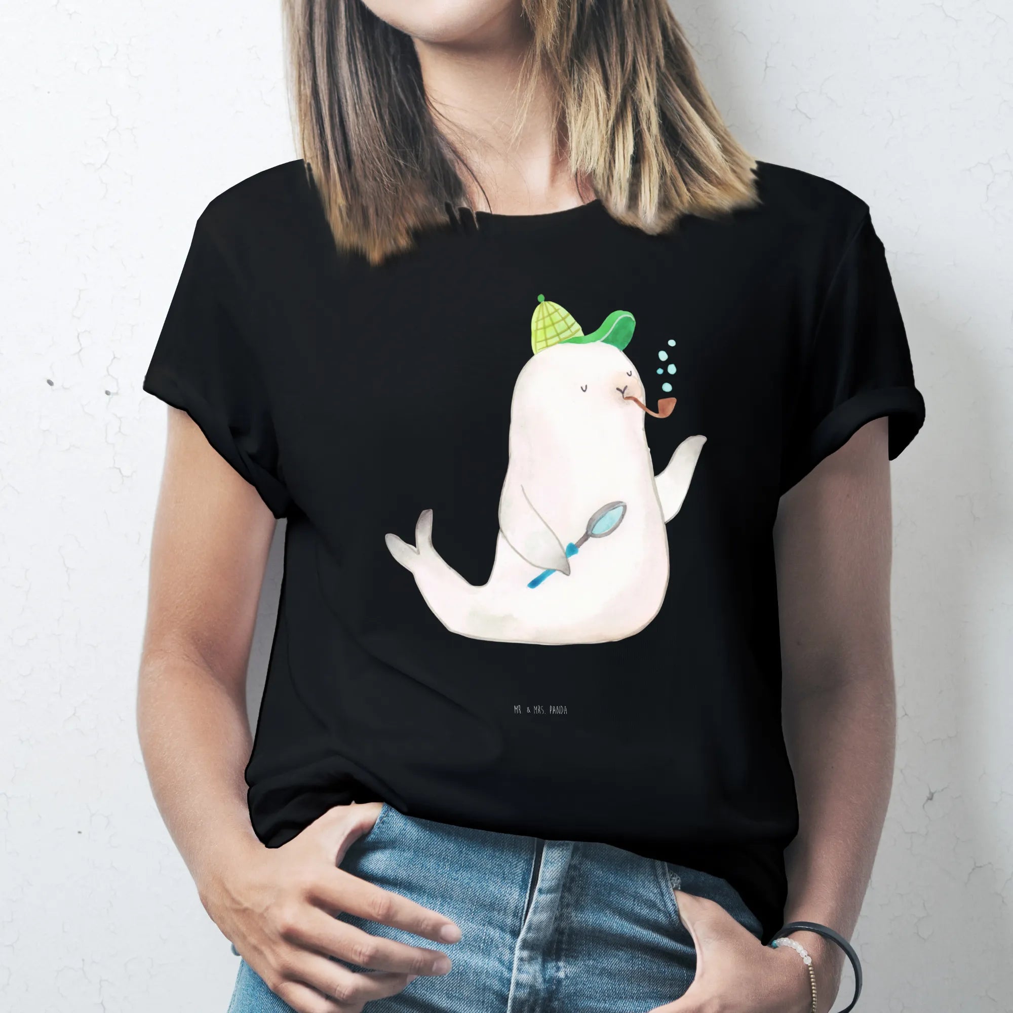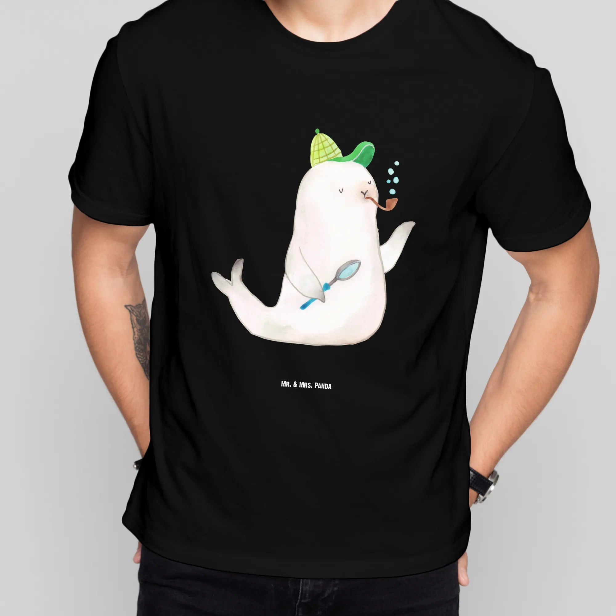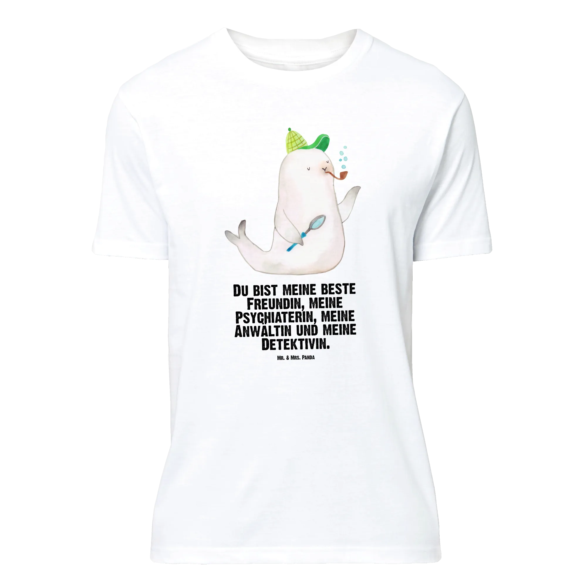 Rozmiar M T-shirt foka Sherlock - Größe XXL T-Shirt - z napisem - biały