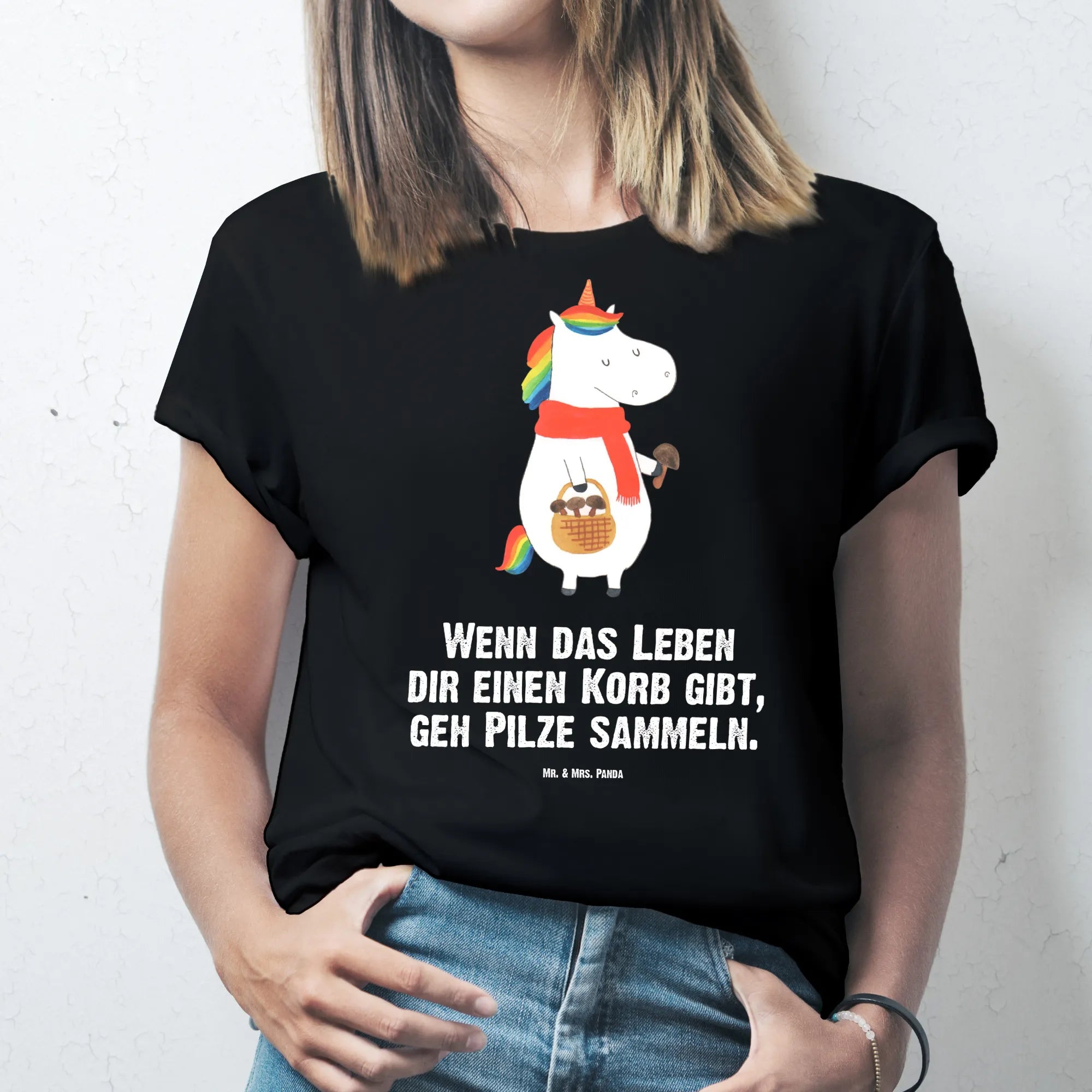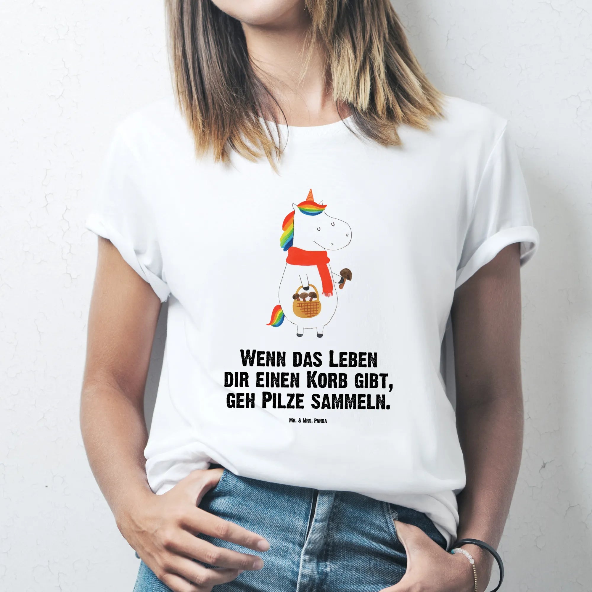 Rozmiar M T-shirt Jednorożec grzyb - Größe L T-Shirt - z napisem - biały