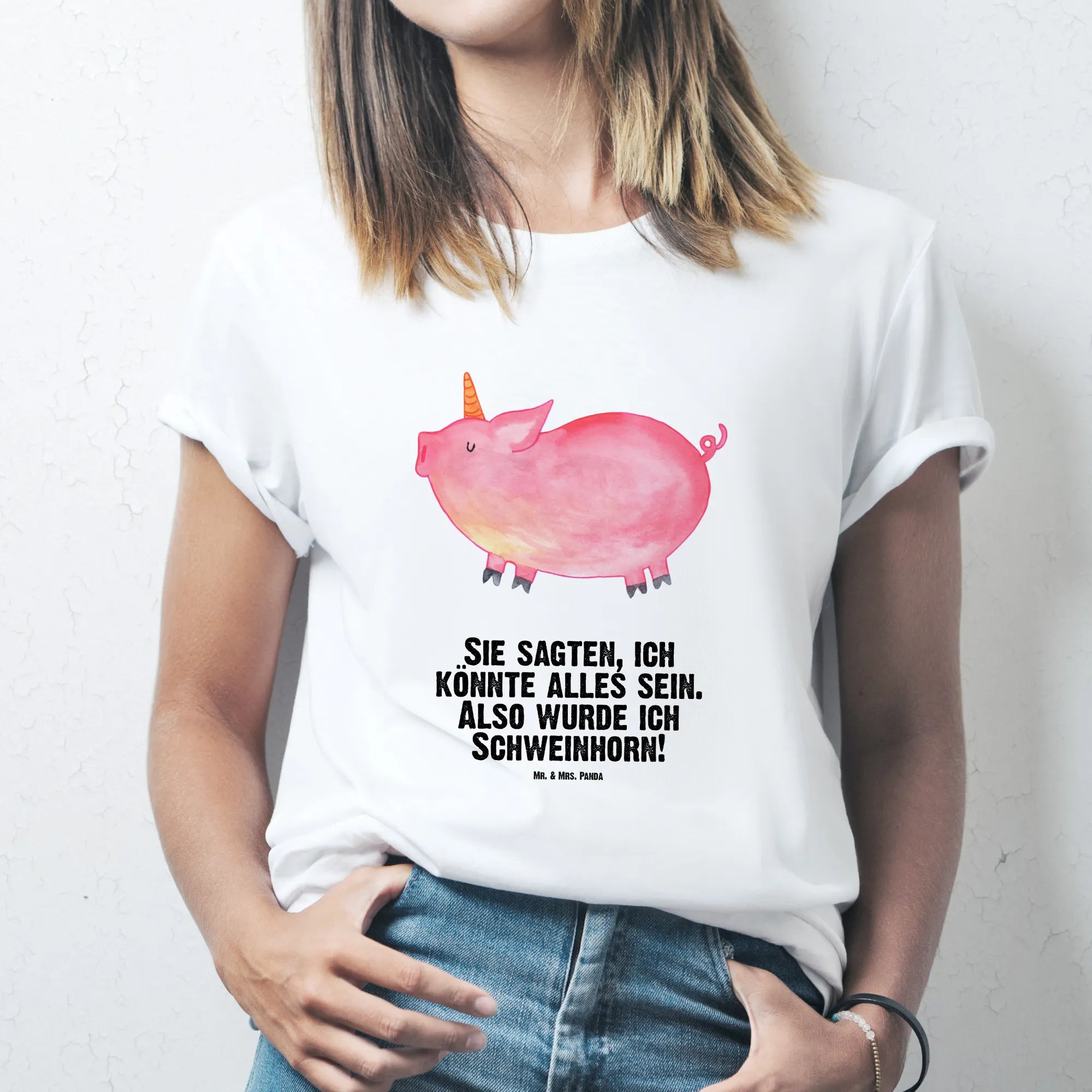 Rozmiar M T-shirt jednorożec świnia - Größe L T-Shirt - z napisem - biały