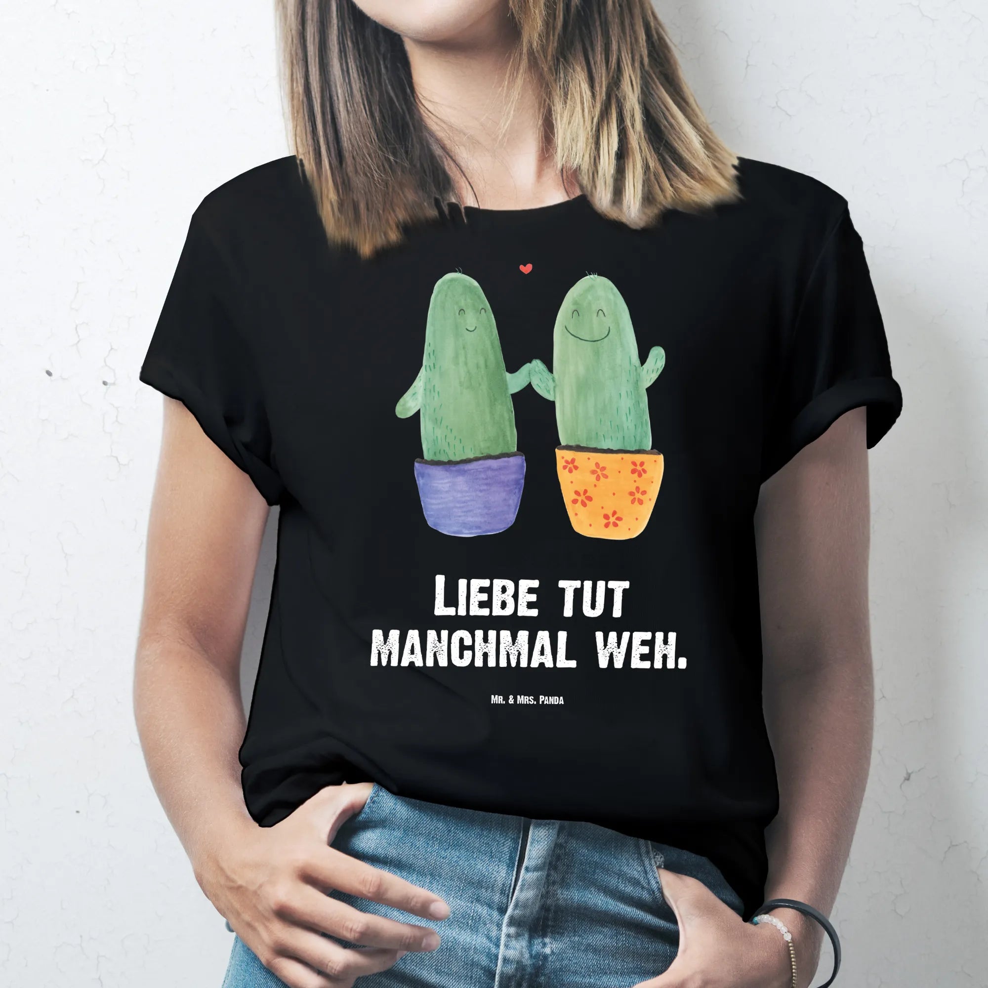 Rozmiar M T-shirt kaktus Miłość - Größe L T-Shirt - z napisem - biały