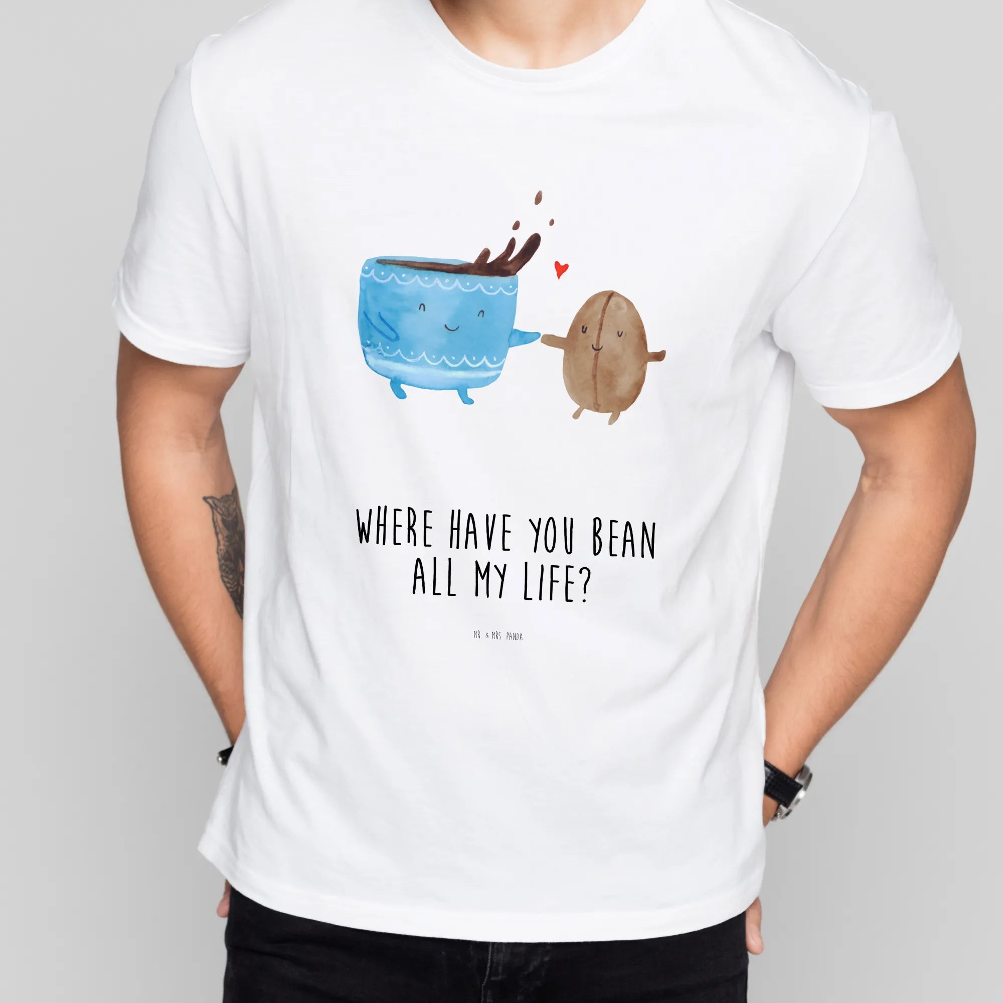 Rozmiar M T-shirt kawa ziarno - Größe S T-Shirt - z napisem - biały