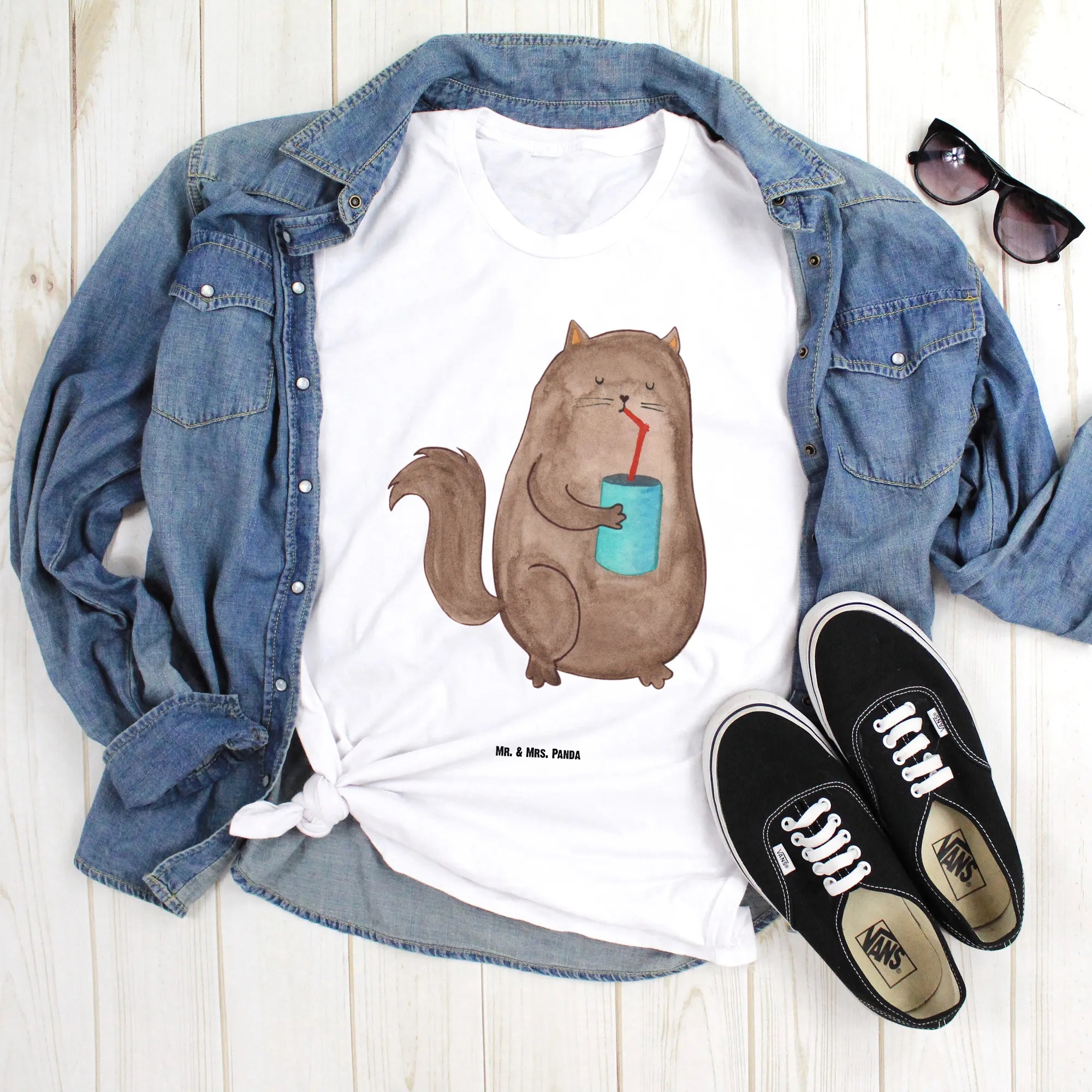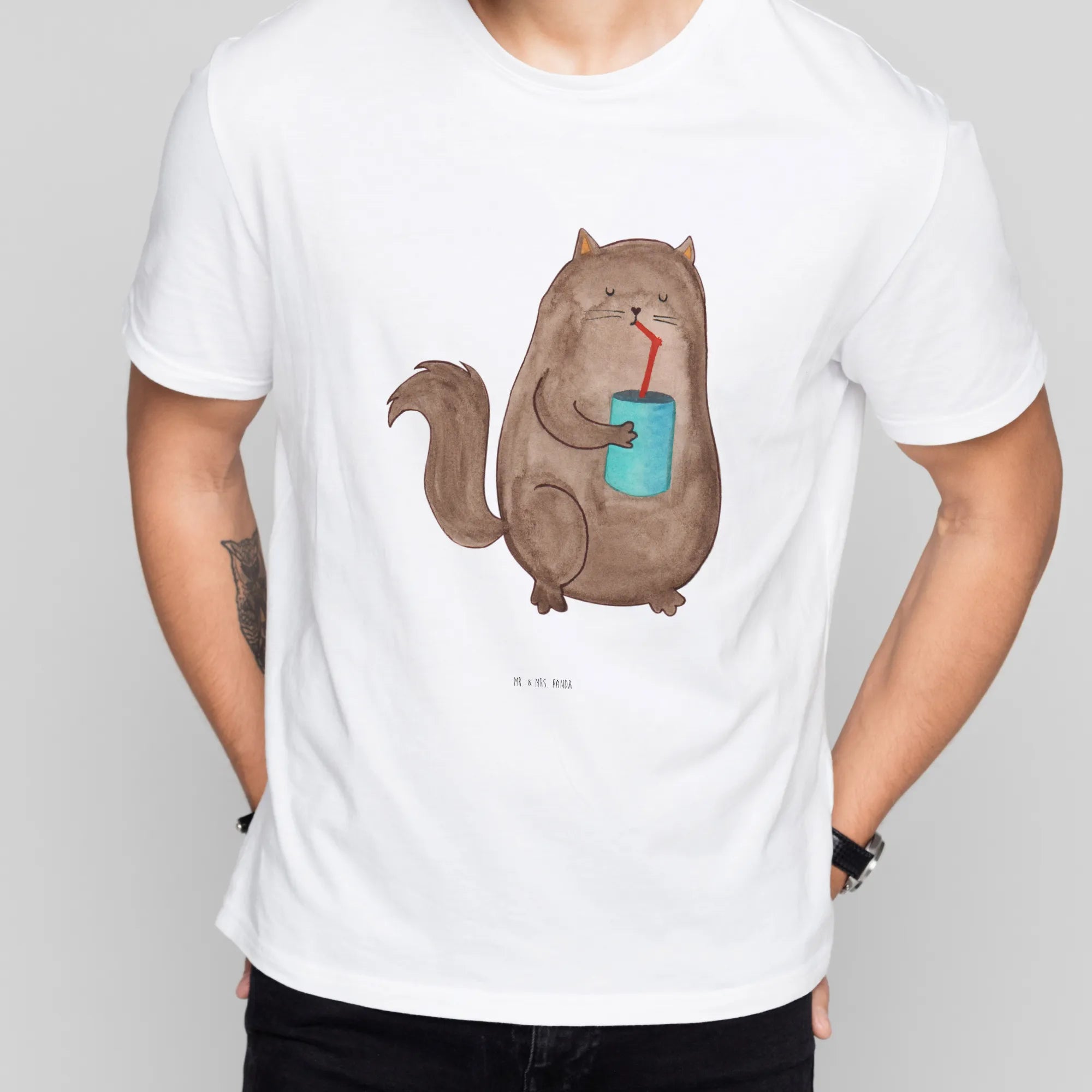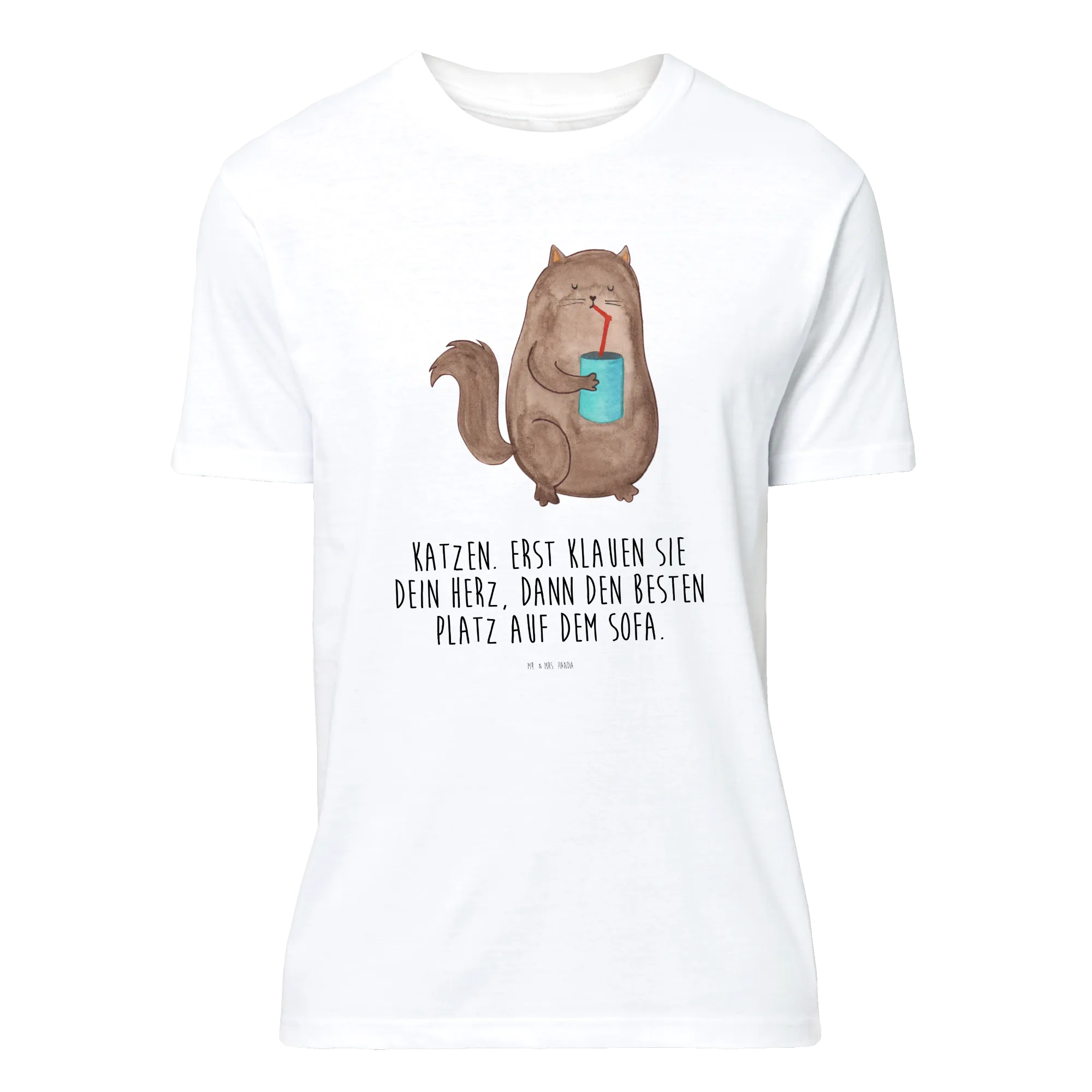 Rozmiar M T-shirt kot puszka - Größe L T-Shirt - z napisem - biały