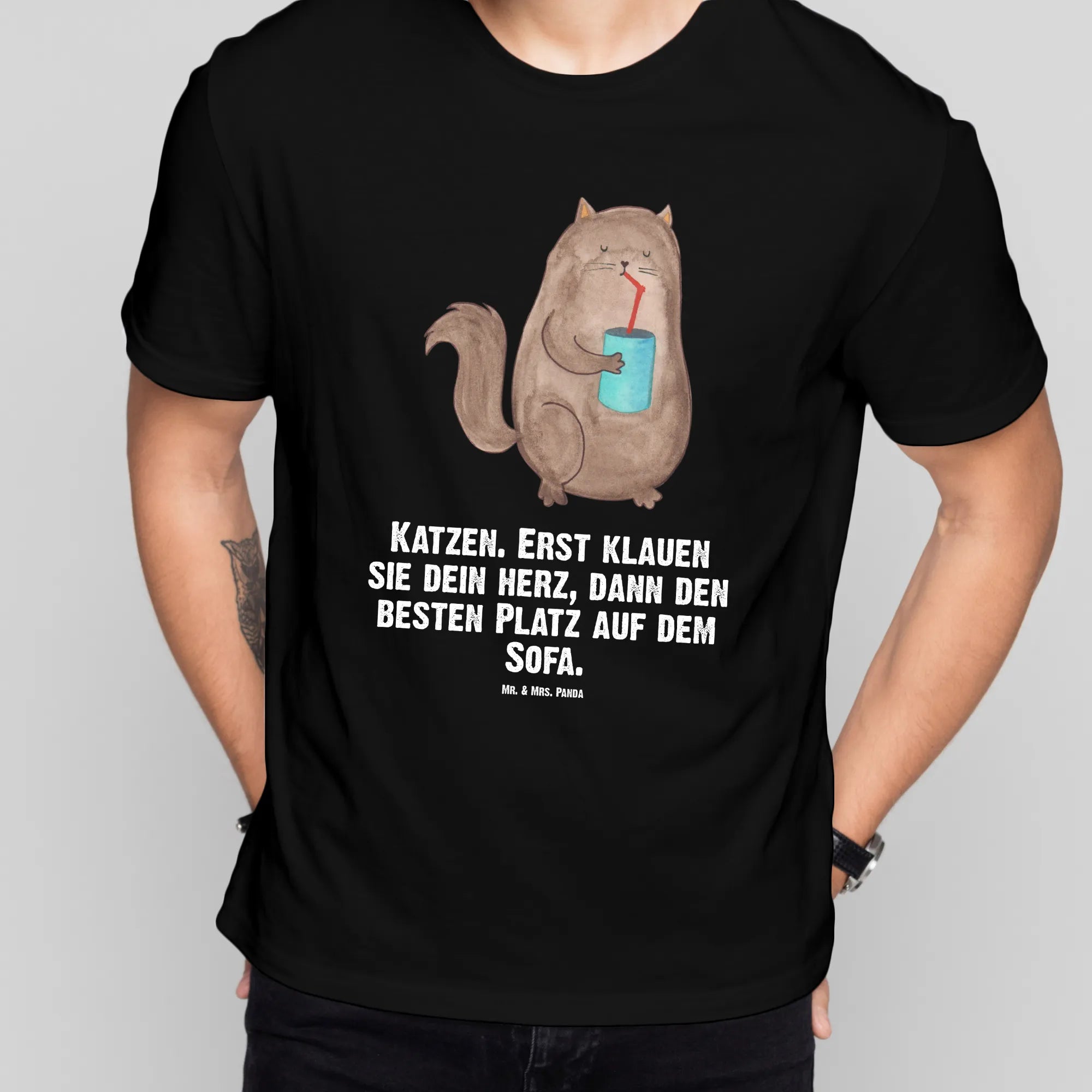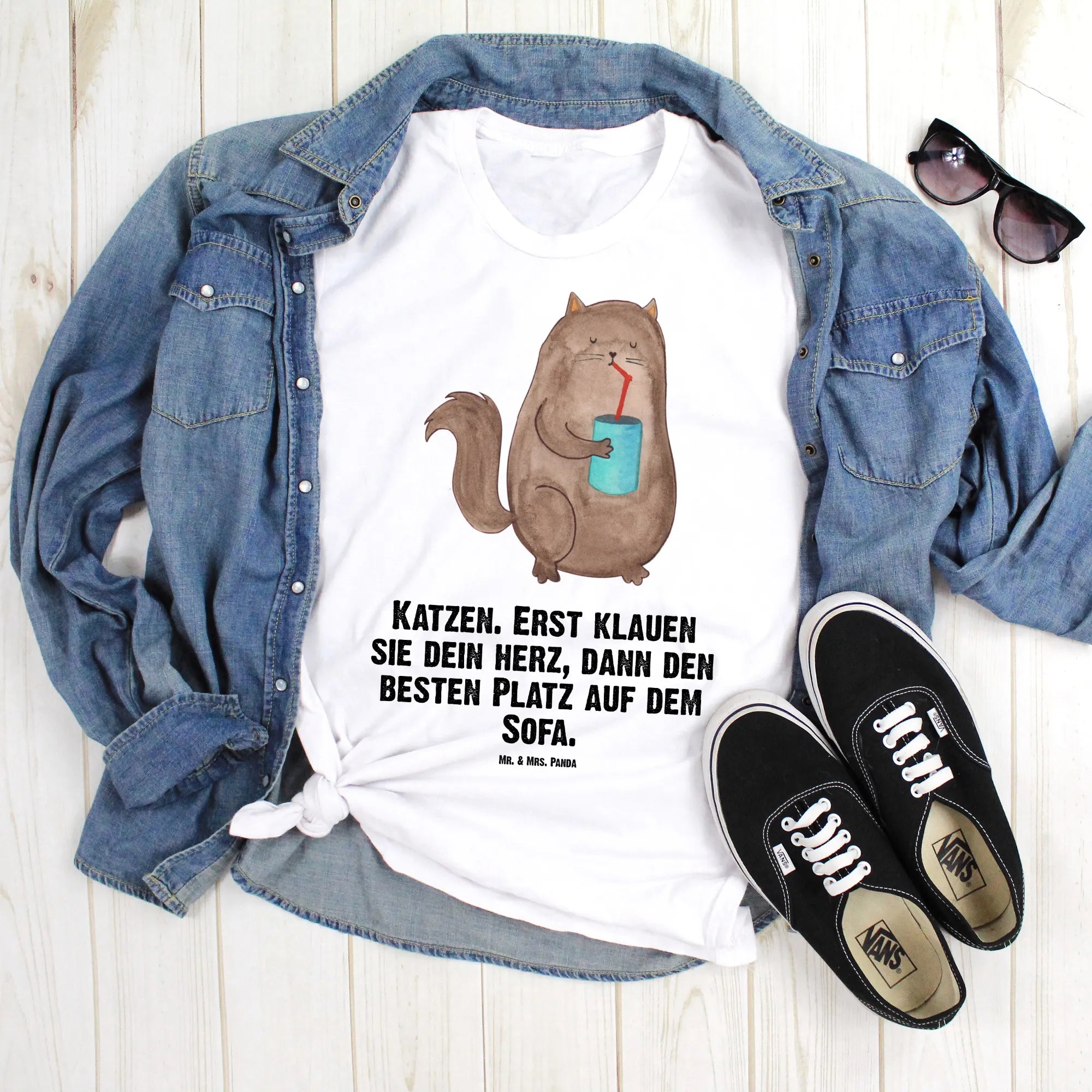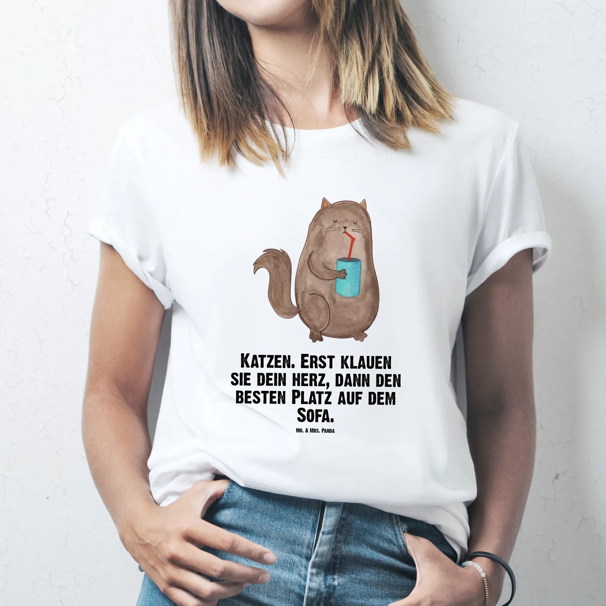 Rozmiar M T-shirt kot puszka - Größe L T-Shirt - z napisem - biały