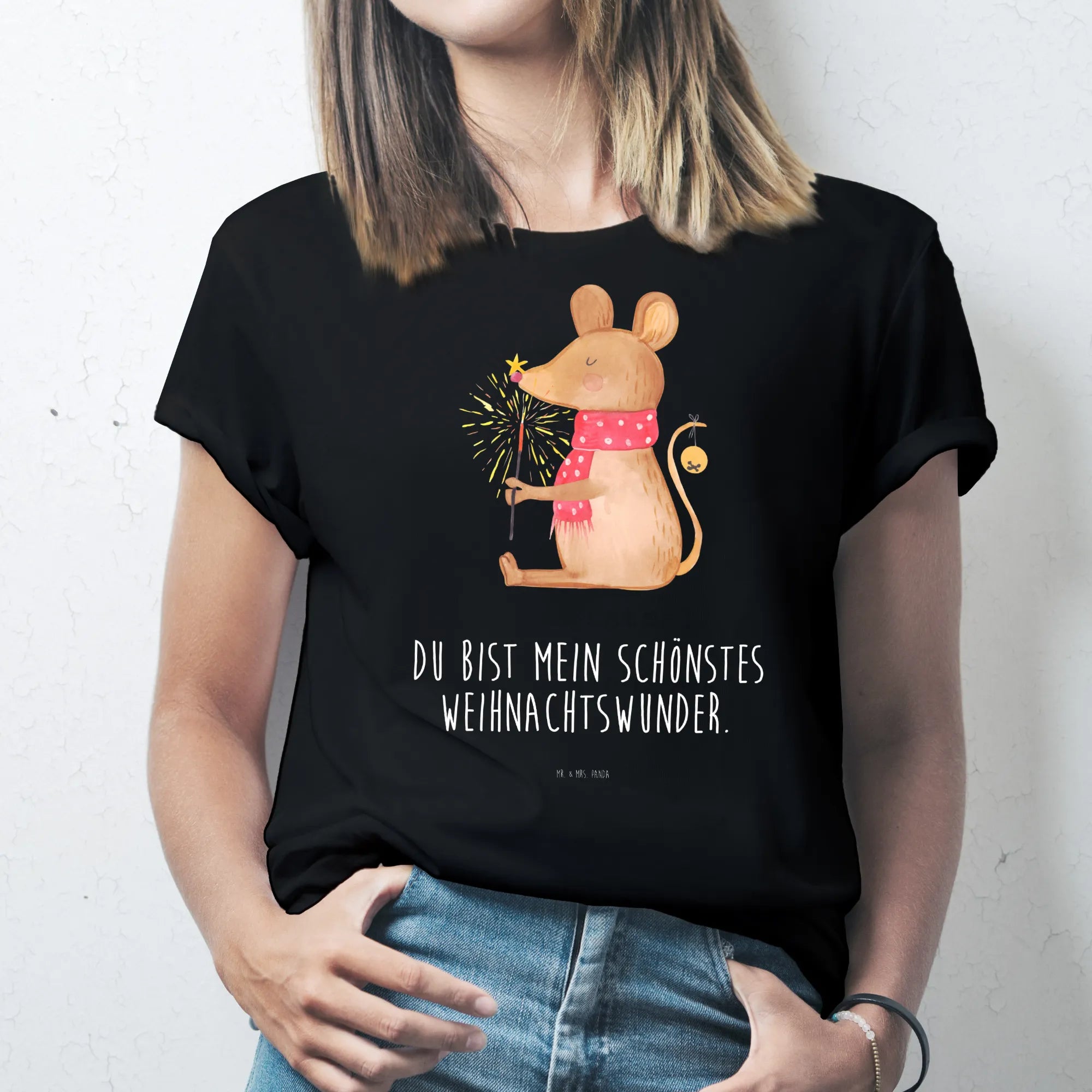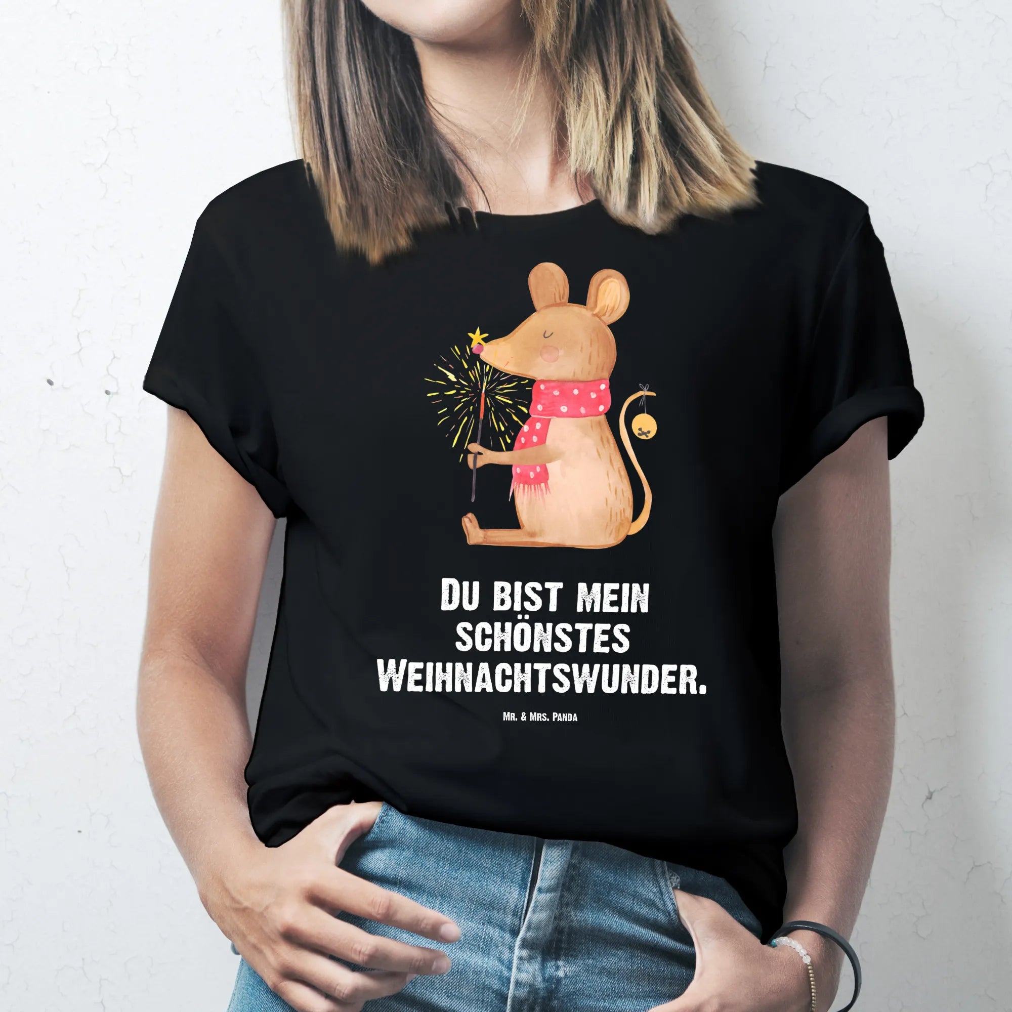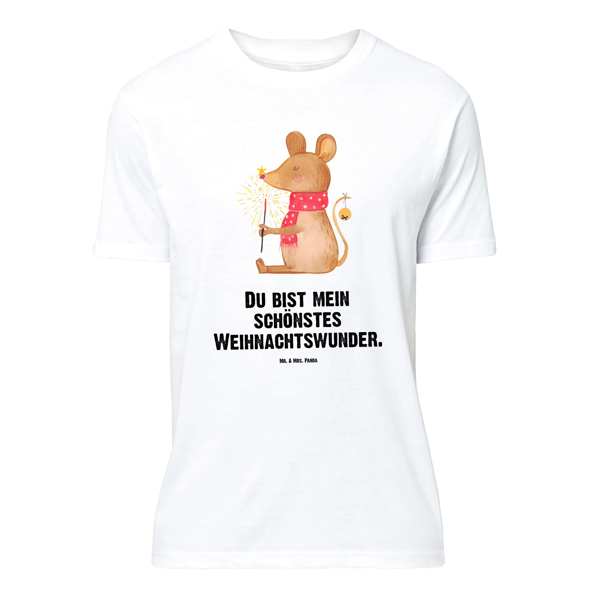 Rozmiar M T-shirt mysz Boże Narodzenie - Größe M T-Shirt - z napisem - biały