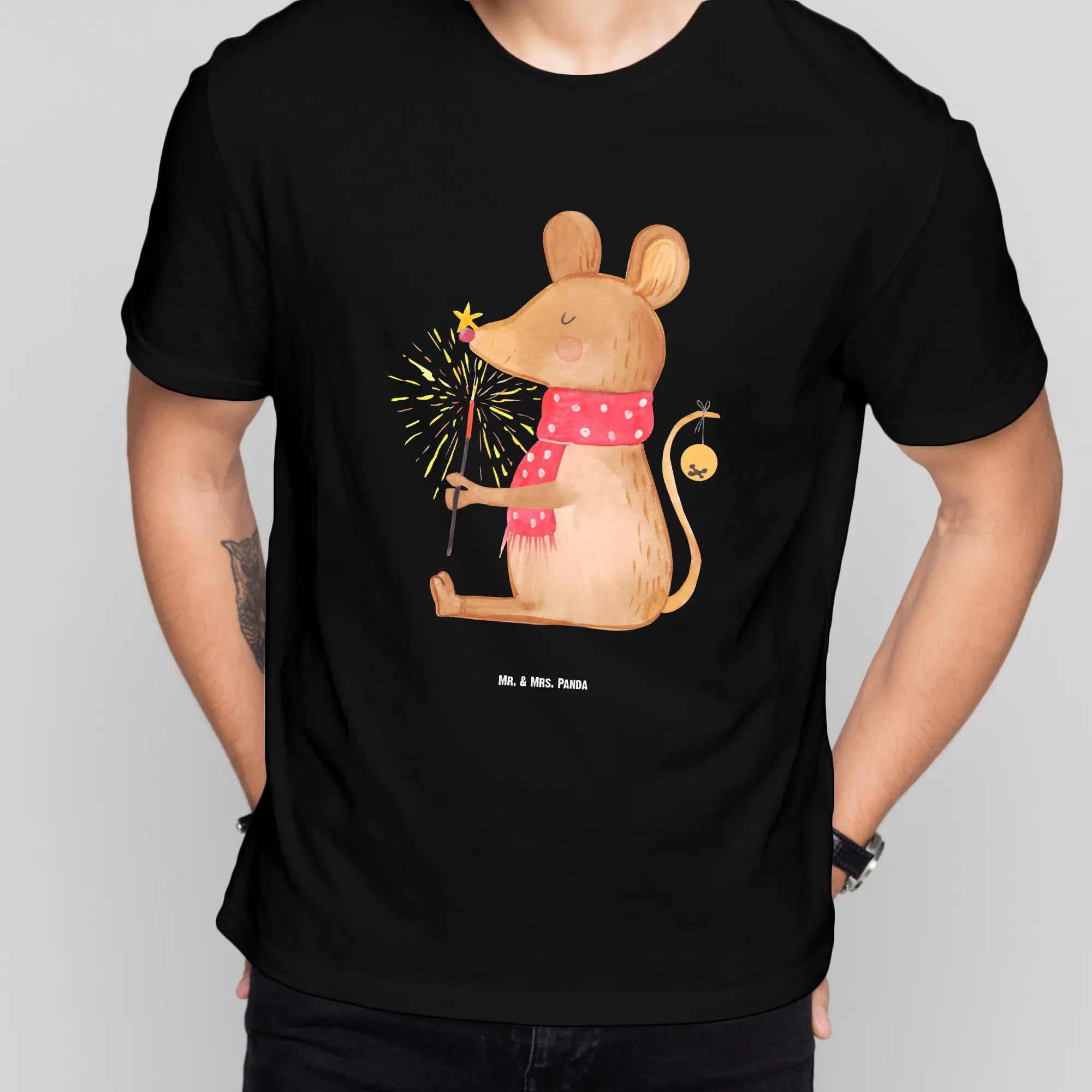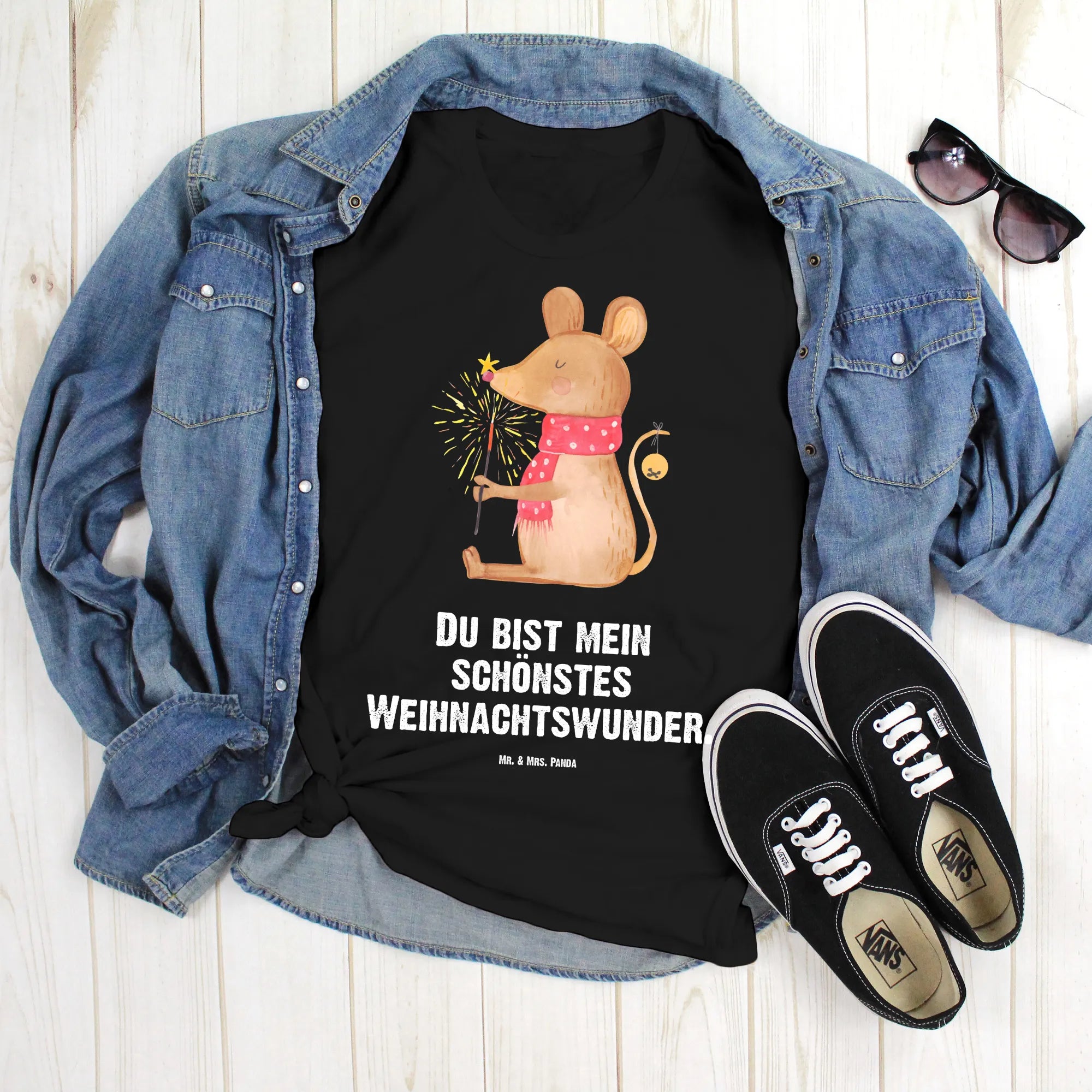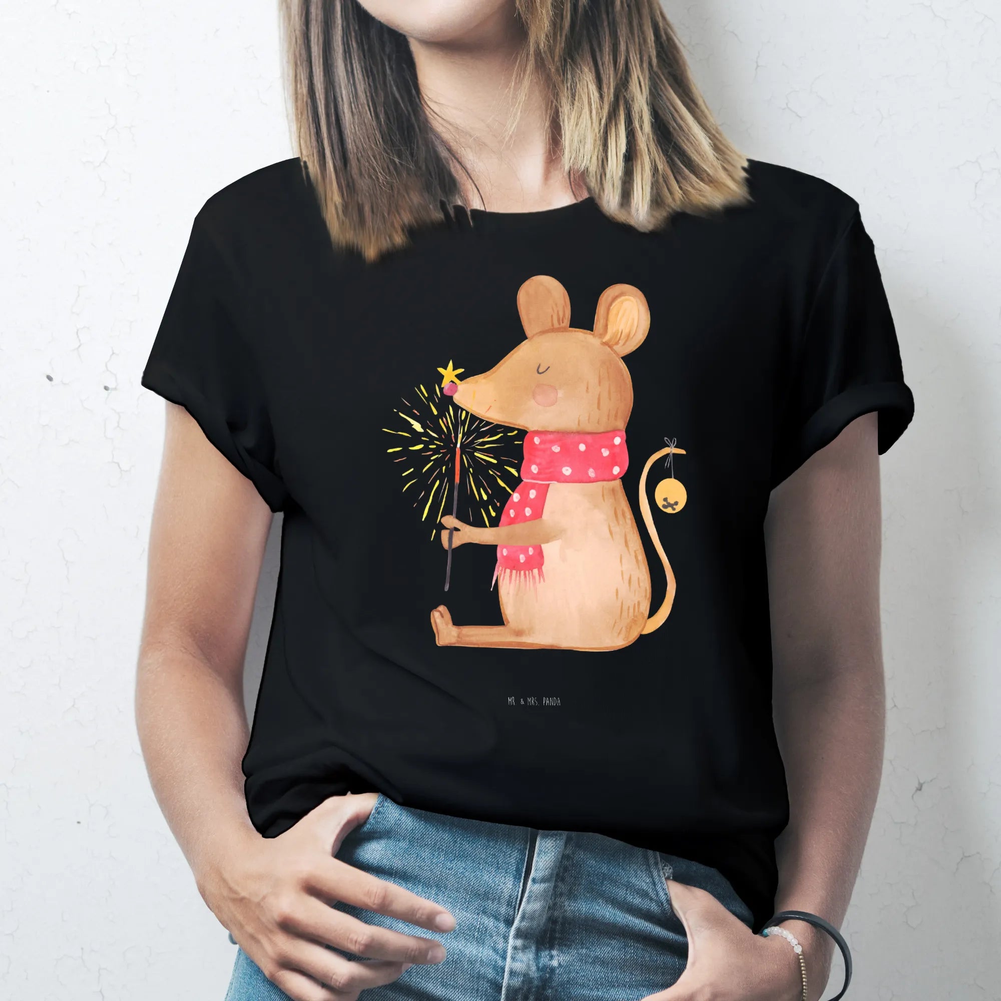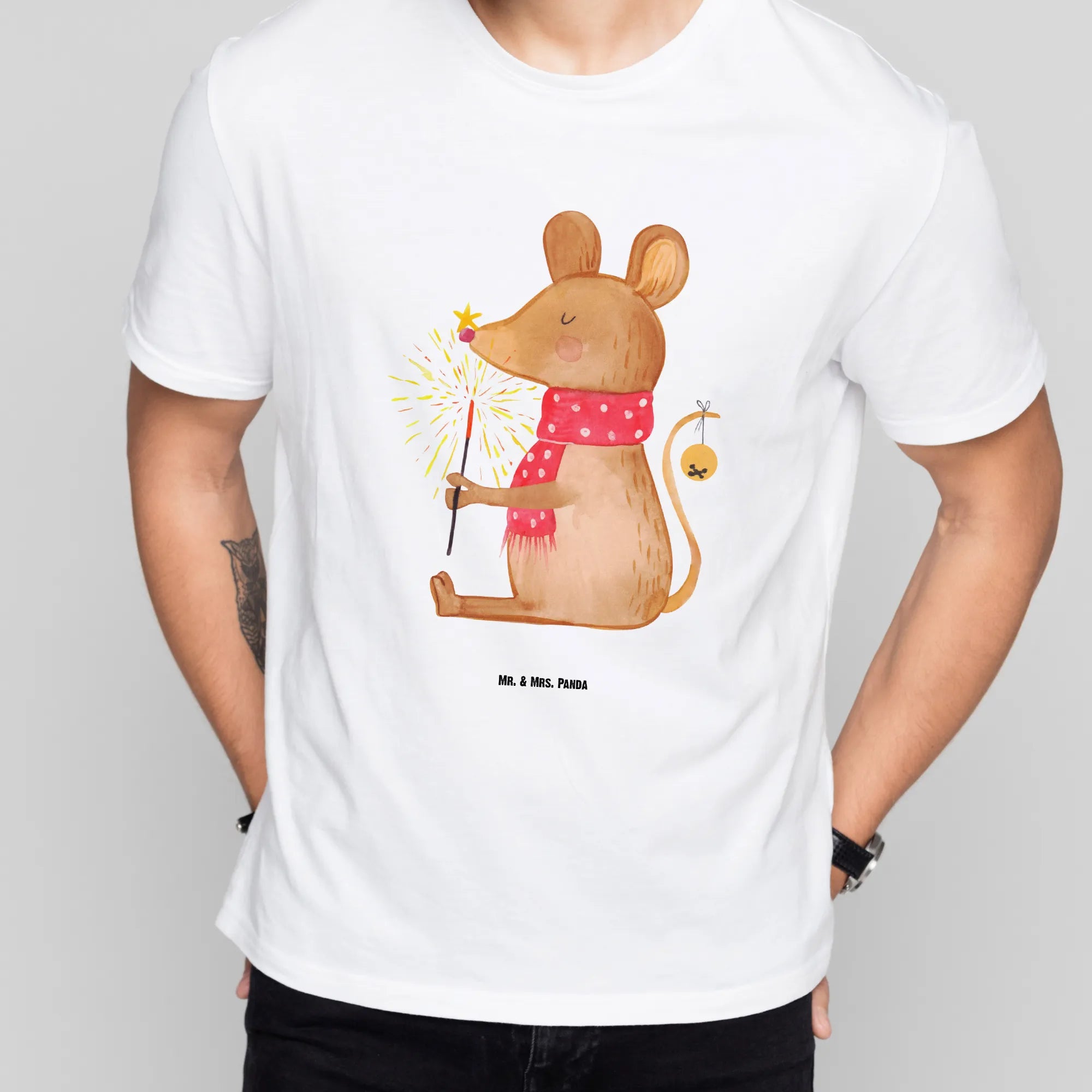 Rozmiar M T-shirt mysz Boże Narodzenie - Größe M T-Shirt - z napisem - biały