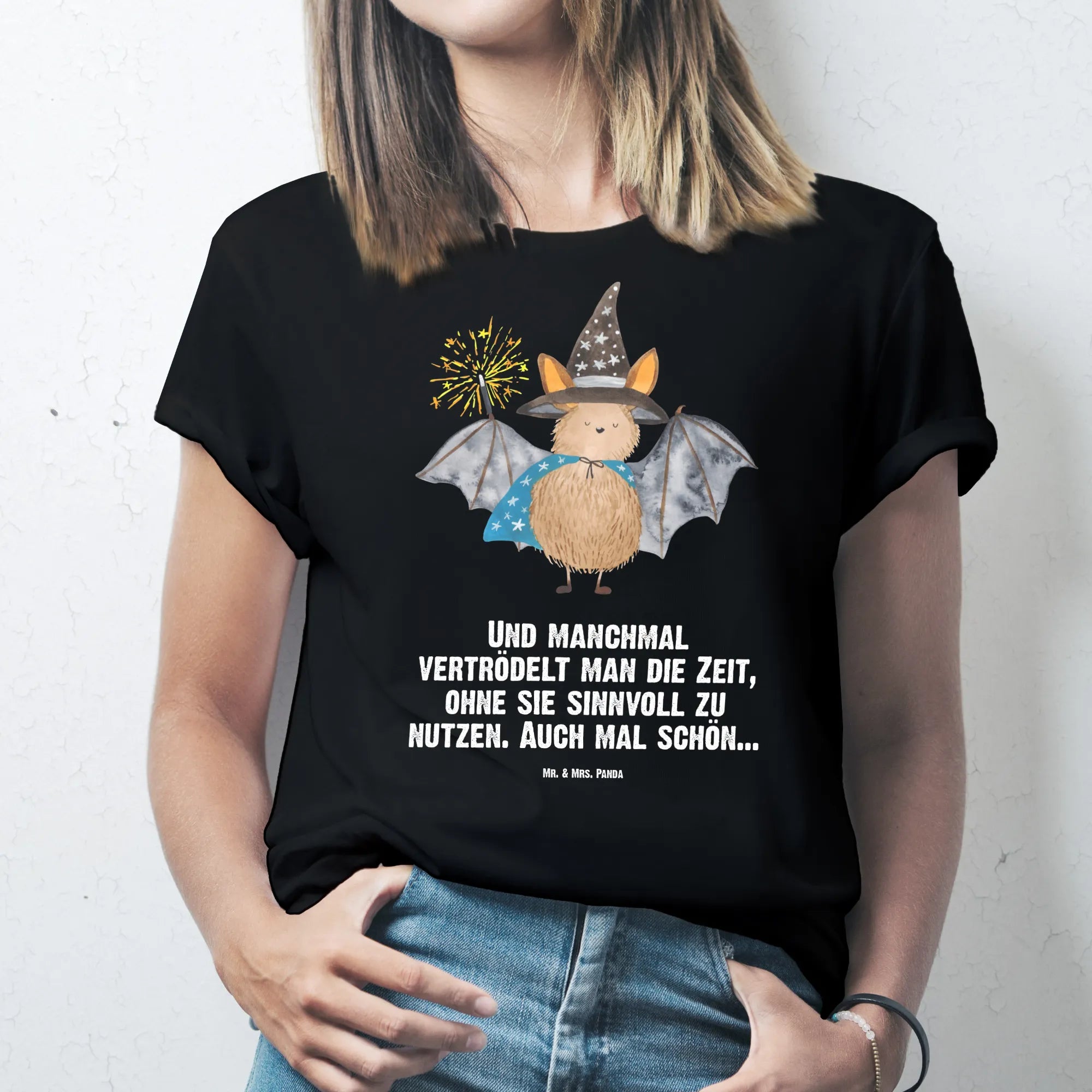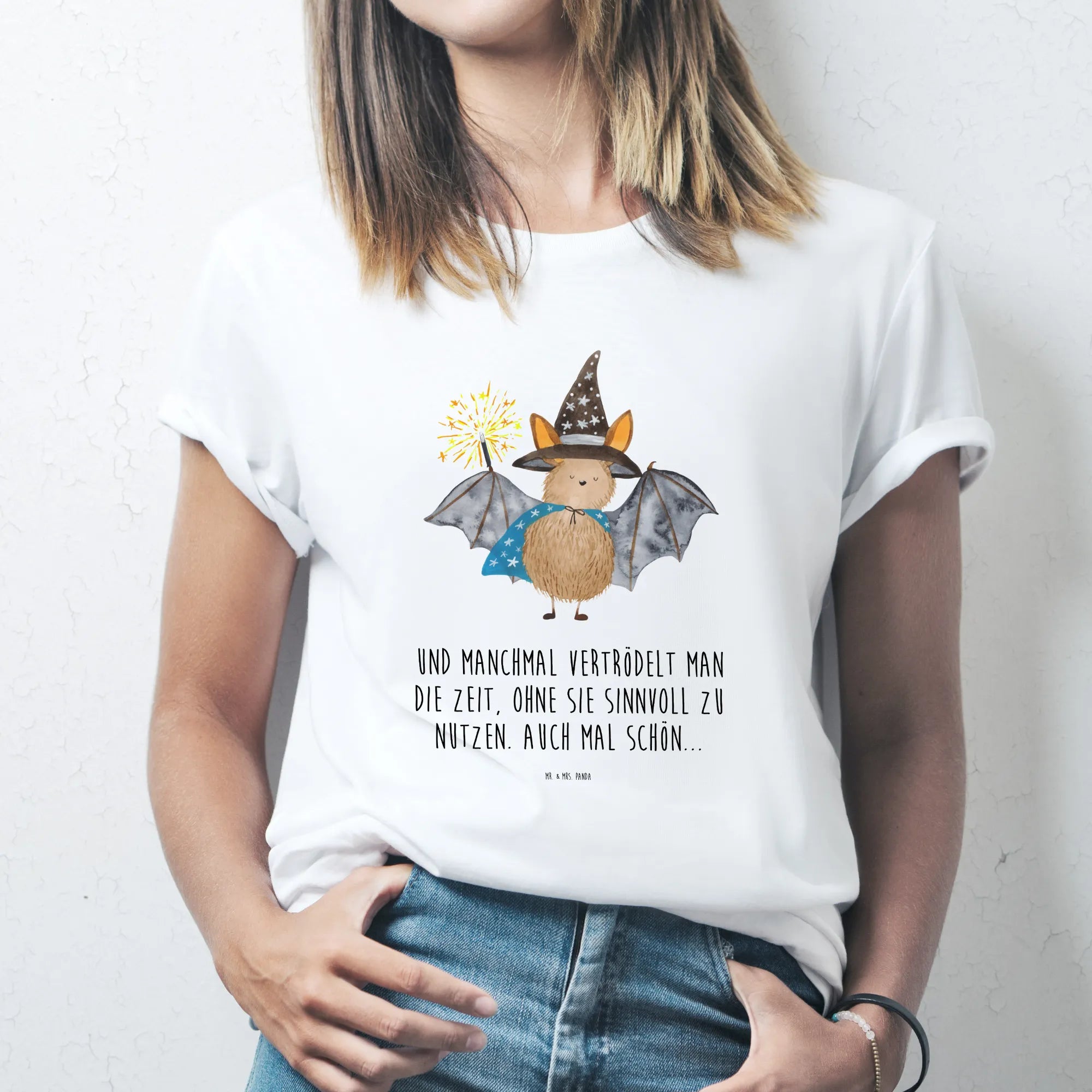Rozmiar M T-shirt Nietoperz czarodziej - Größe XXL T-Shirt - z napisem - biały
