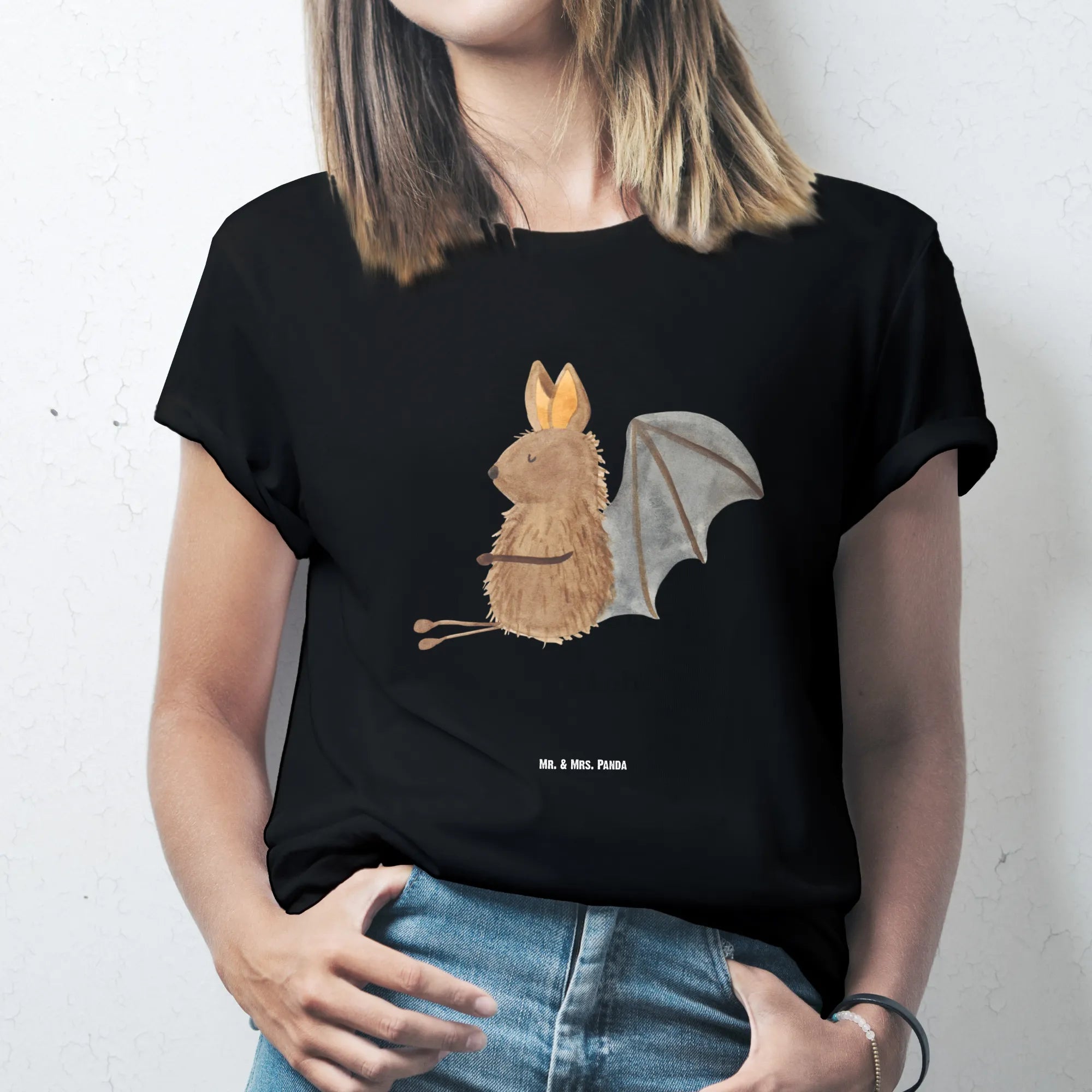 Rozmiar M T-shirt Nietoperz siedzenie - Größe XXL T-Shirt - z napisem - biały