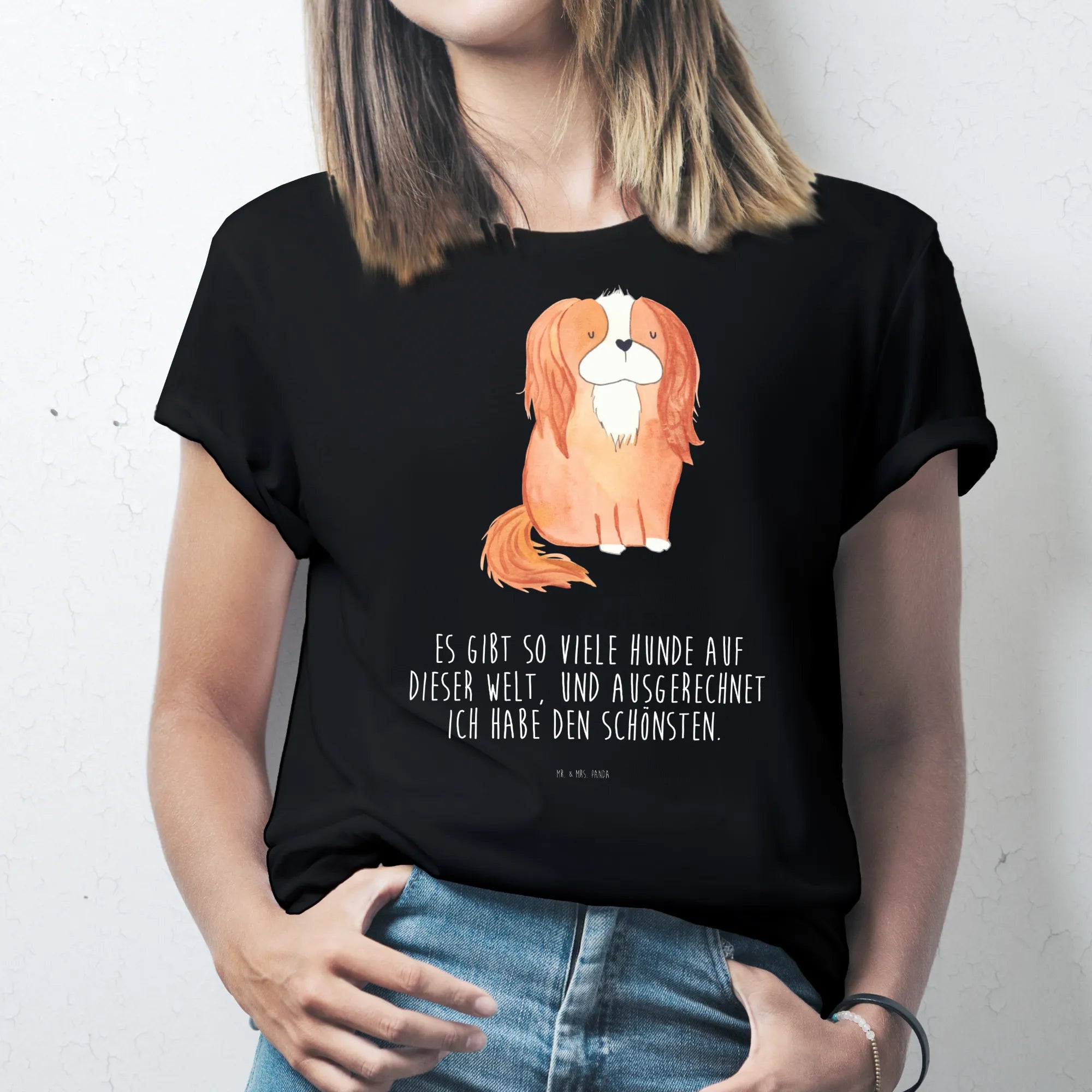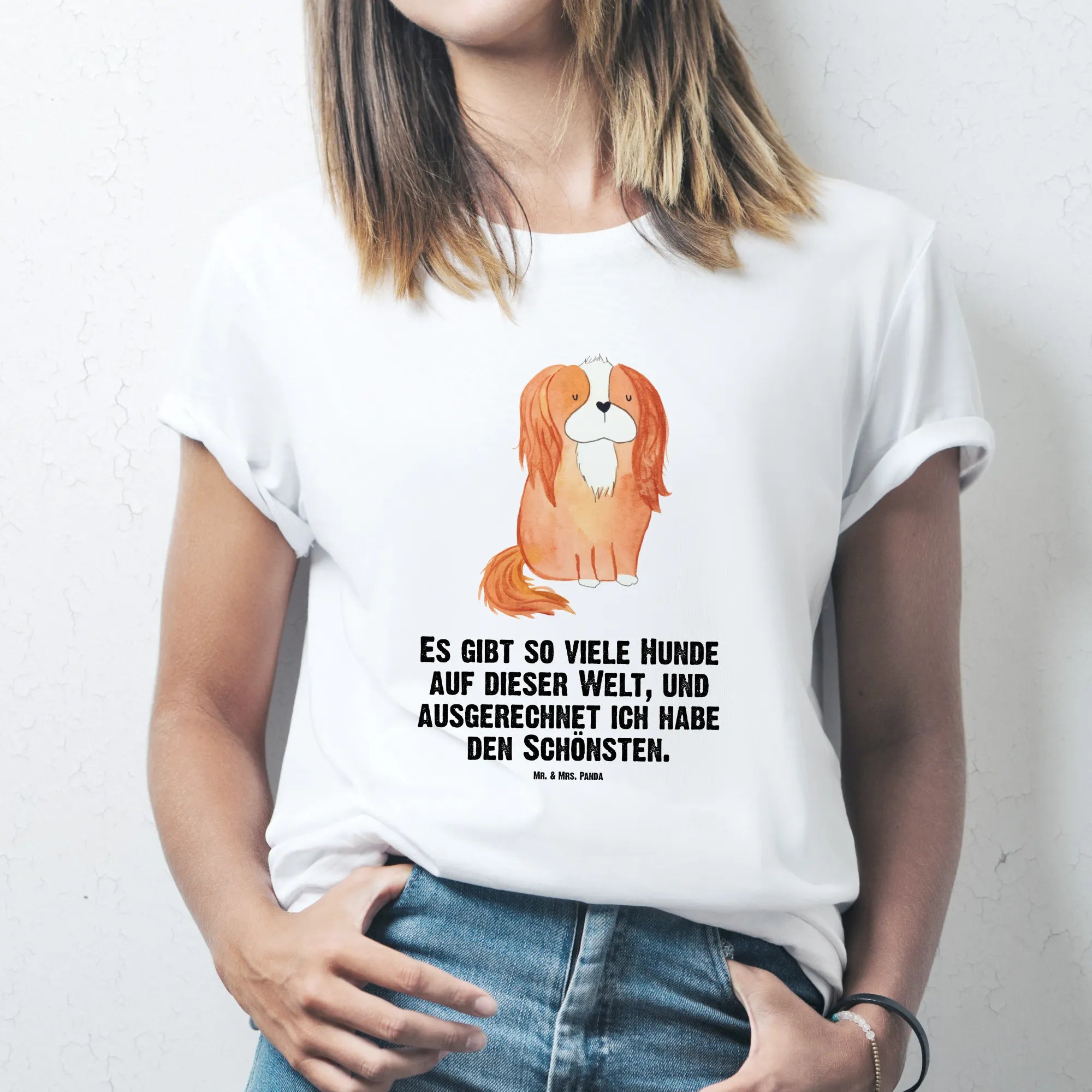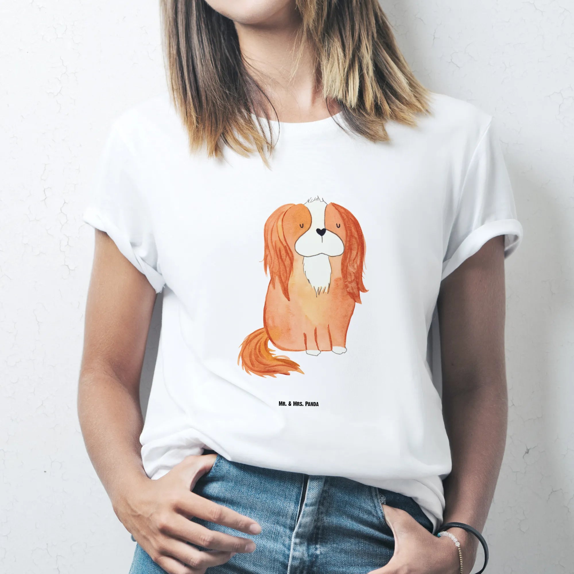 Rozmiar M T-shirt pies Cavalier King Charles Spaniel - Größe L T-Shirt - z napisem - biały