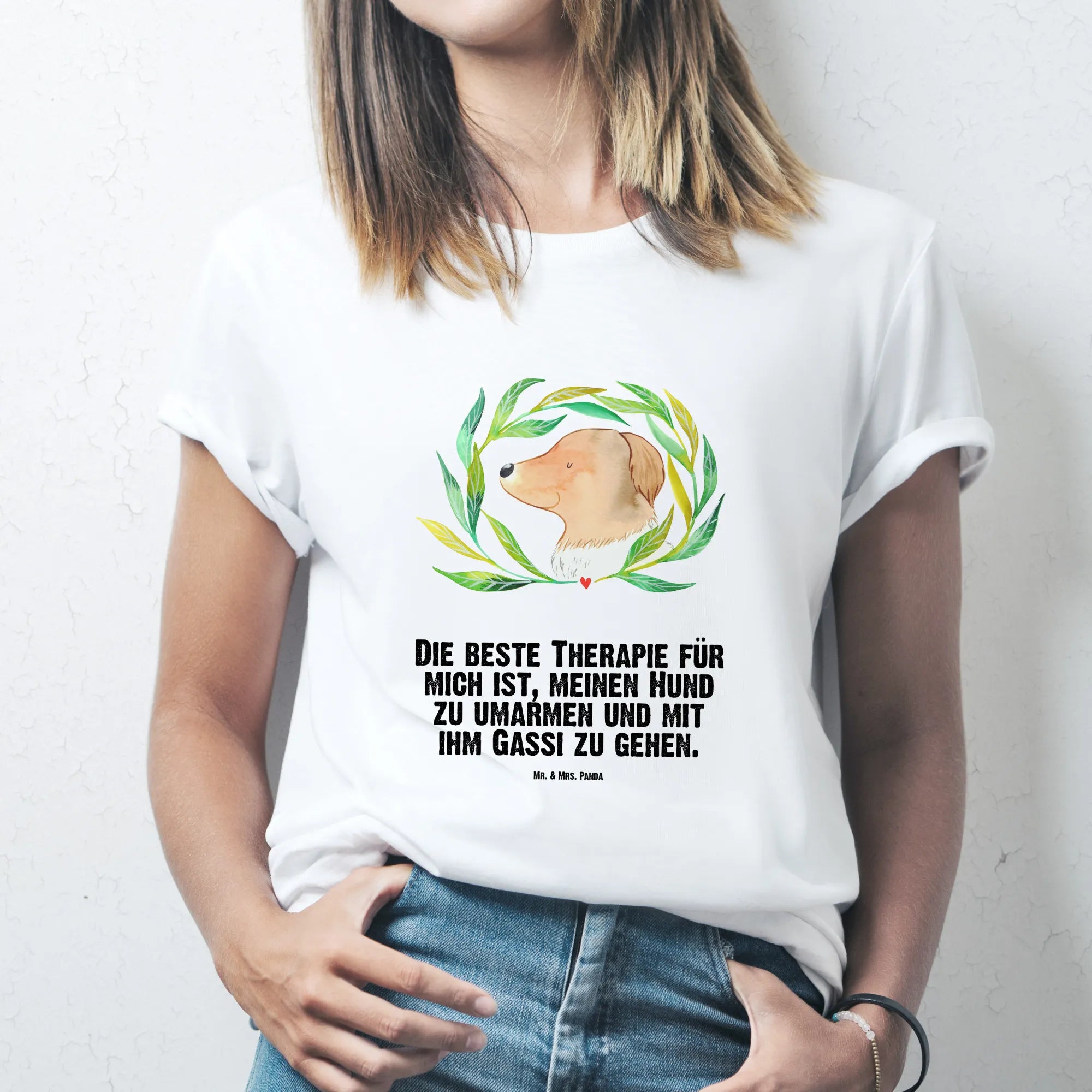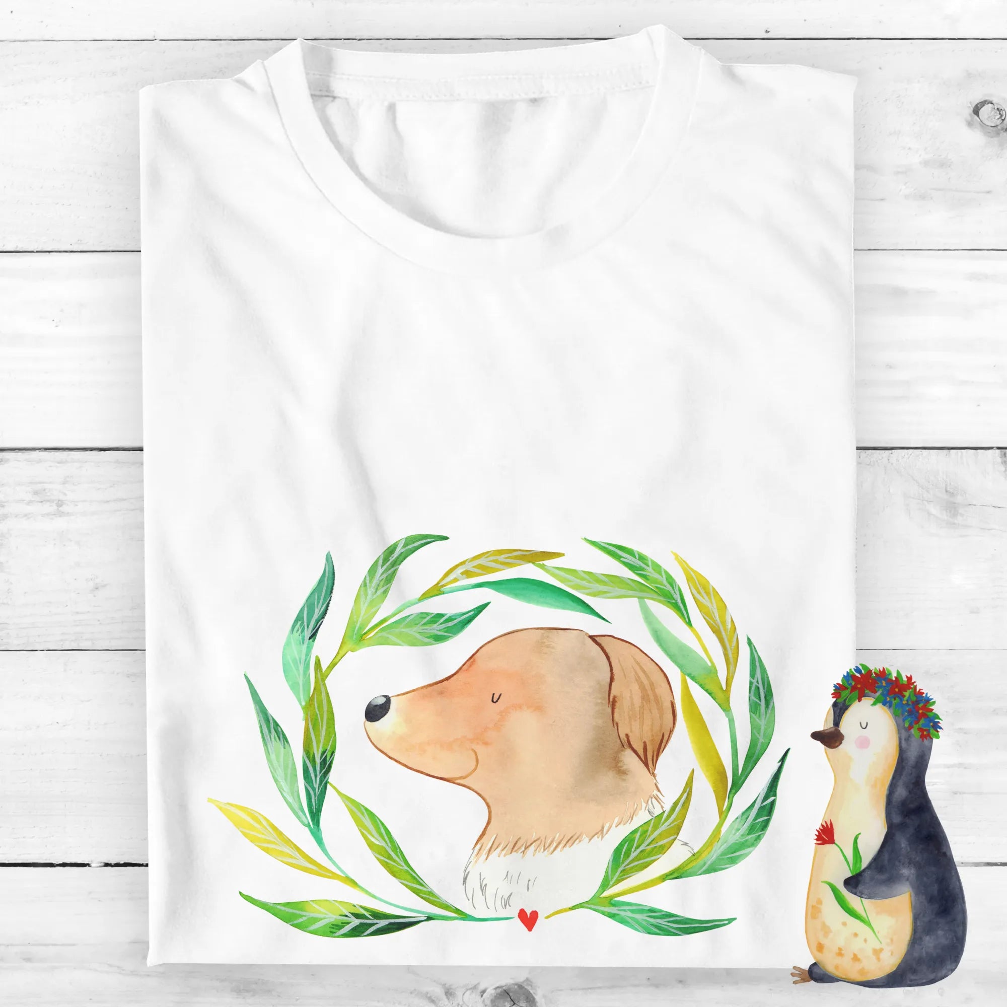 Rozmiar M T-shirt pies kwiaty - Größe L T-Shirt - z napisem - biały
