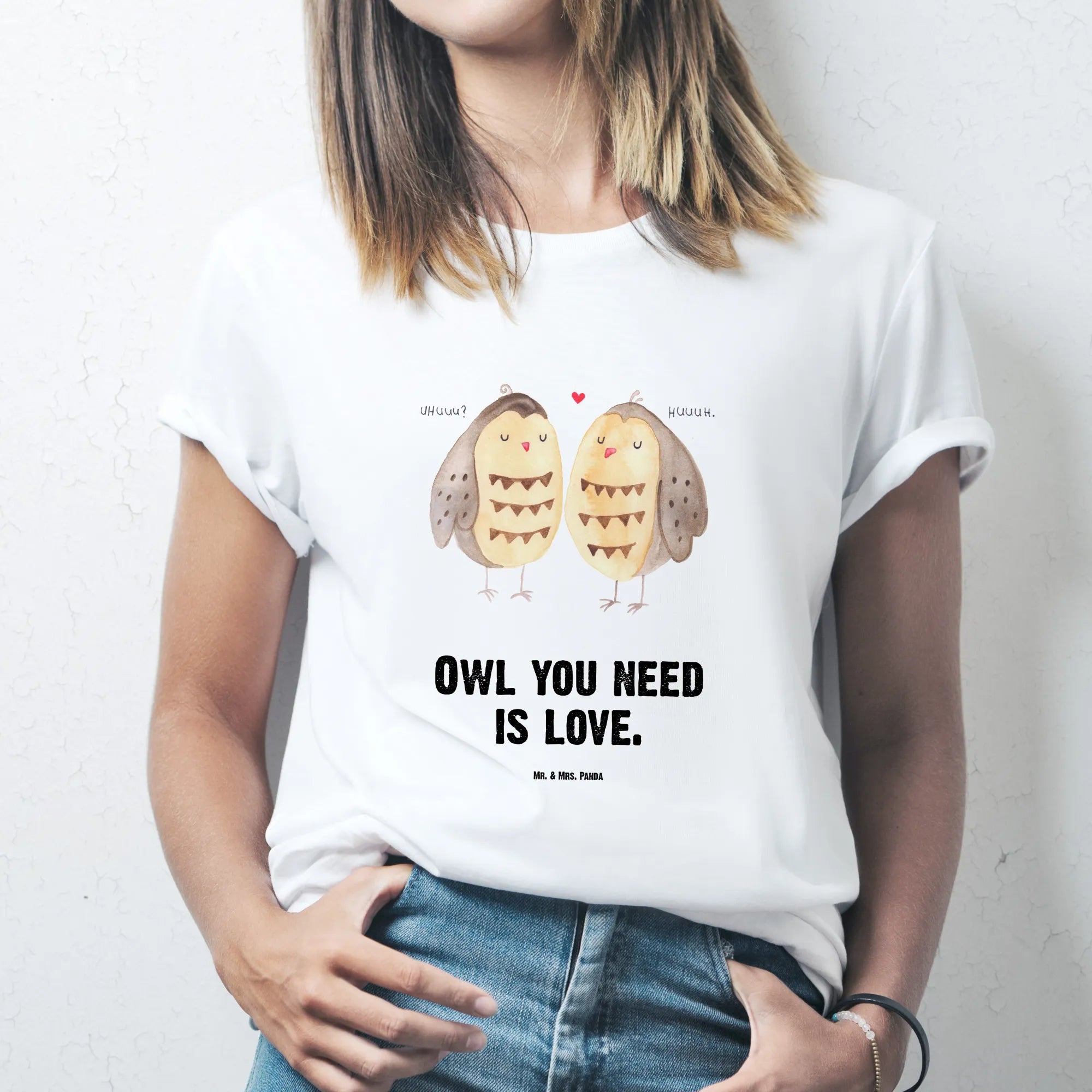 Rozmiar M T-shirt sowy miłość - Größe L T-Shirt - z napisem - biały