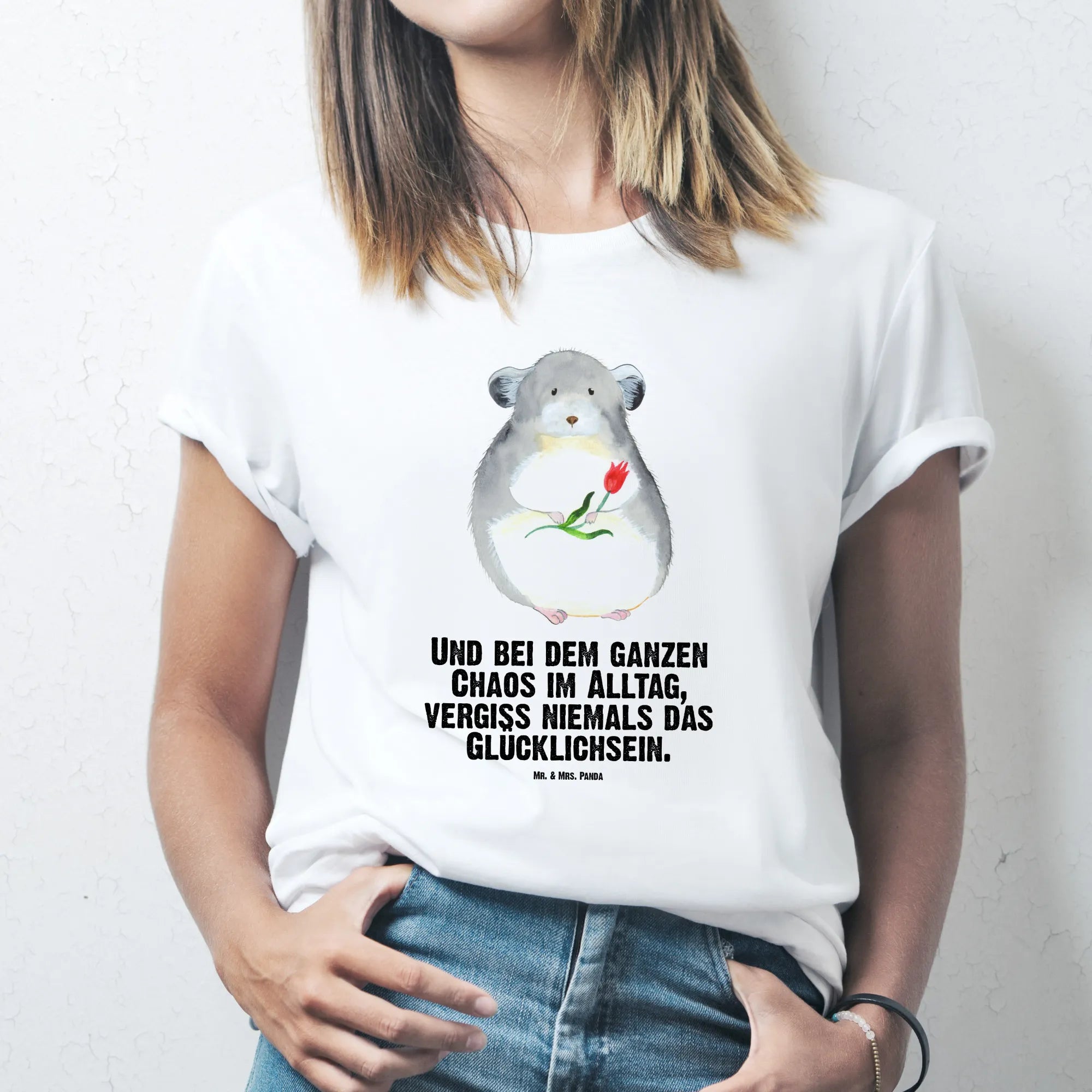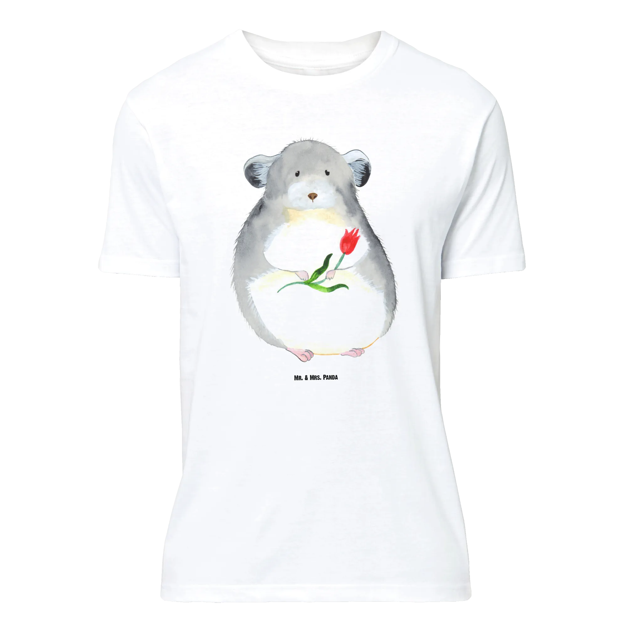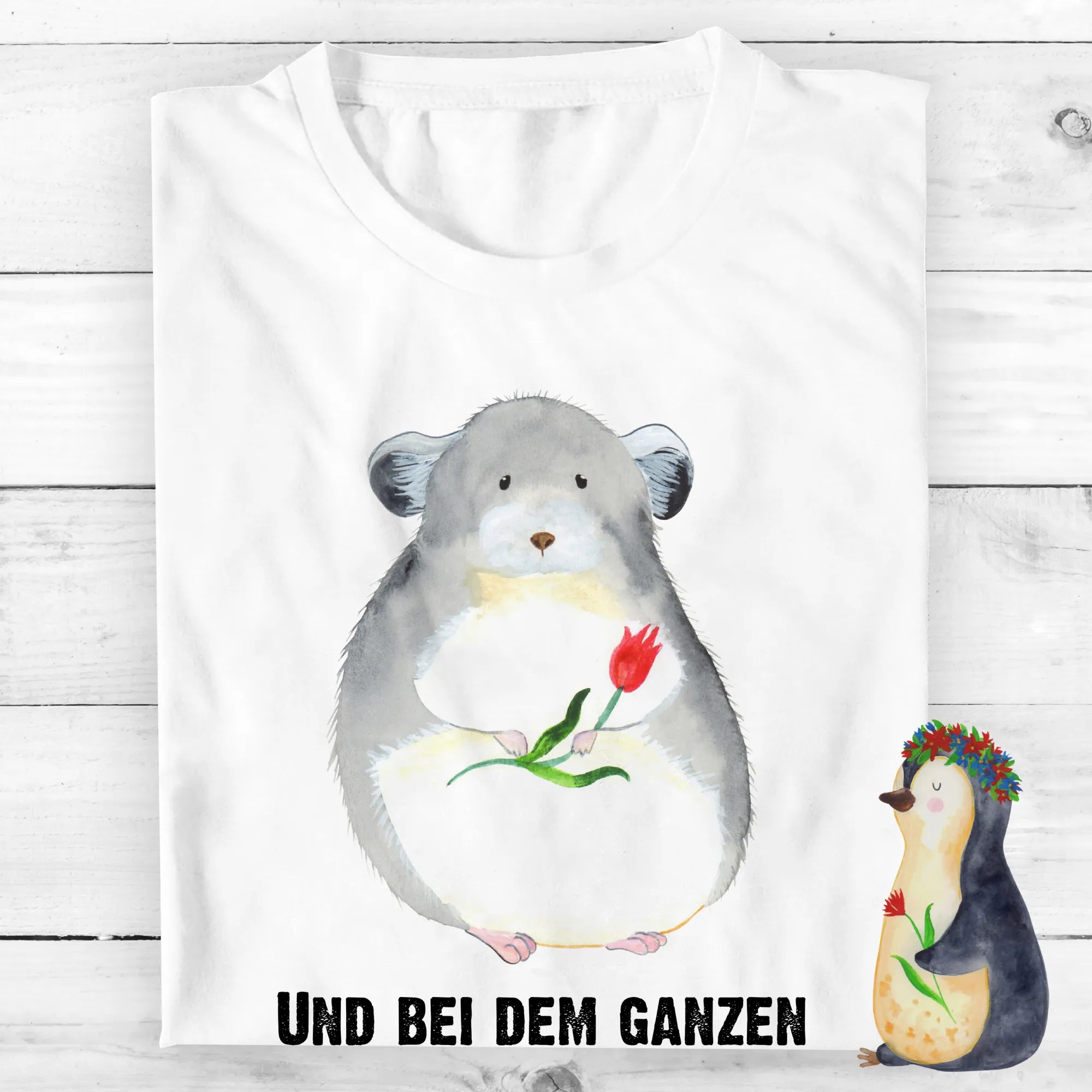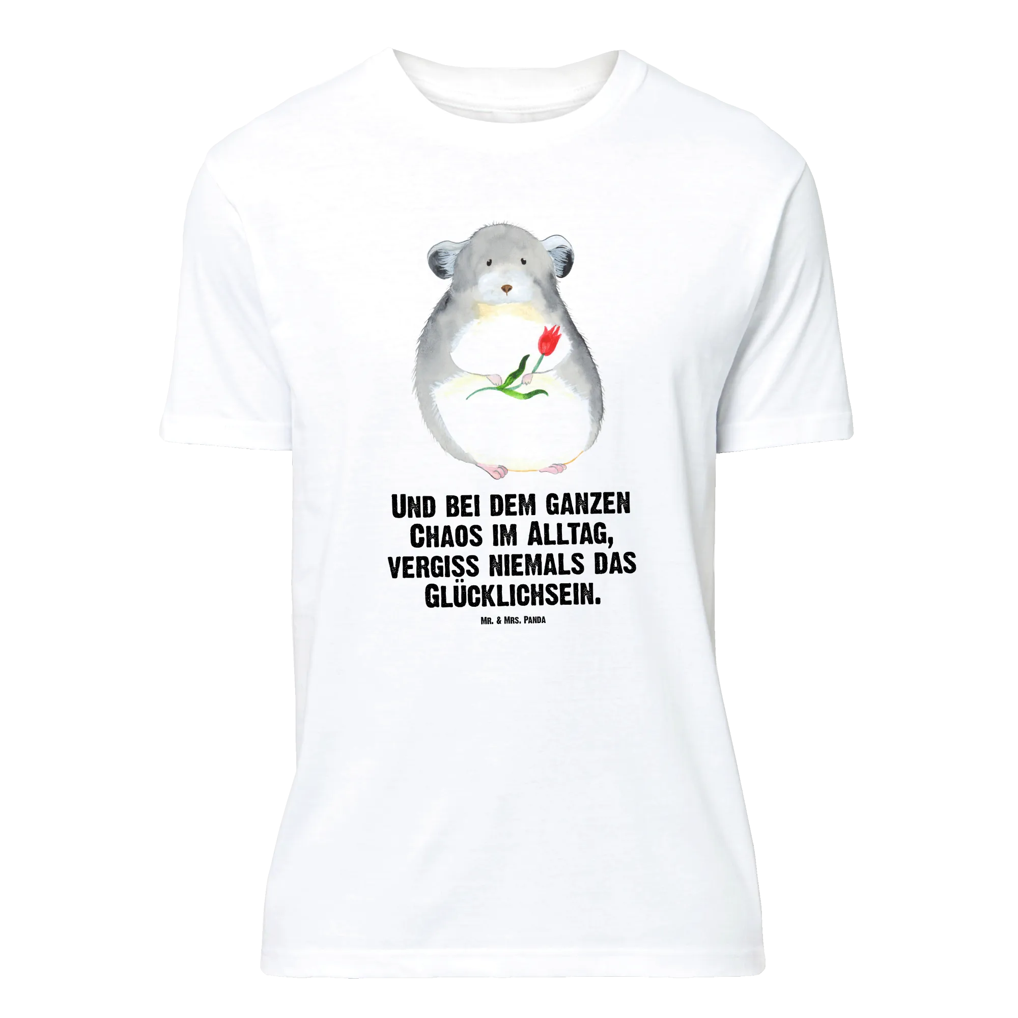 Rozmiar M T-shirt szynszyla kwiat - Größe XXL T-Shirt - z napisem - biały