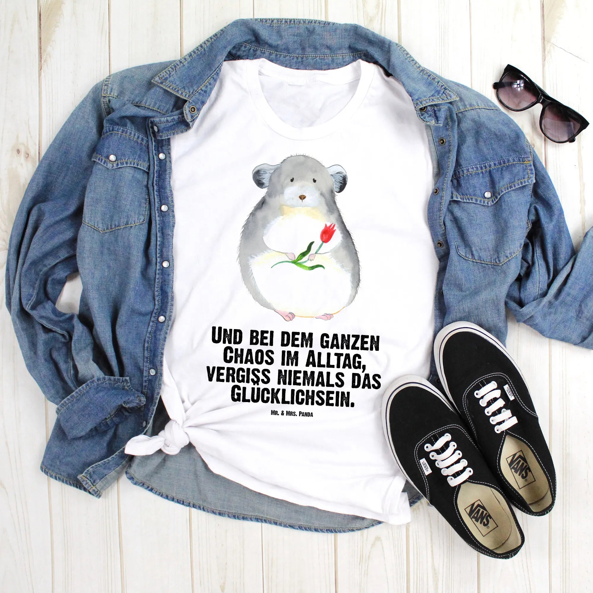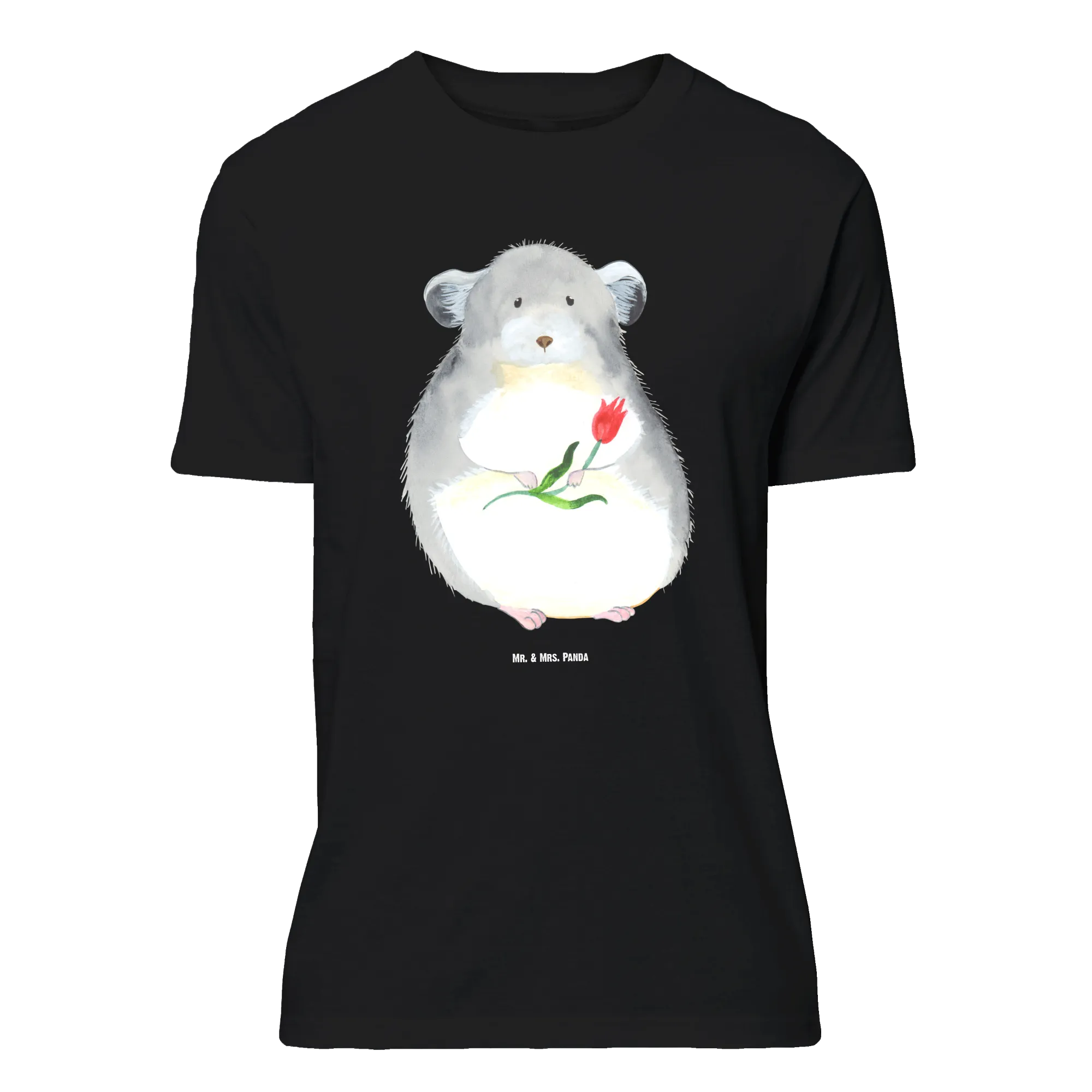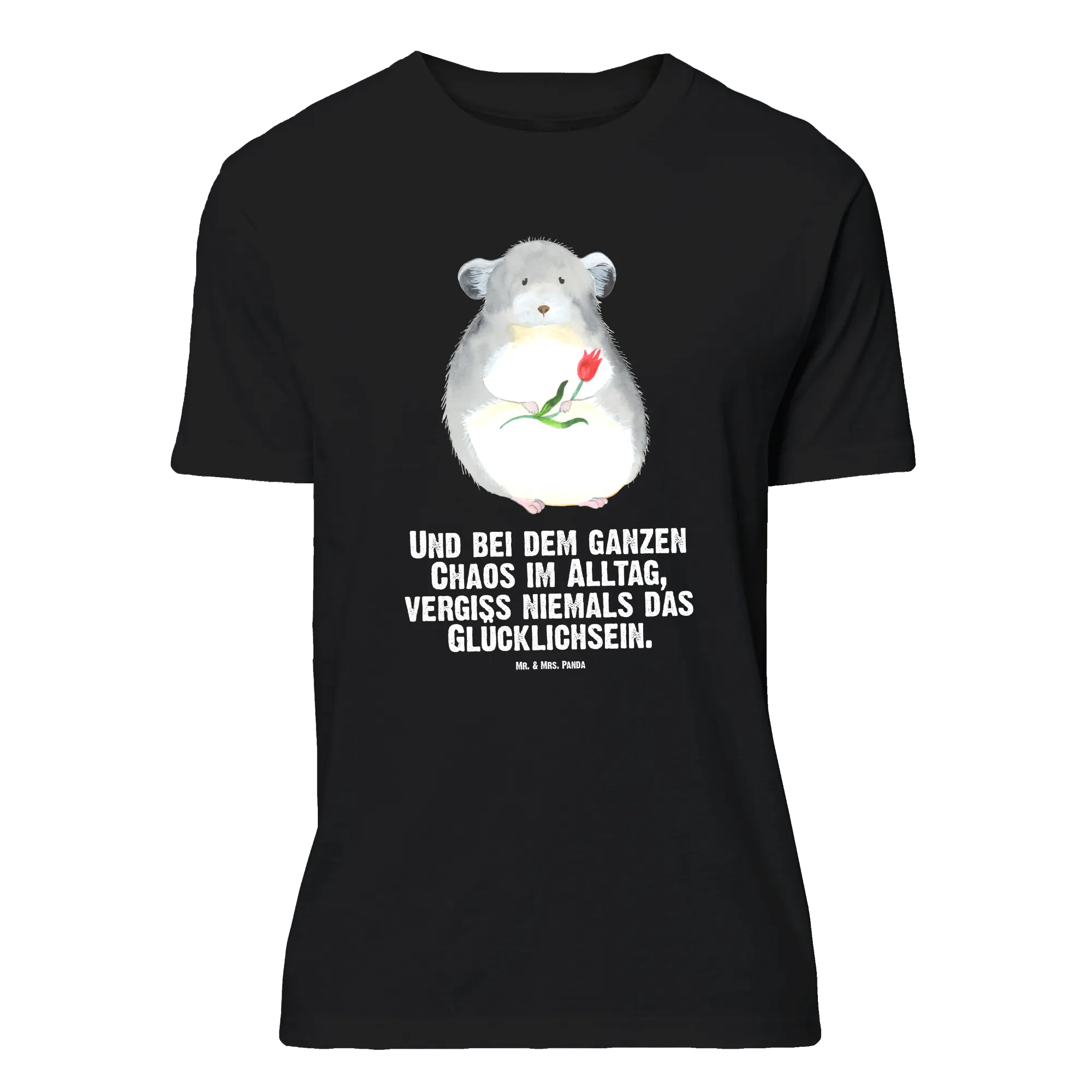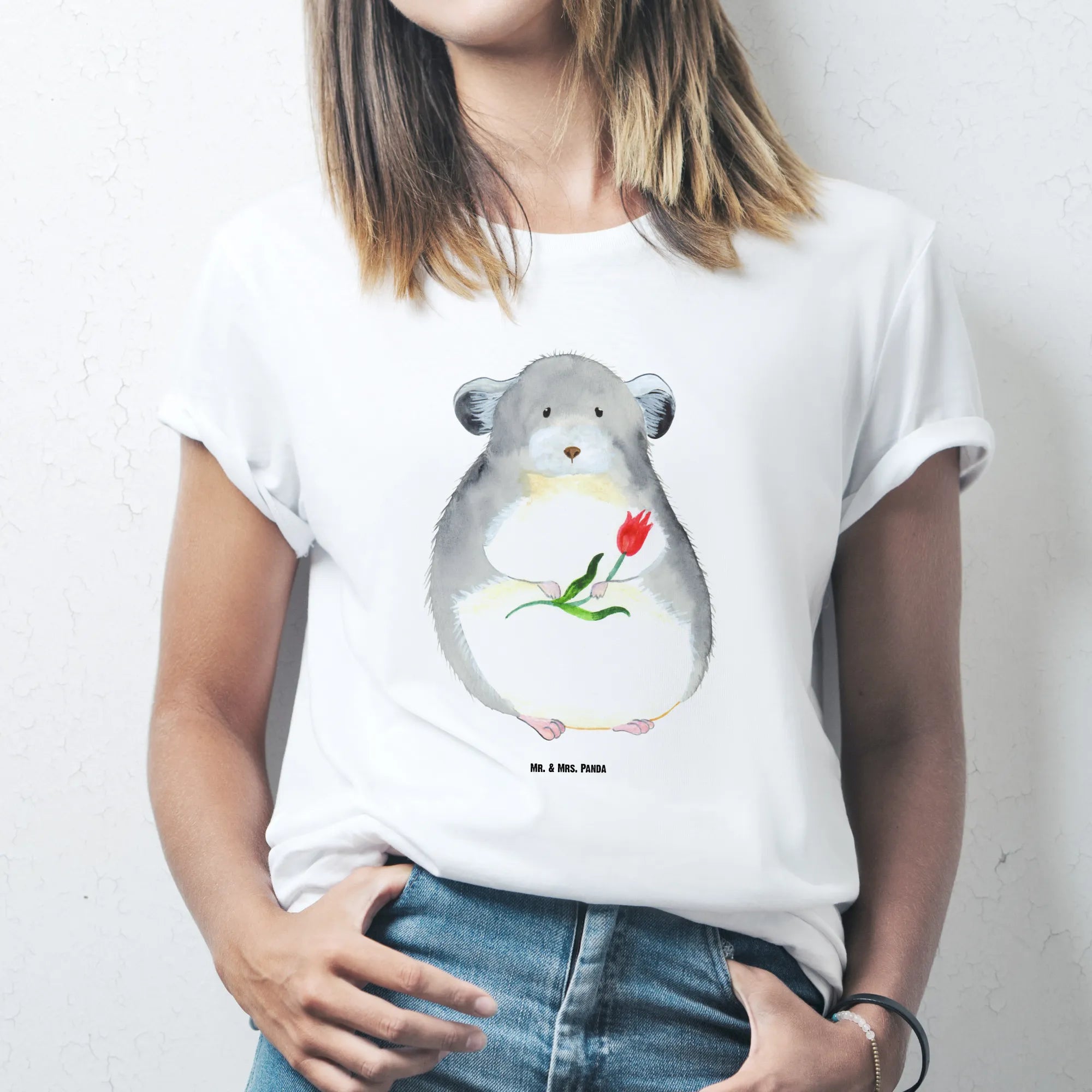 Rozmiar M T-shirt szynszyla kwiat - Größe XXL T-Shirt - z napisem - biały