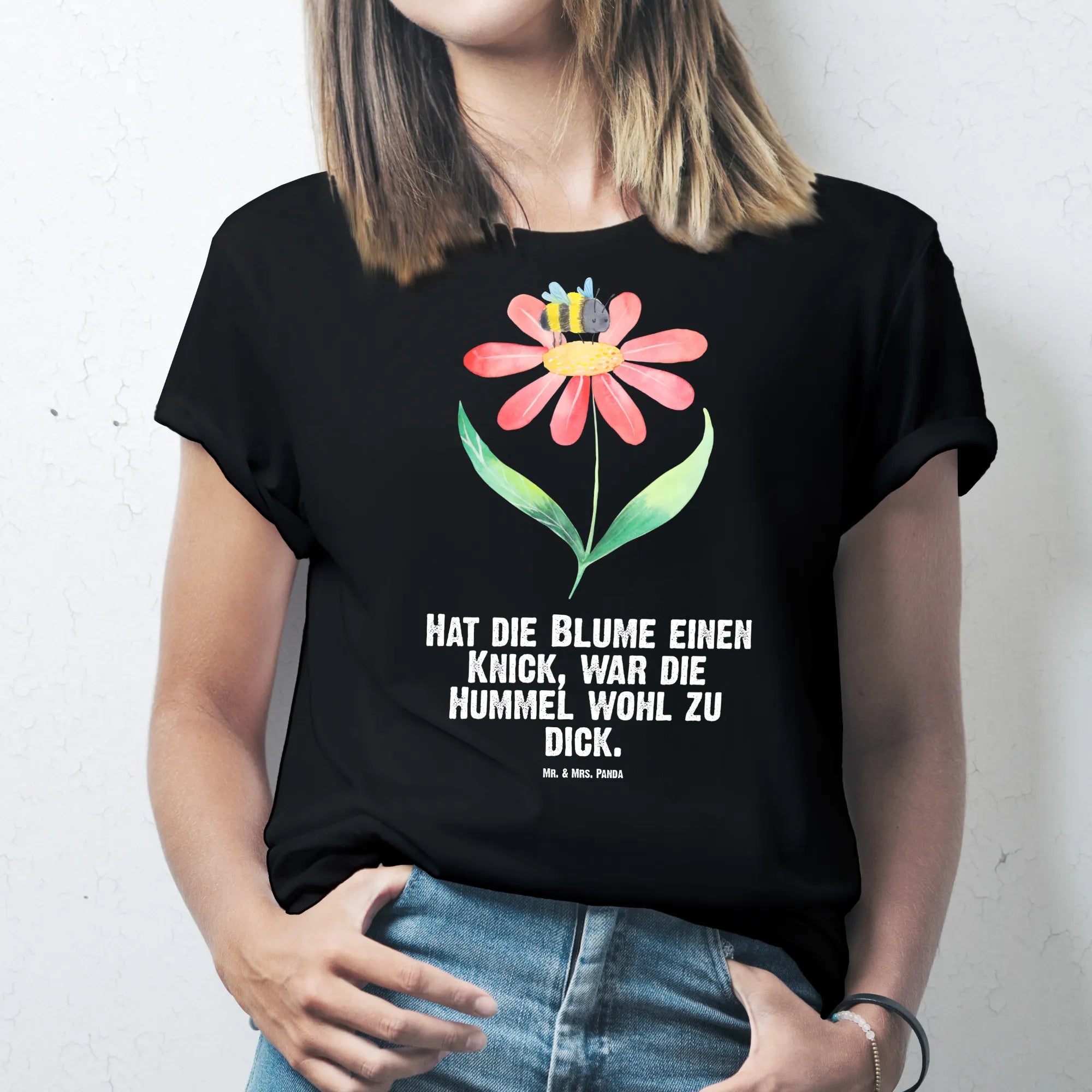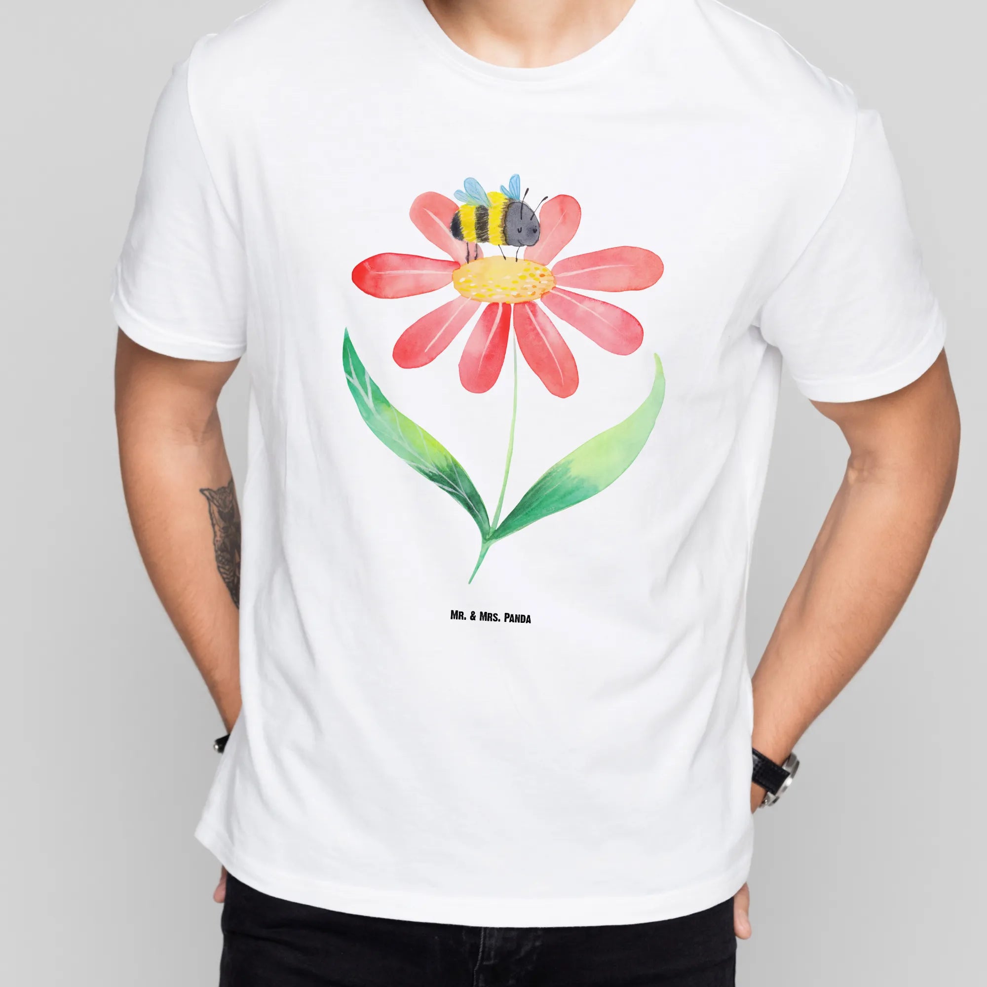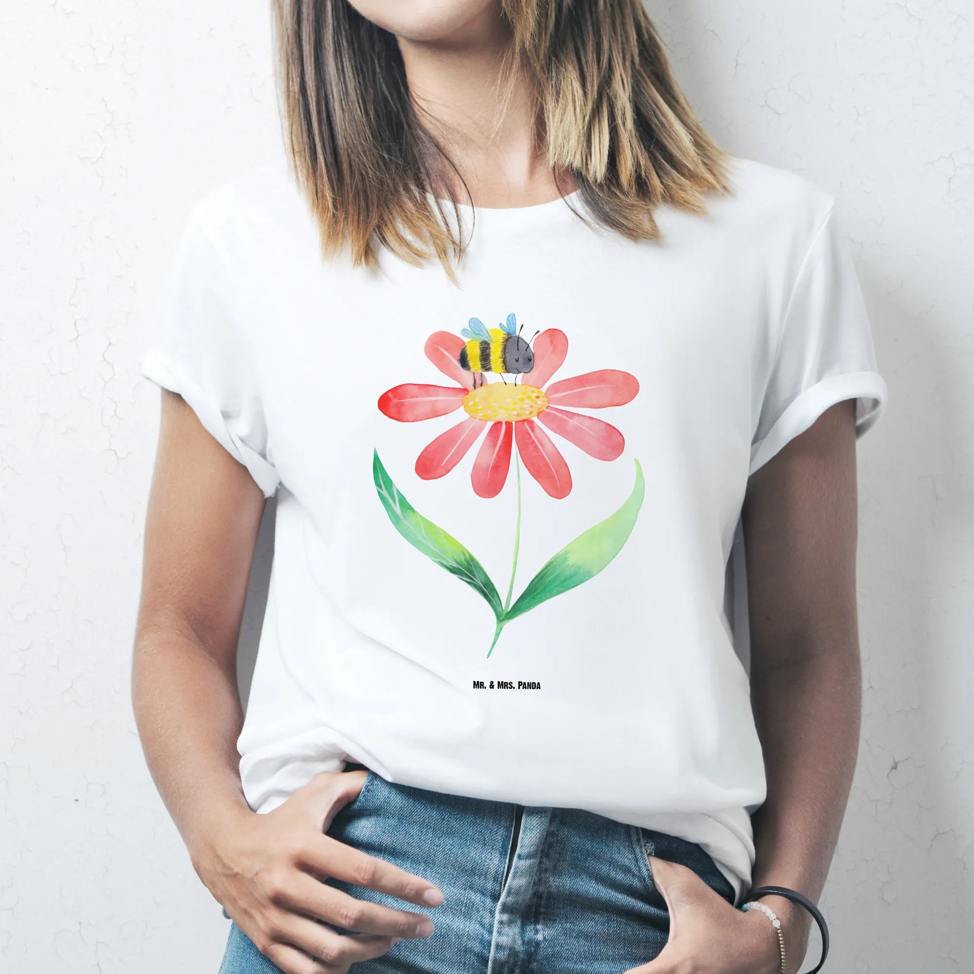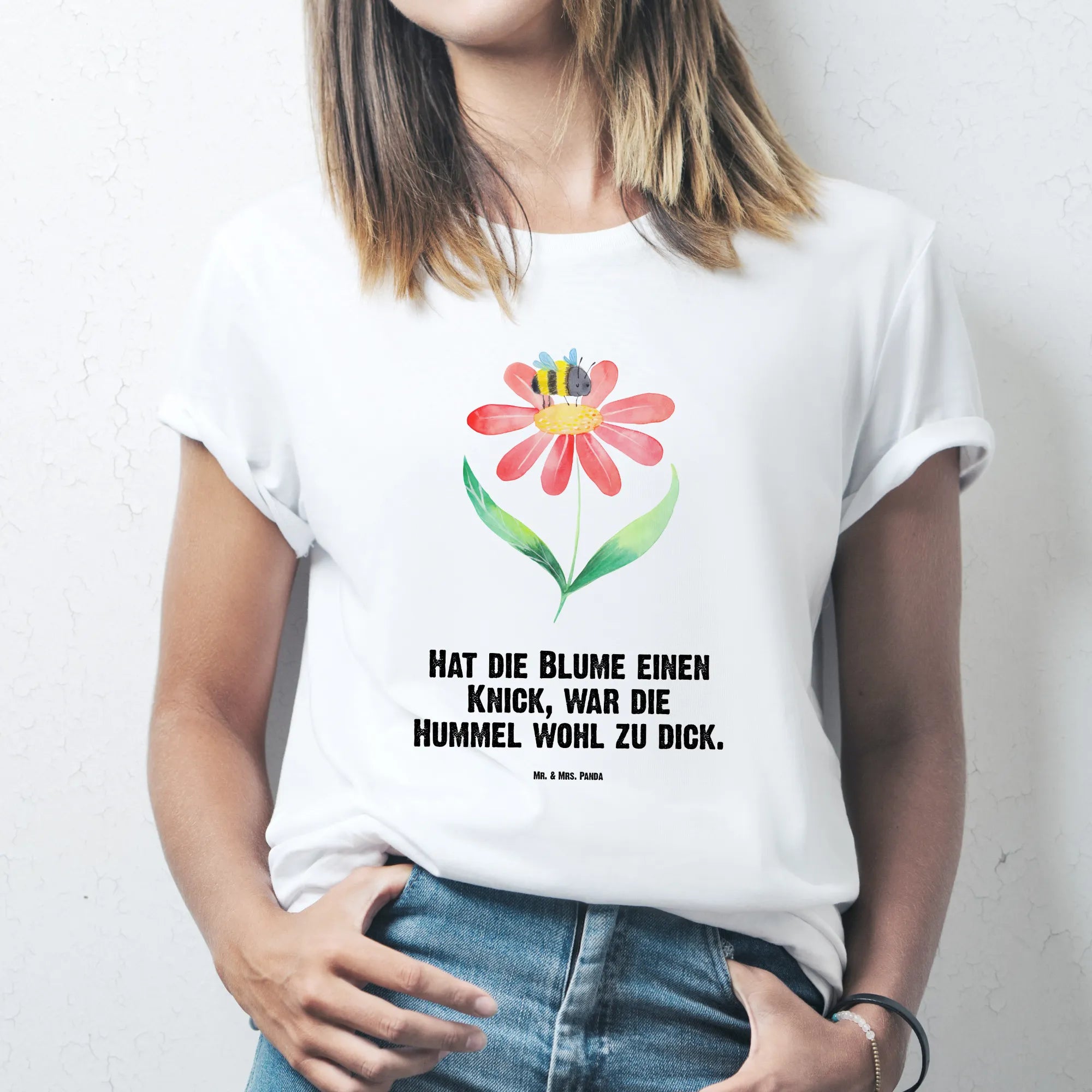 Rozmiar M T-shirt trzmiel kwiat - Größe XXL T-Shirt - z napisem - biały