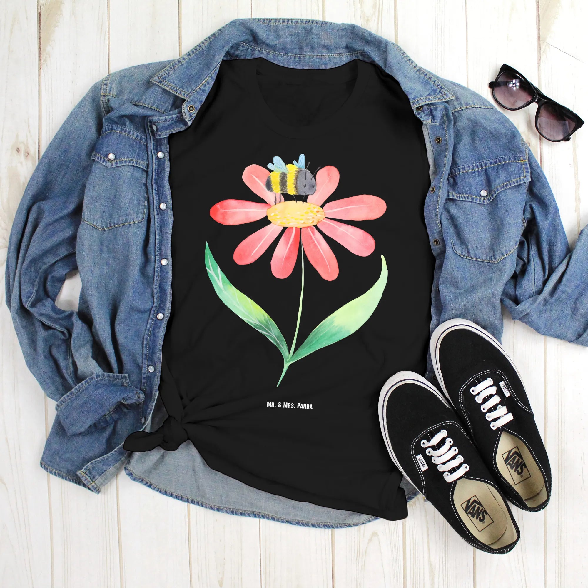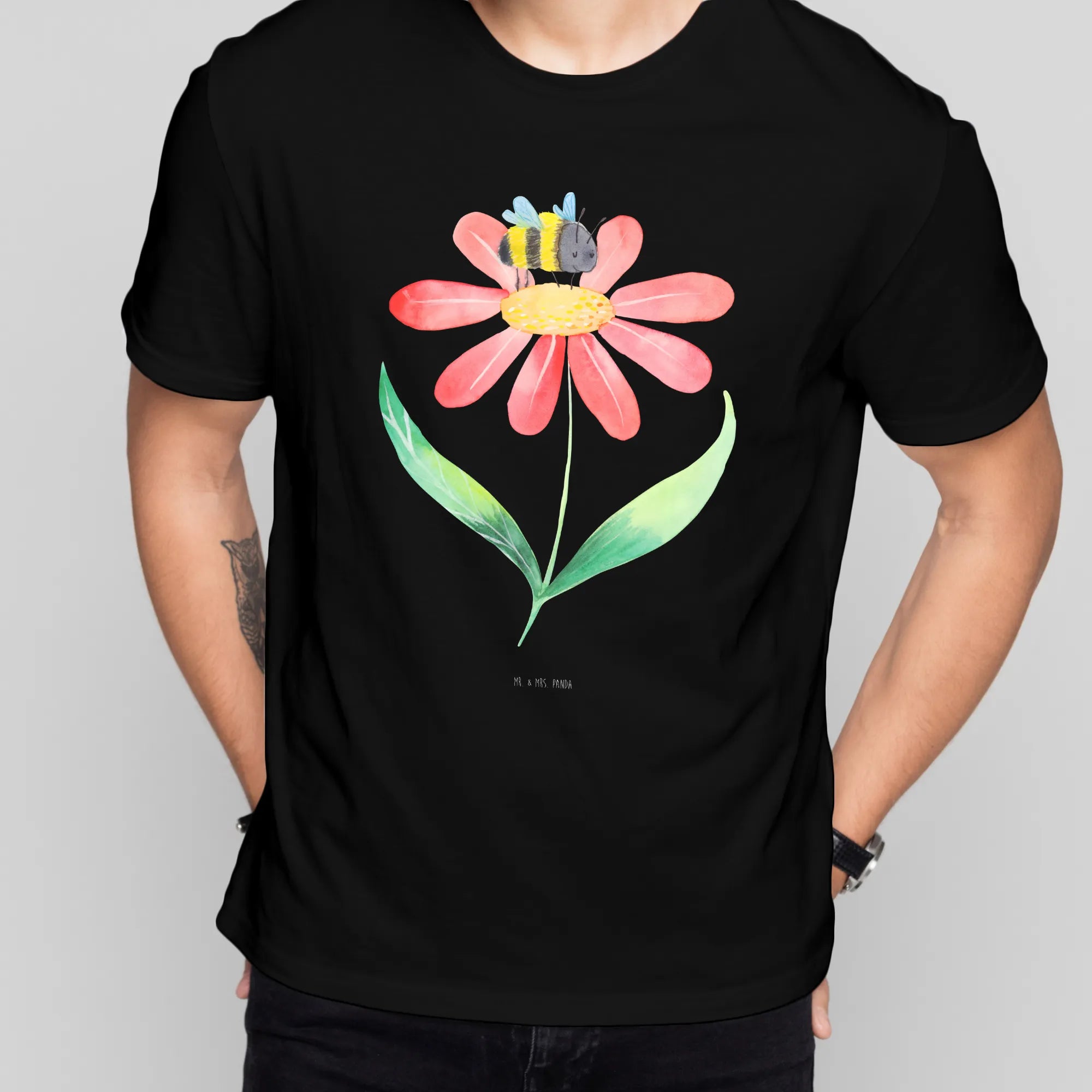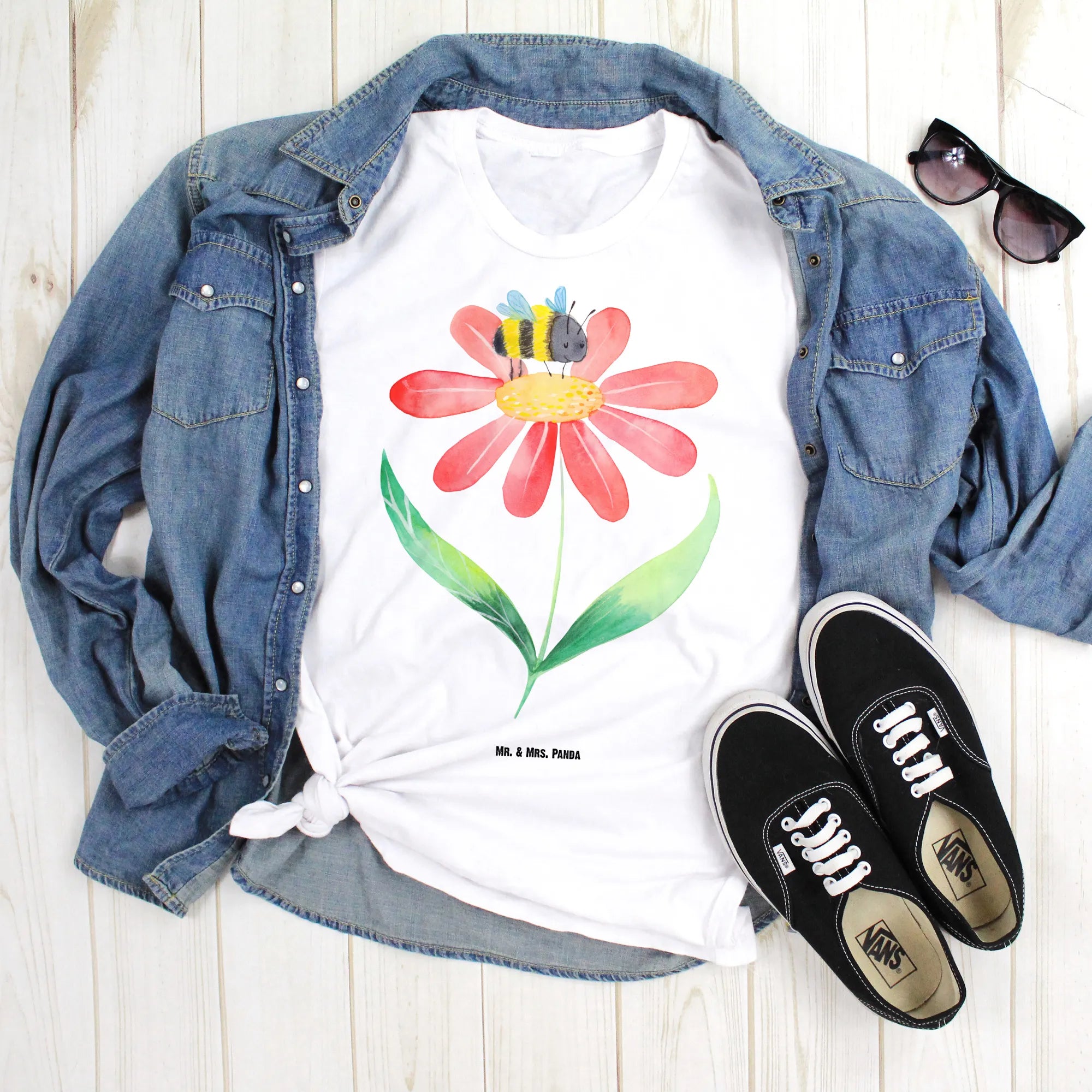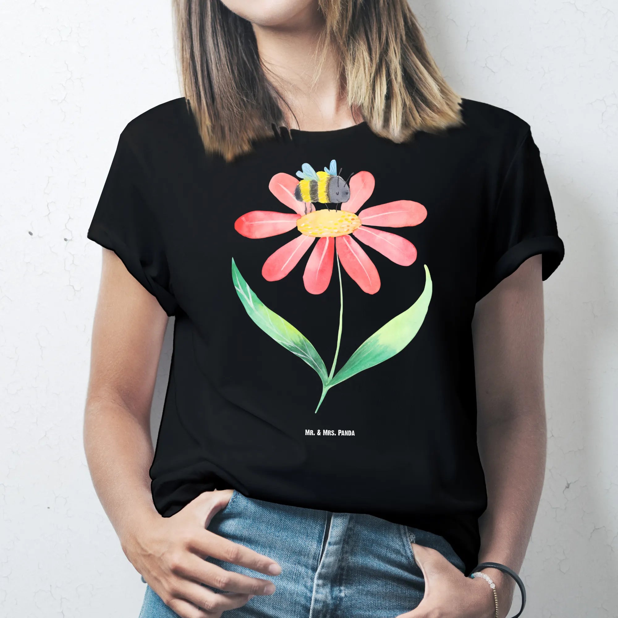 Rozmiar M T-shirt trzmiel kwiat - Größe XXL T-Shirt - z napisem - biały