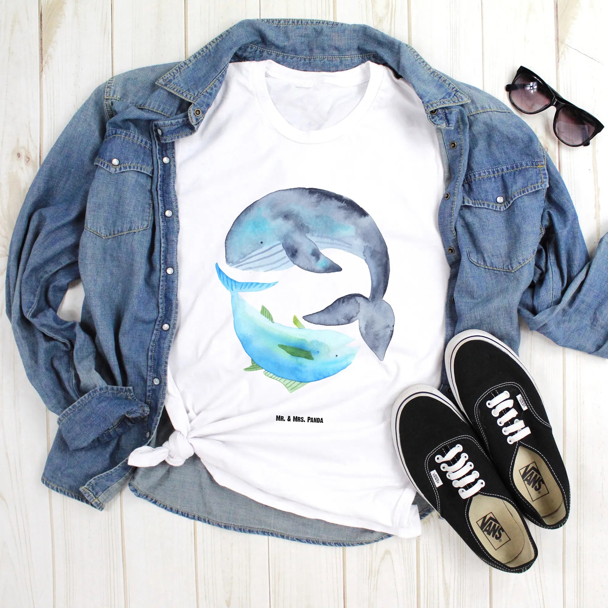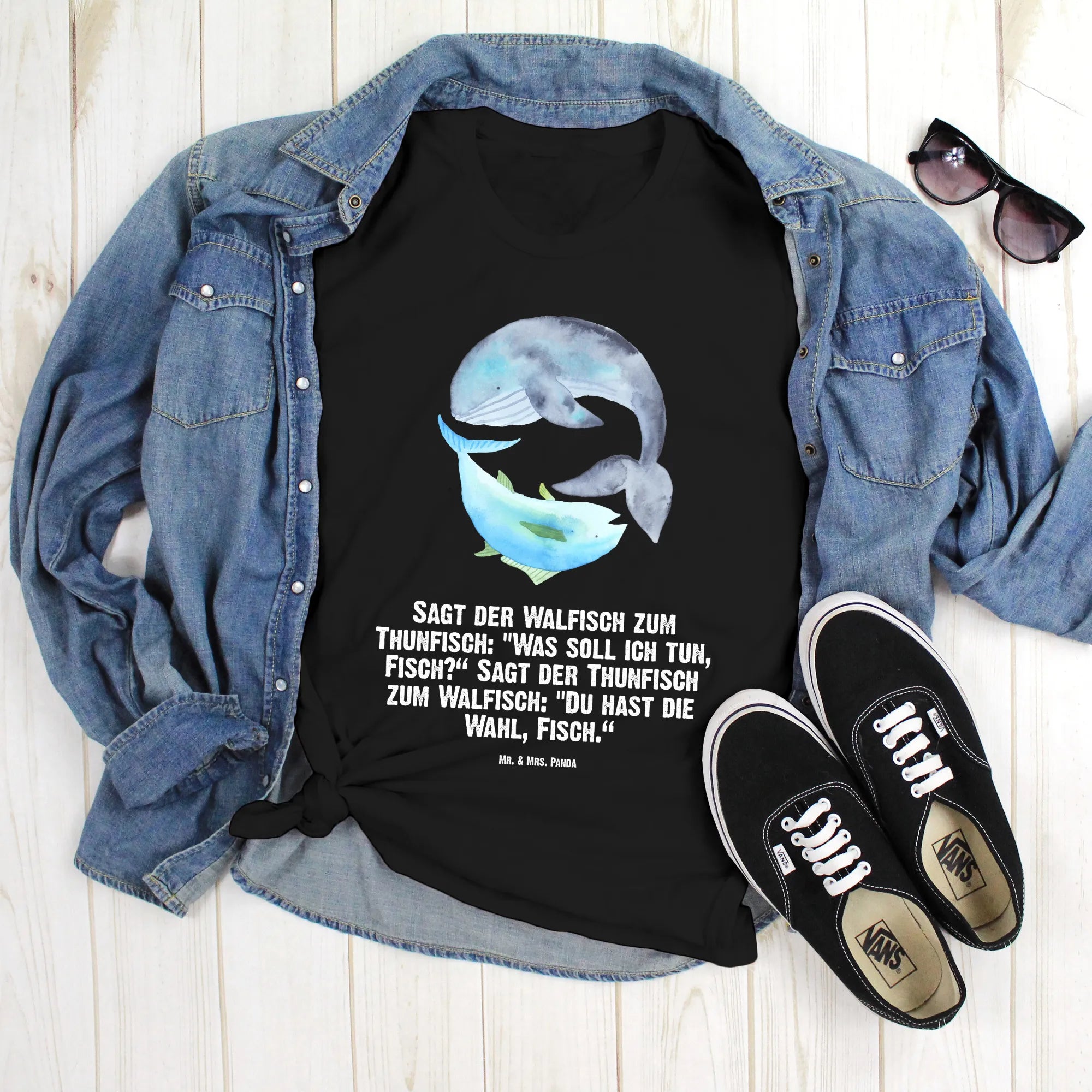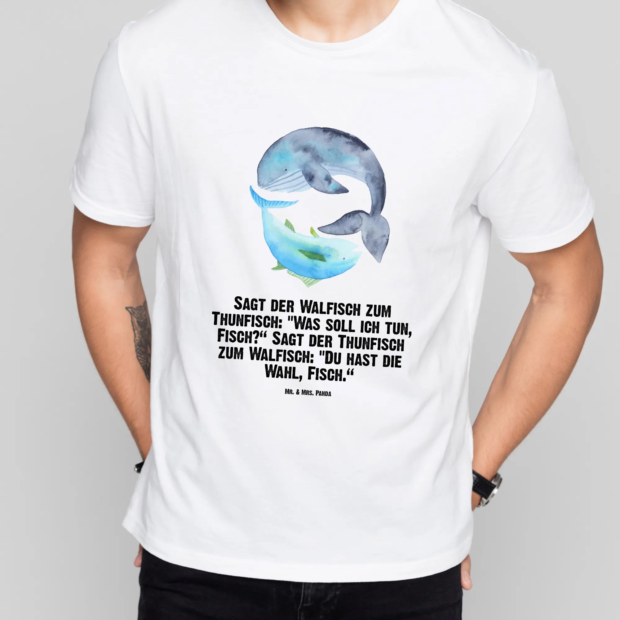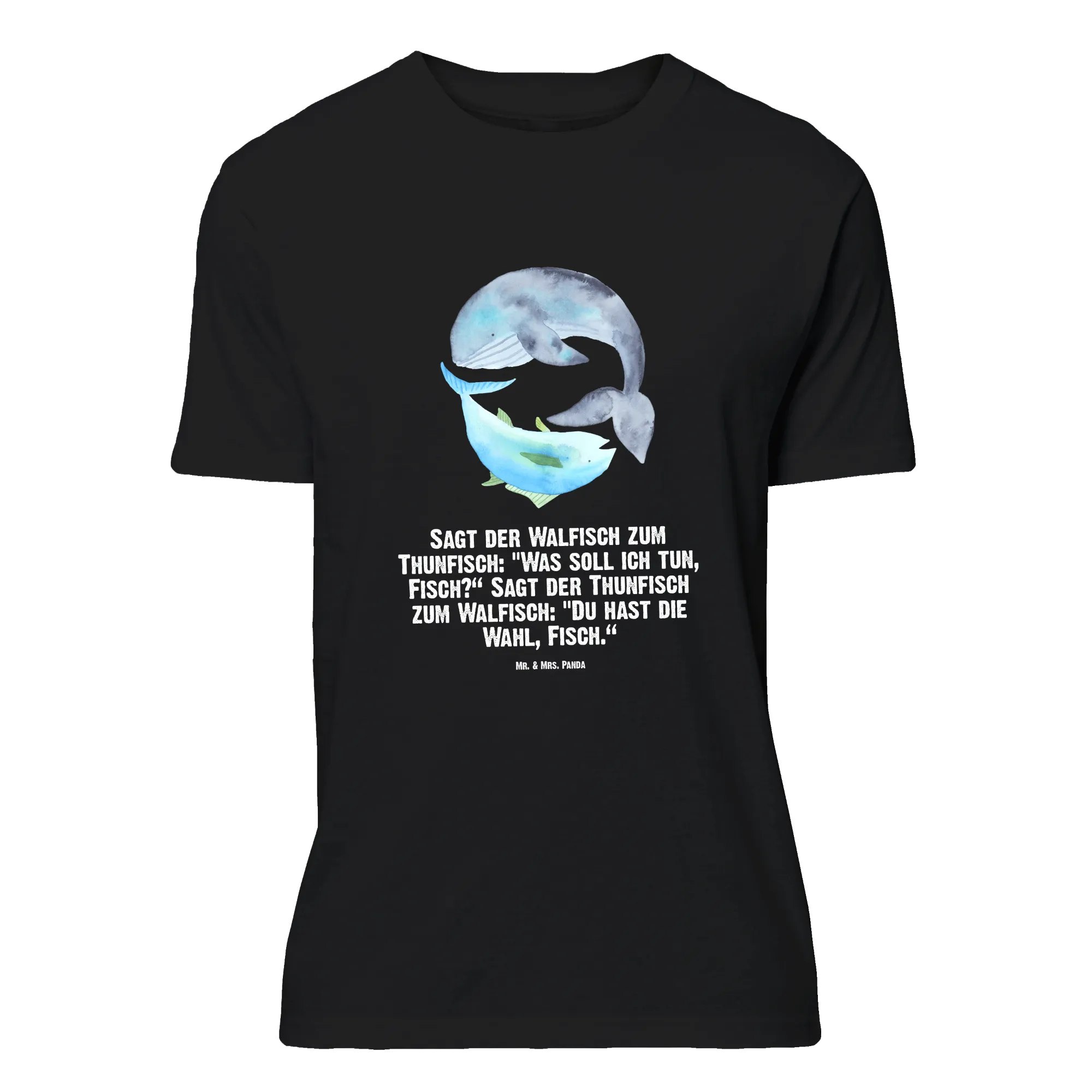 Rozmiar M T-shirt wieloryb tuńczyk - Größe L T-Shirt - z napisem - biały