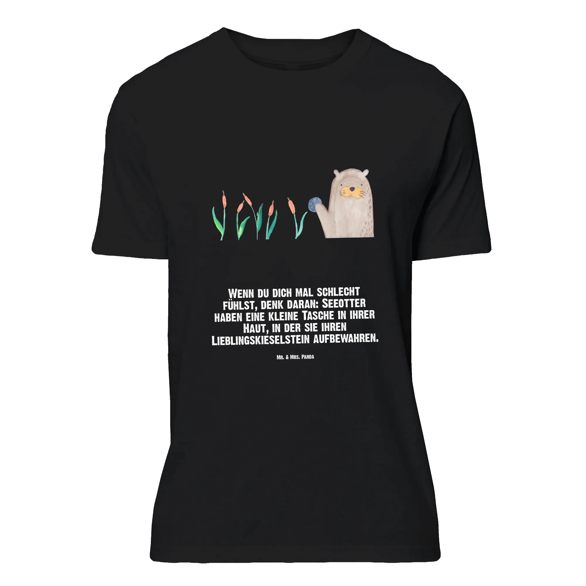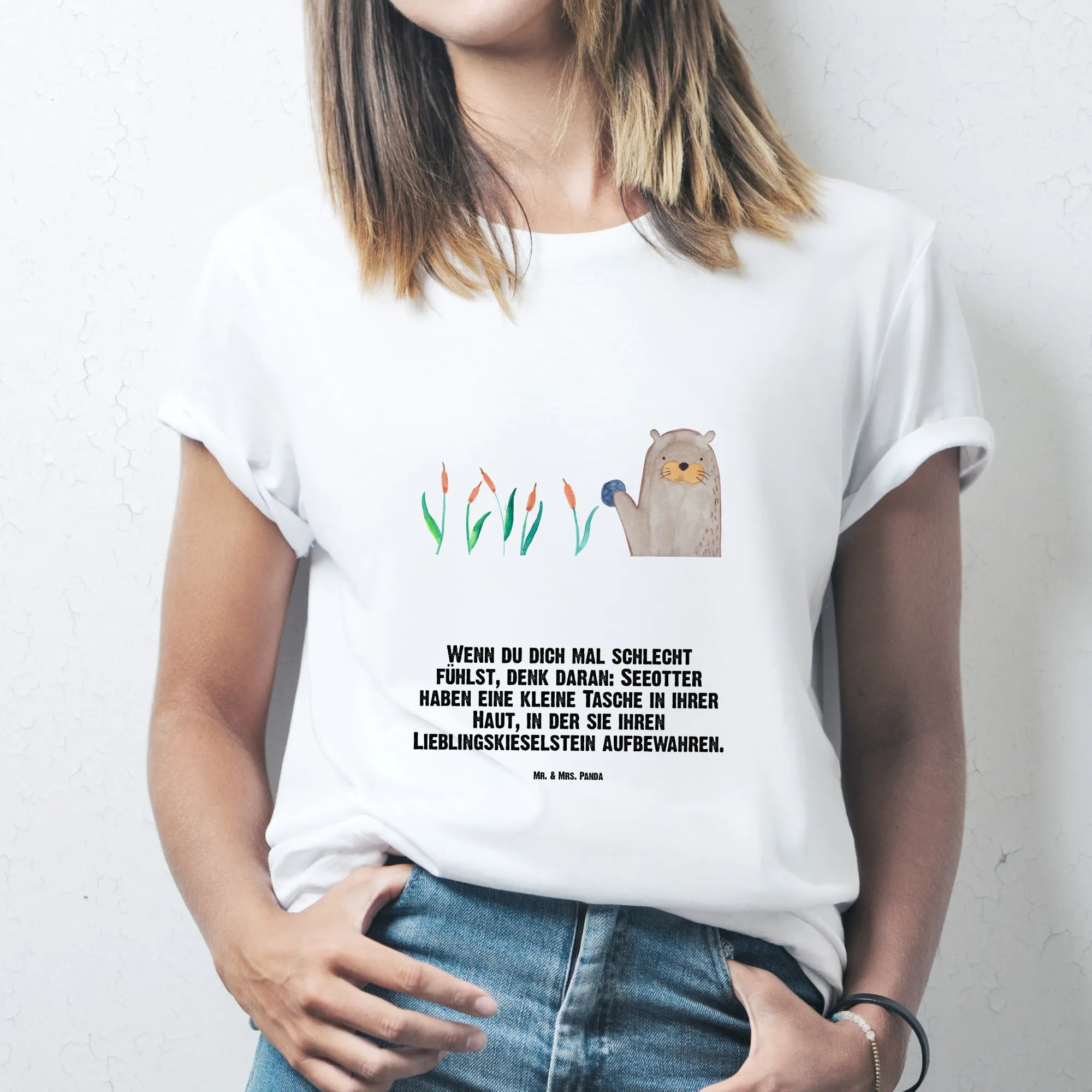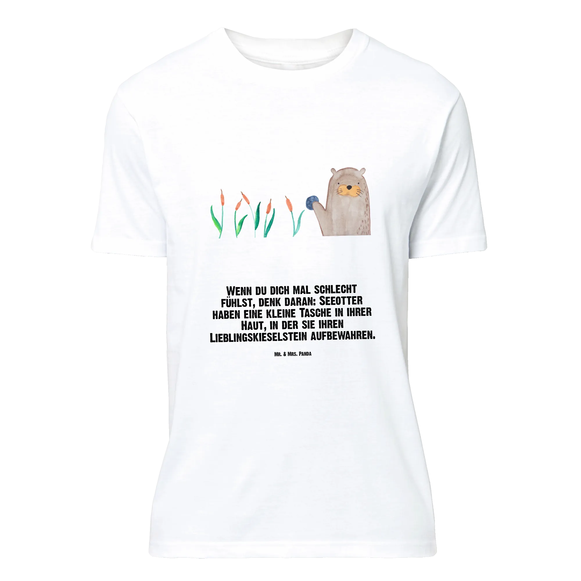 Rozmiar M T-shirt wydra kamień - Größe L T-Shirt - z napisem - biały