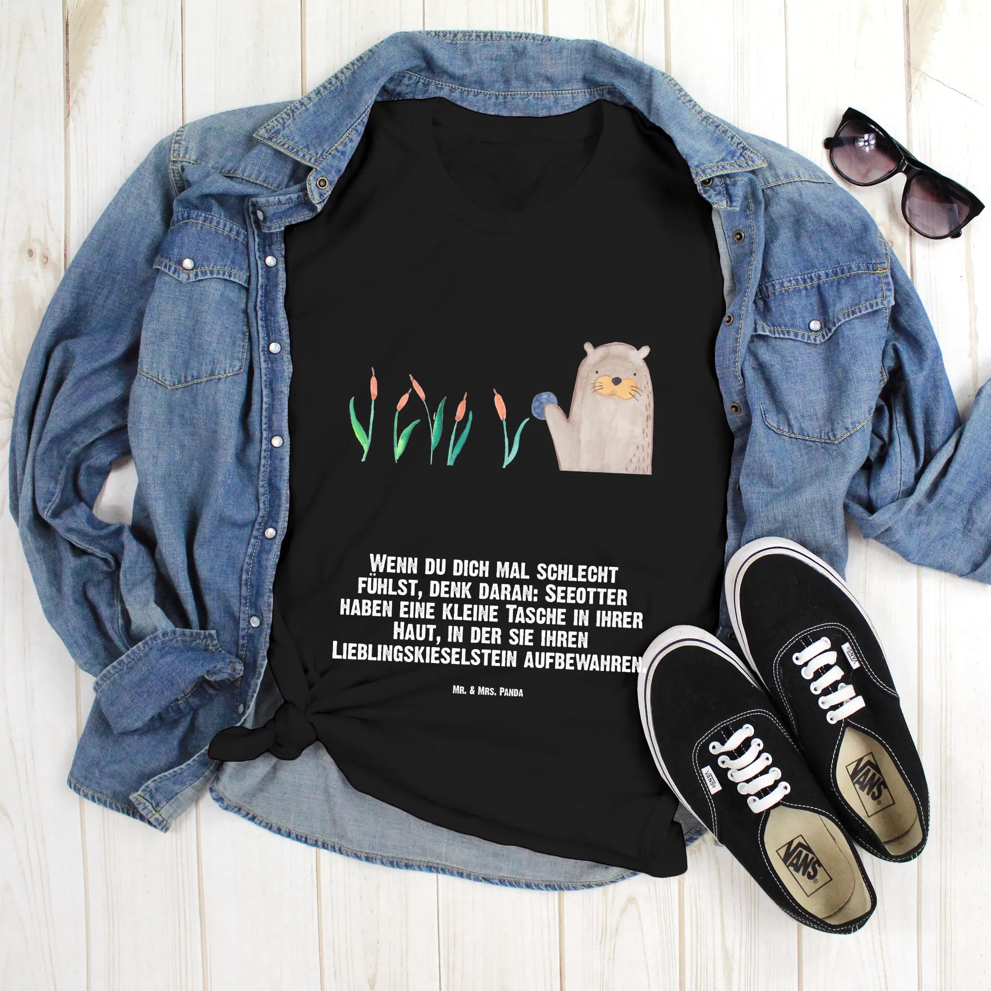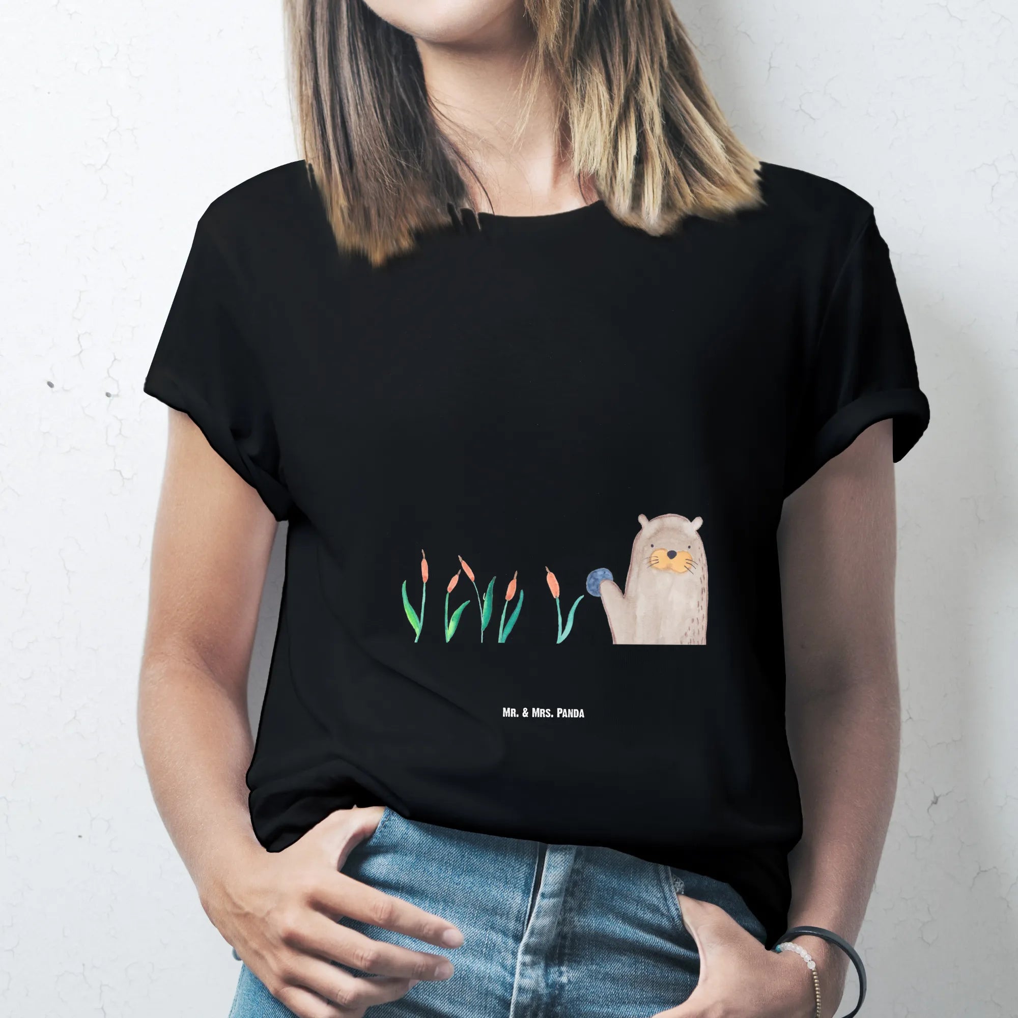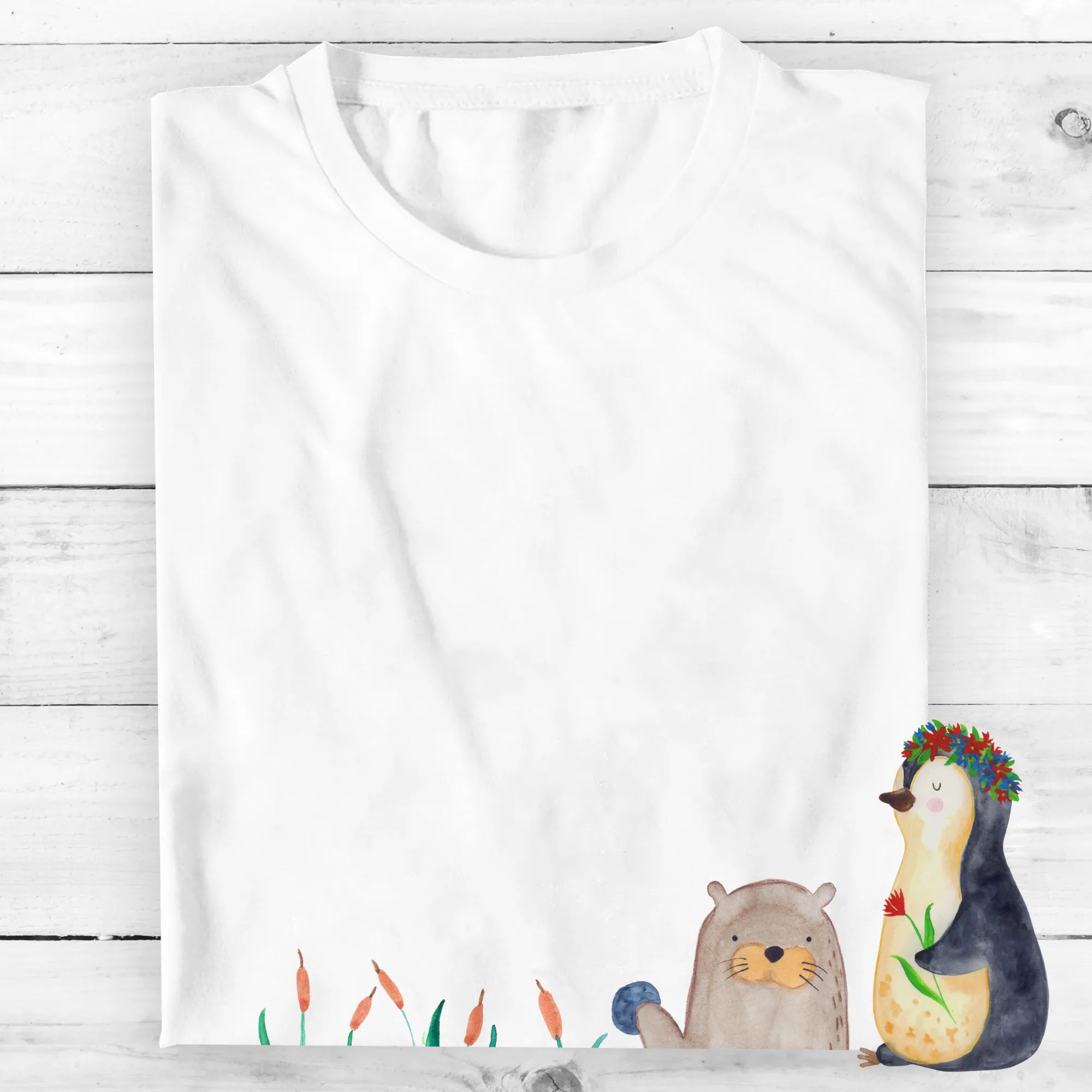 Rozmiar M T-shirt wydra kamień - Größe L T-Shirt - z napisem - biały