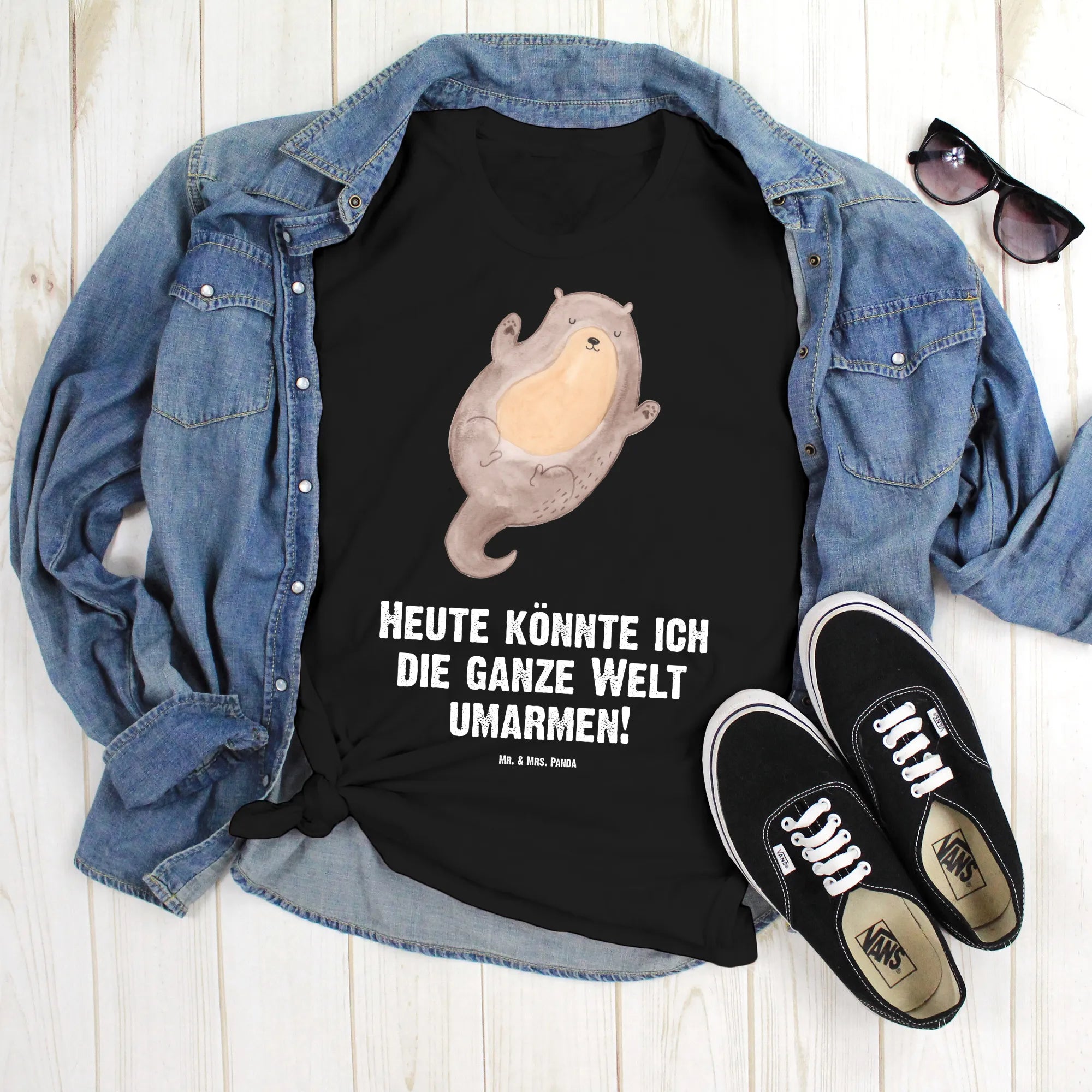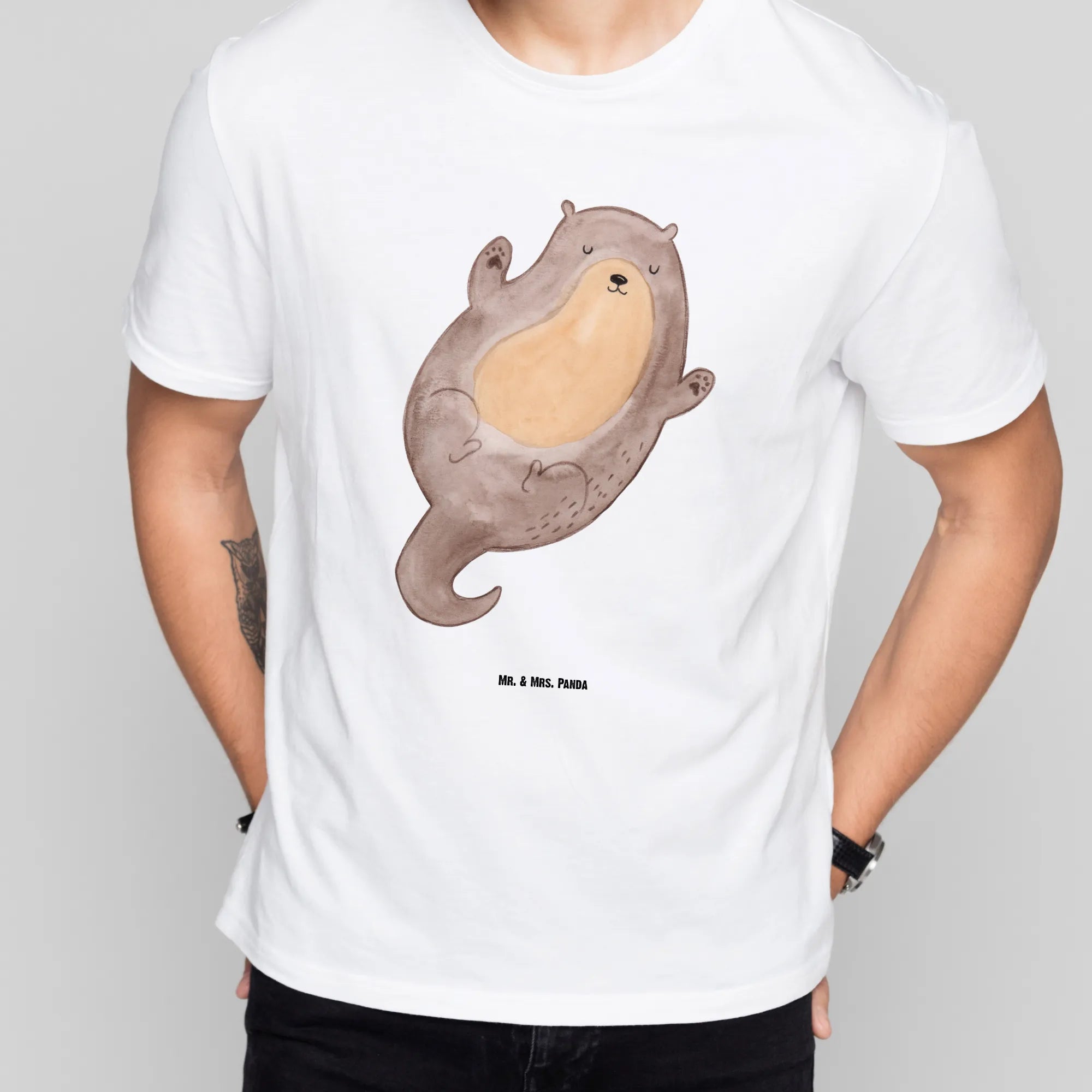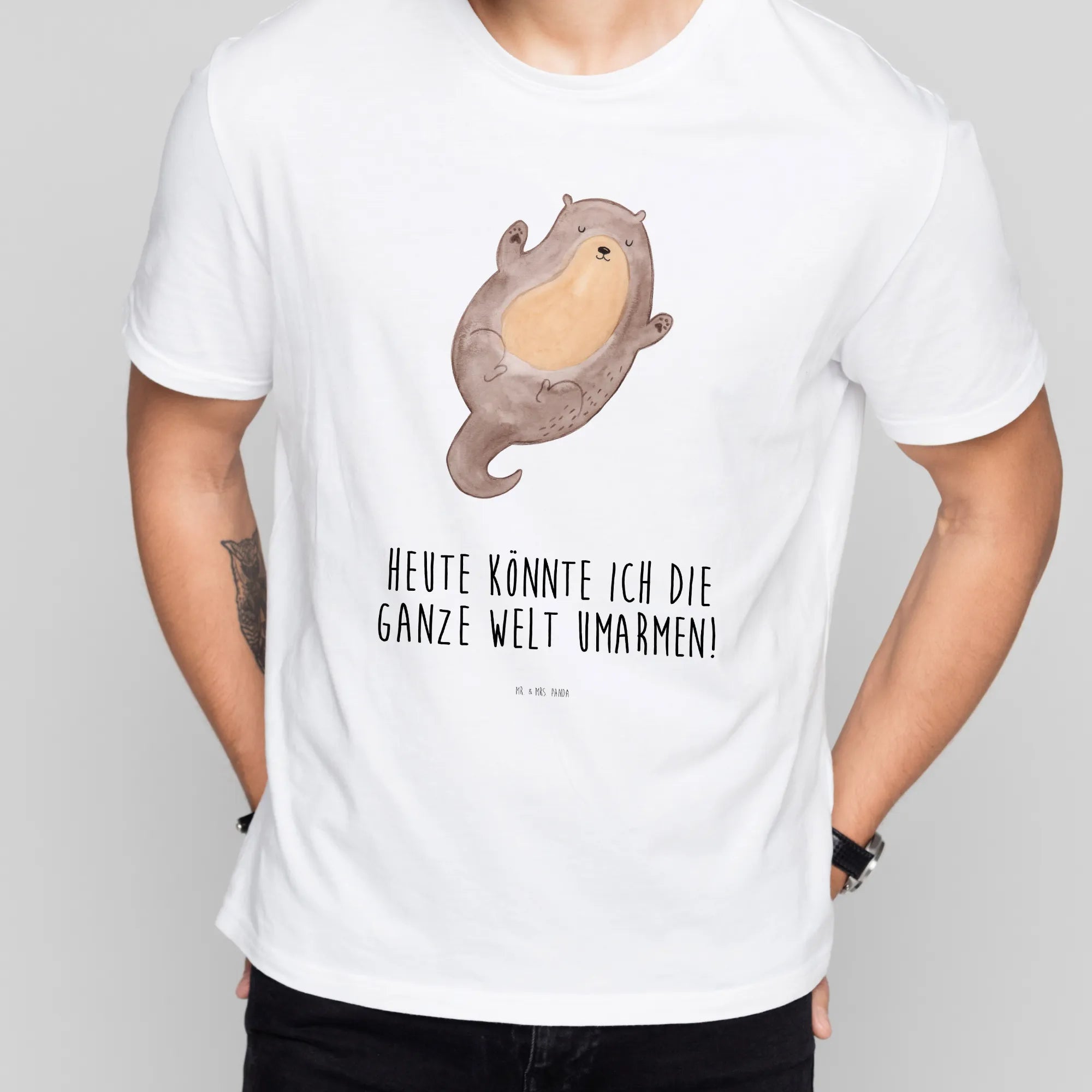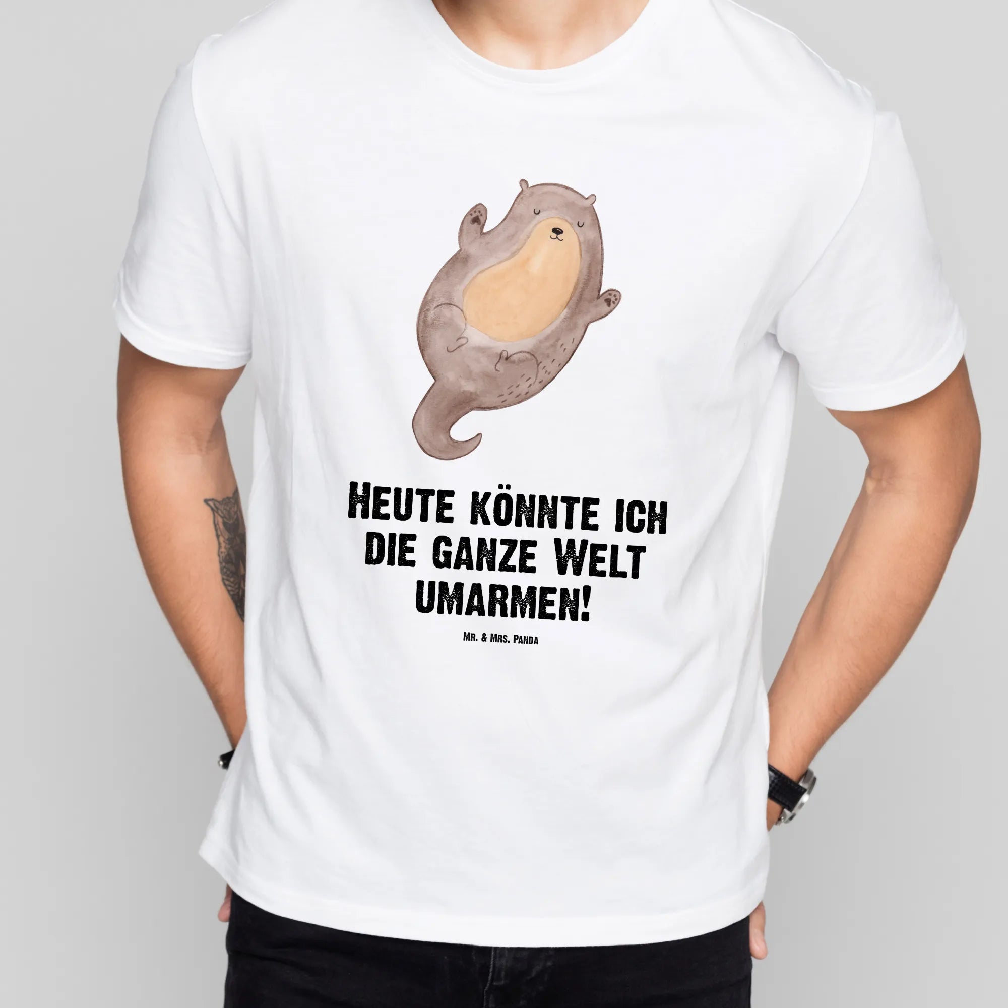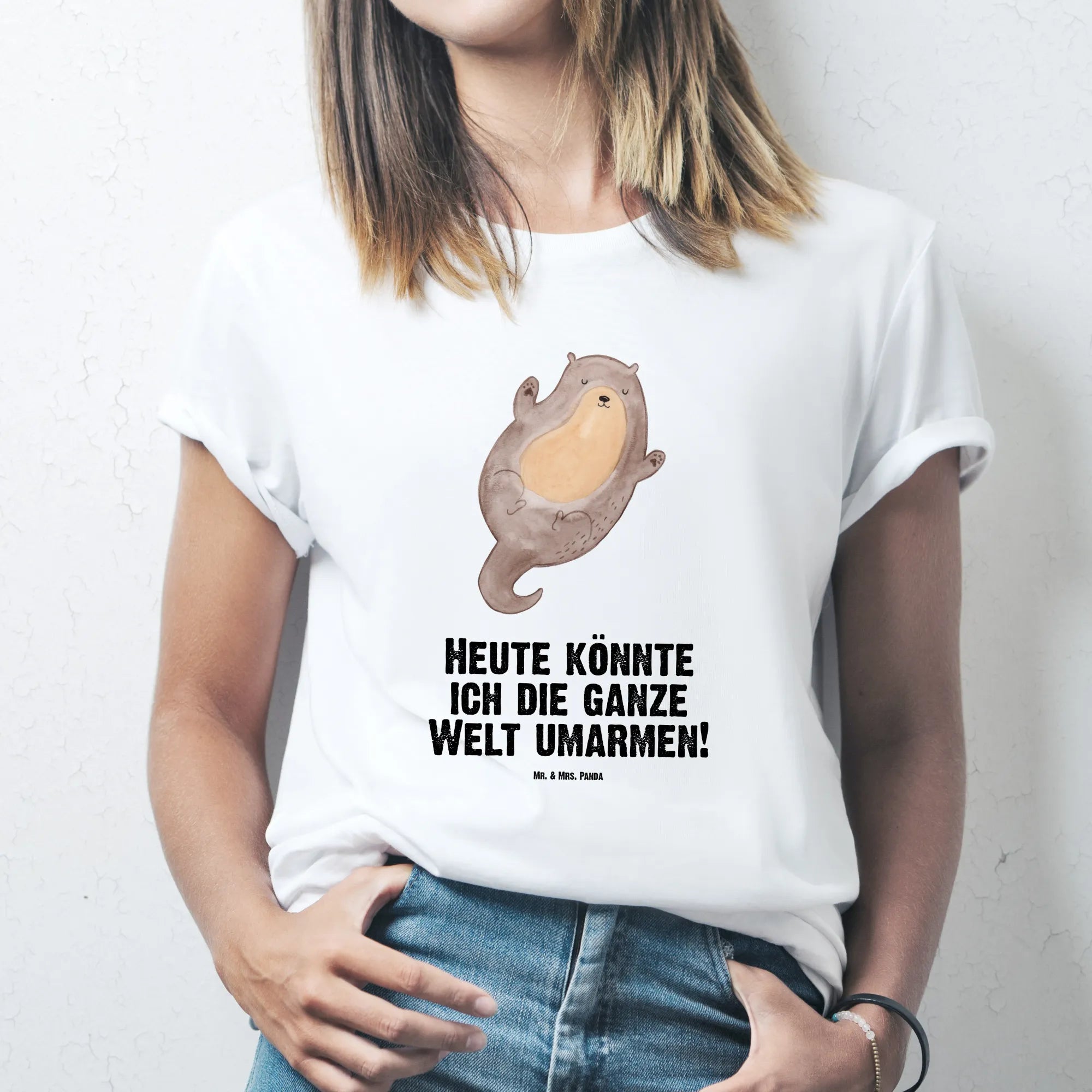 Rozmiar M T-shirt wydra Przytulić - Größe L T-Shirt - z napisem - biały