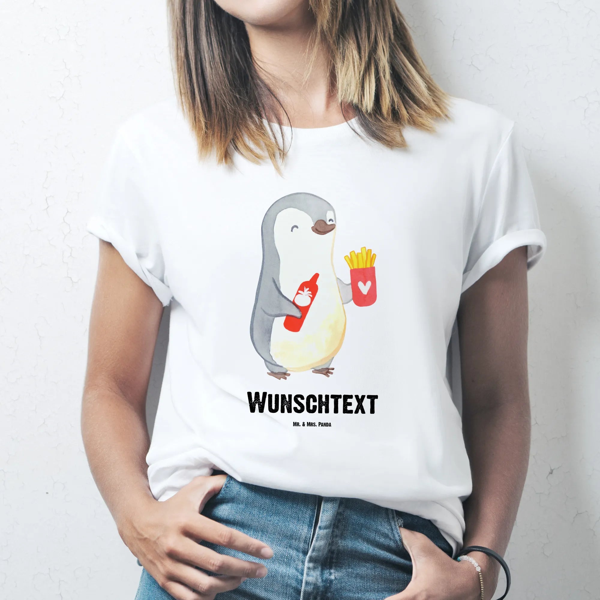 Rozmiar XL Spersonalizowana koszulka pingwin frytki - Größe XL Personalisiertes T-Shirt - biały