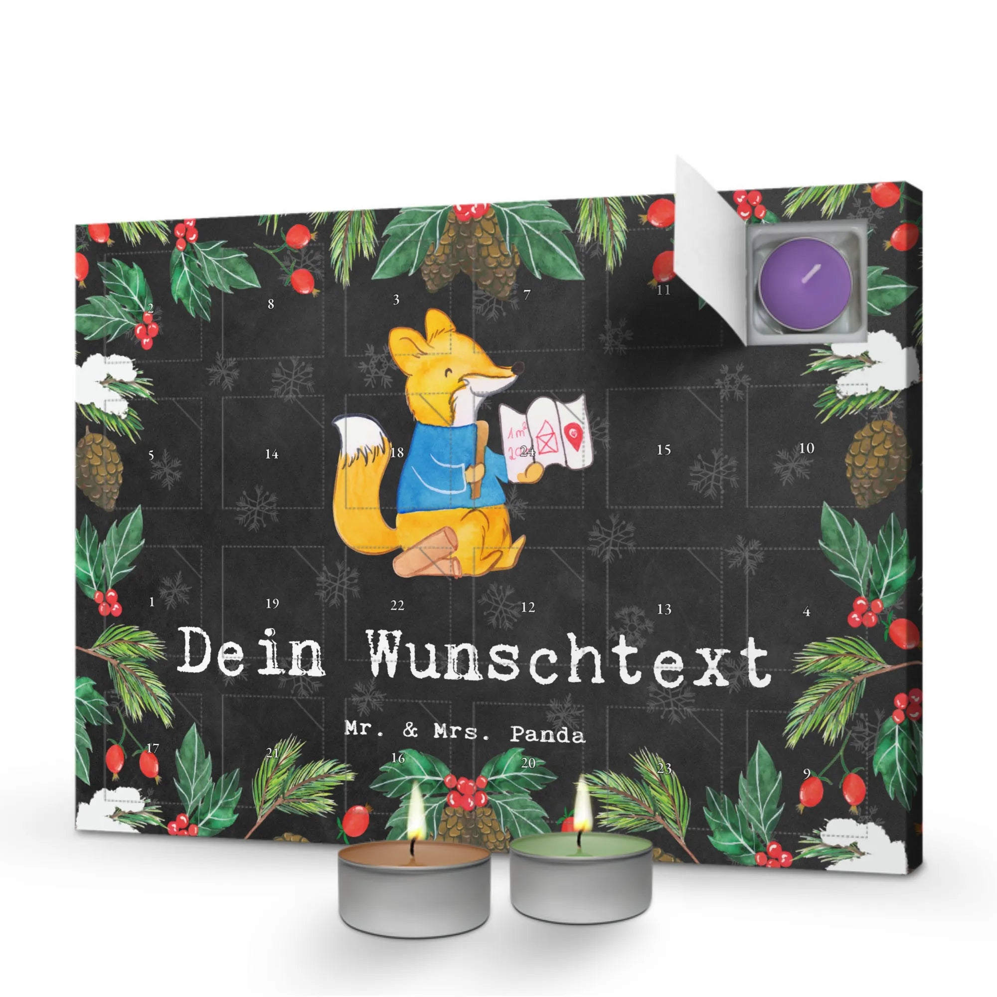 Er ist nicht nur ein Duftspender, sondern auch ein dekoratives Element, das das Zuhause verschönert. Mit einer Größe von 340 mm in der Breite, 247 mm in der Höhe und 18 mm in der Tiefe passt er perfekt auf jeden Tisch. Bring Freude und Licht in jeden Tag bis Weihnachten - mit dem personalisierten Duftkerzen Adventskalender von Mr. & Mrs. Panda.