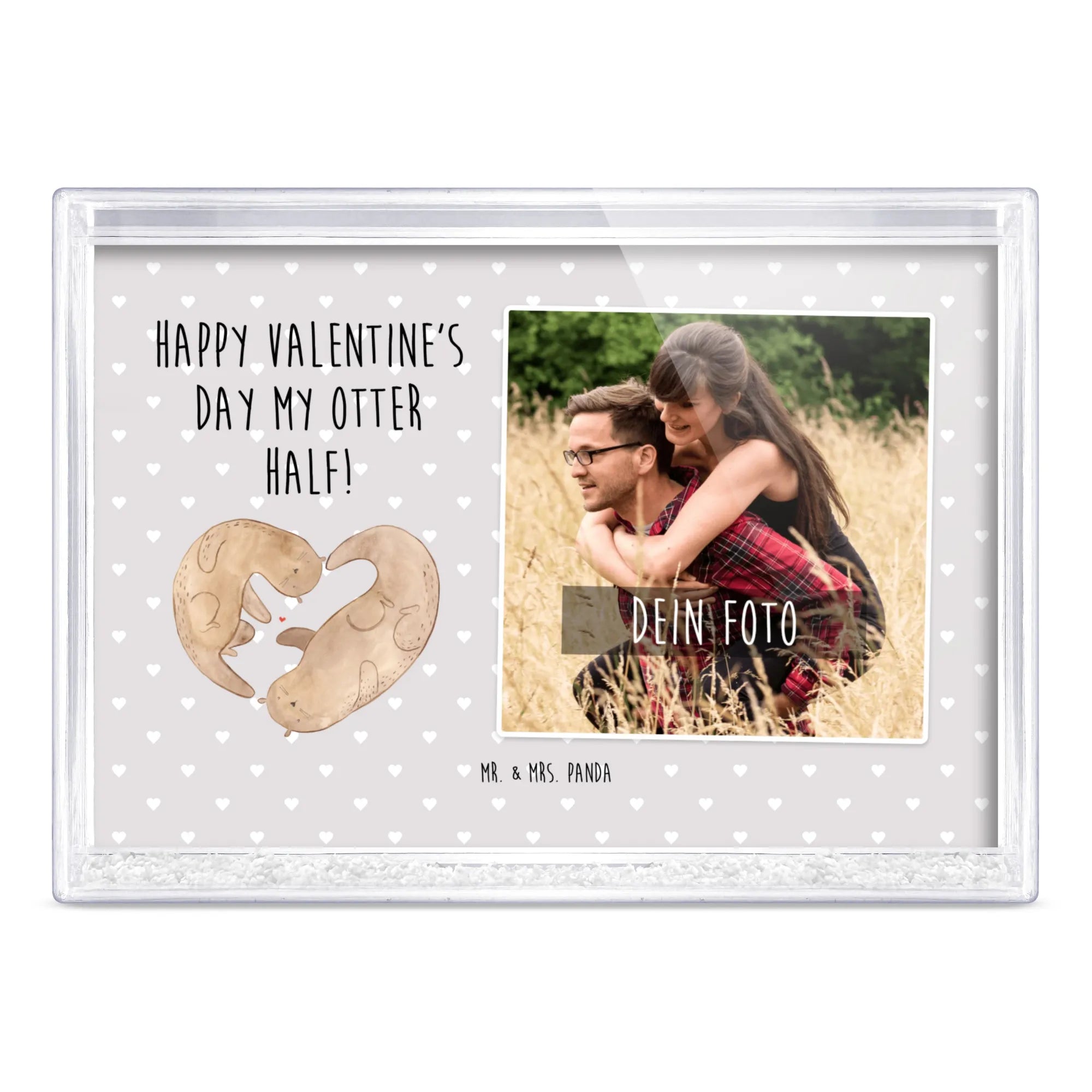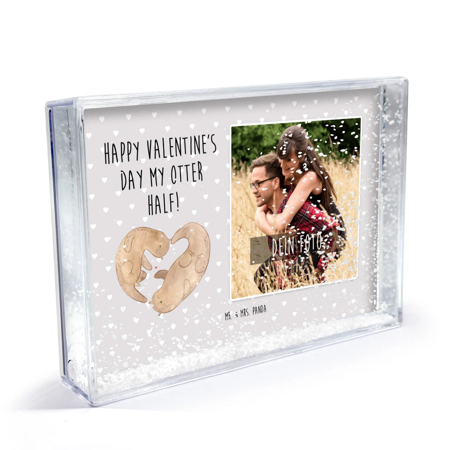 Der Schüttelrahmen mit Foto "Otter Valentine" aus der liebevollen Kollektion von Mr. & Mrs. Panda ist das perfekte Geschenk für all jene, die die Liebe feiern möchten. Ob zum Valentinstag, als romantisches Mitbringsel für deinen Partner oder als süßes Geschenk für die eigene Freundin – dieser Bilderrahmen wird Herzen zum Schmelzen bringen! Die Innenseite des Rahmens zeigt zwei charmante Otter, die sich an den Pfoten halten und ein Herz bilden, während ein kleines rotes Herz zwischen ihnen schwebt. Diese liebevolle Darstellung strahlt Zärtlichkeit und Verbundenheit aus.