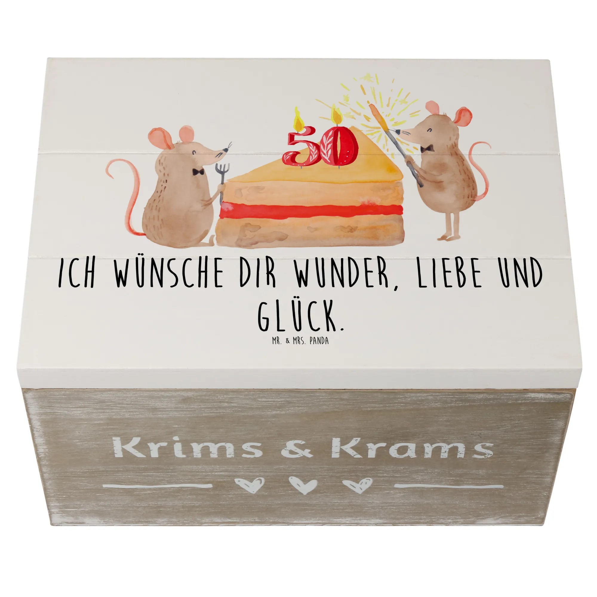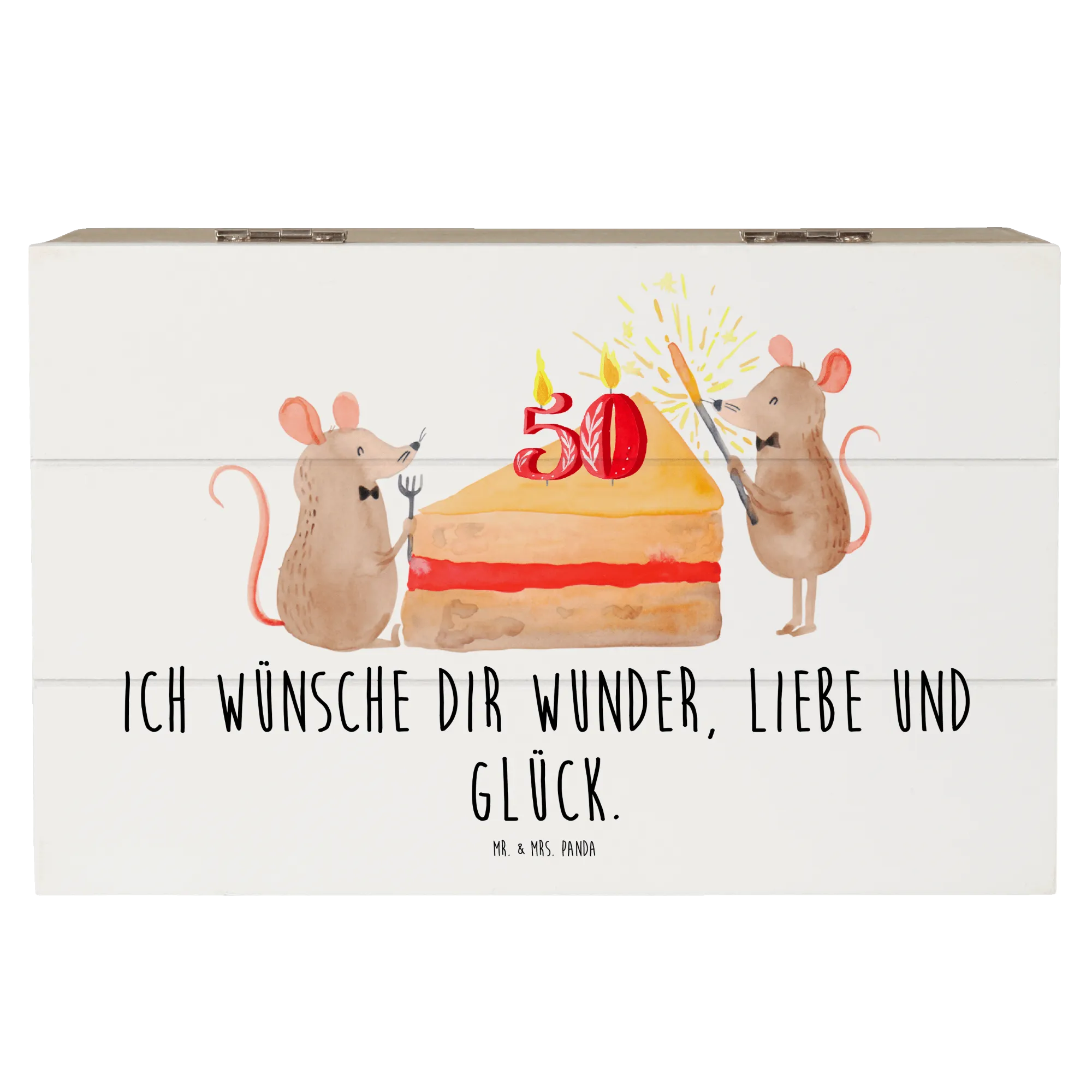 Skrzynia drewniana 50. urodziny Ciasto myszy - 22 x 15 cm - z napisem