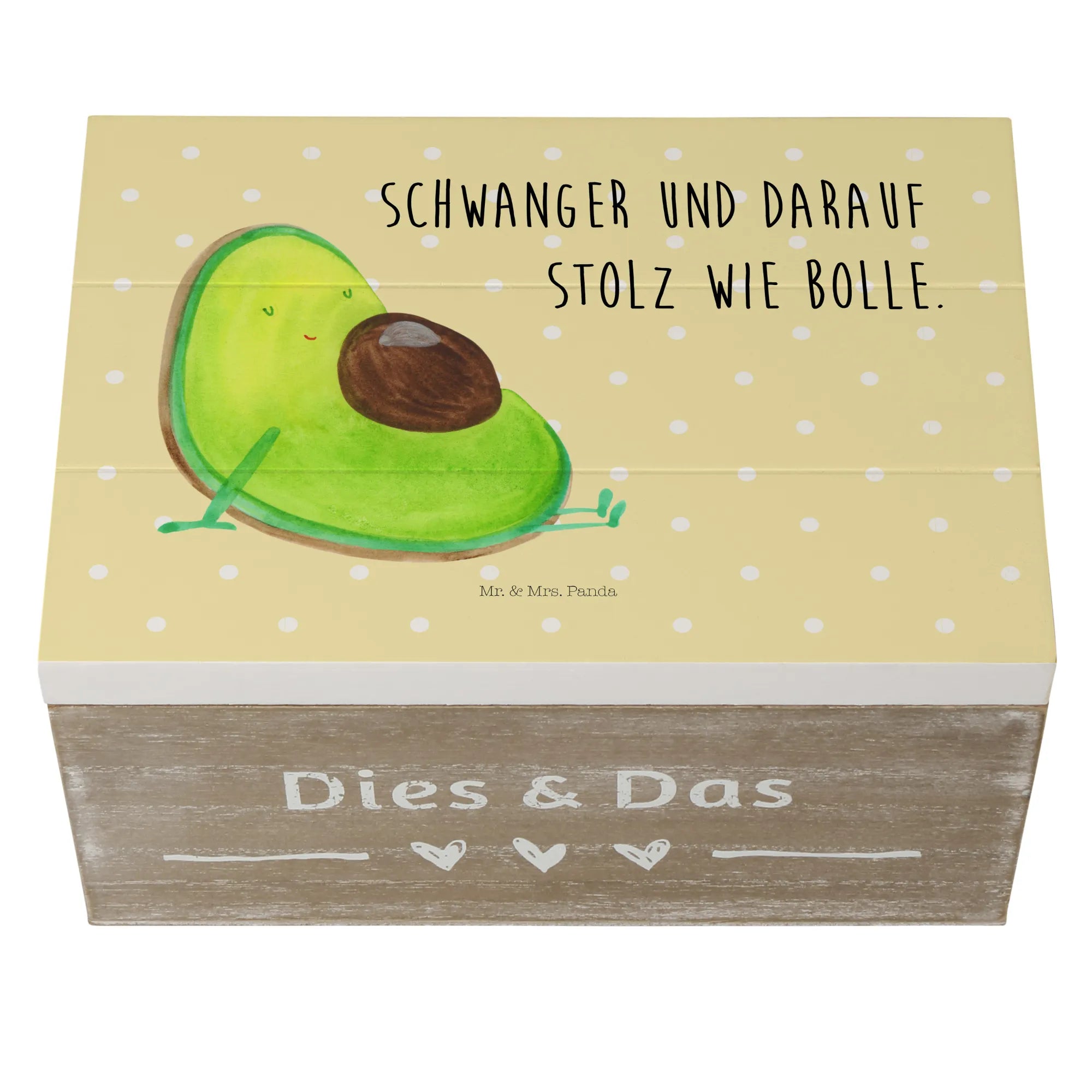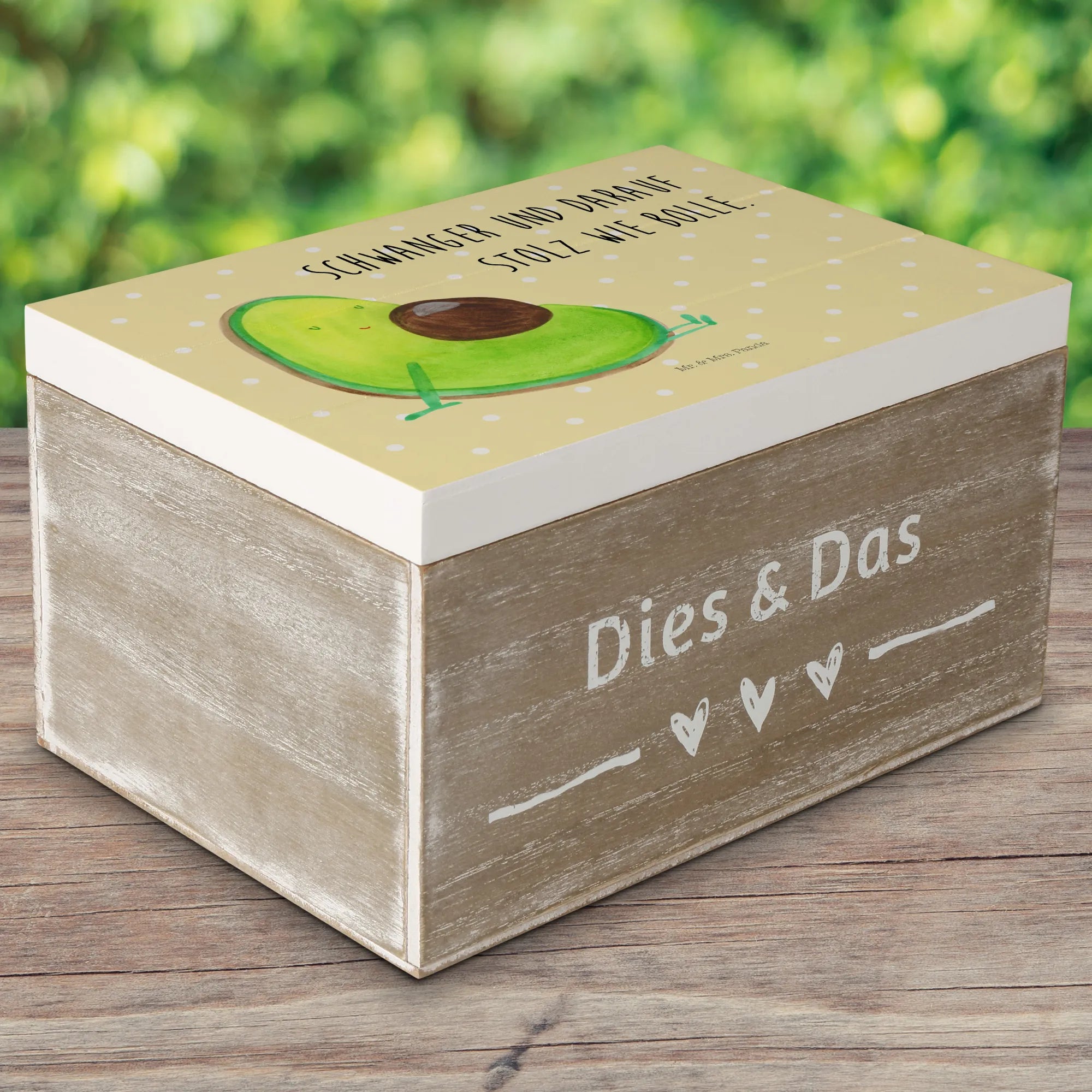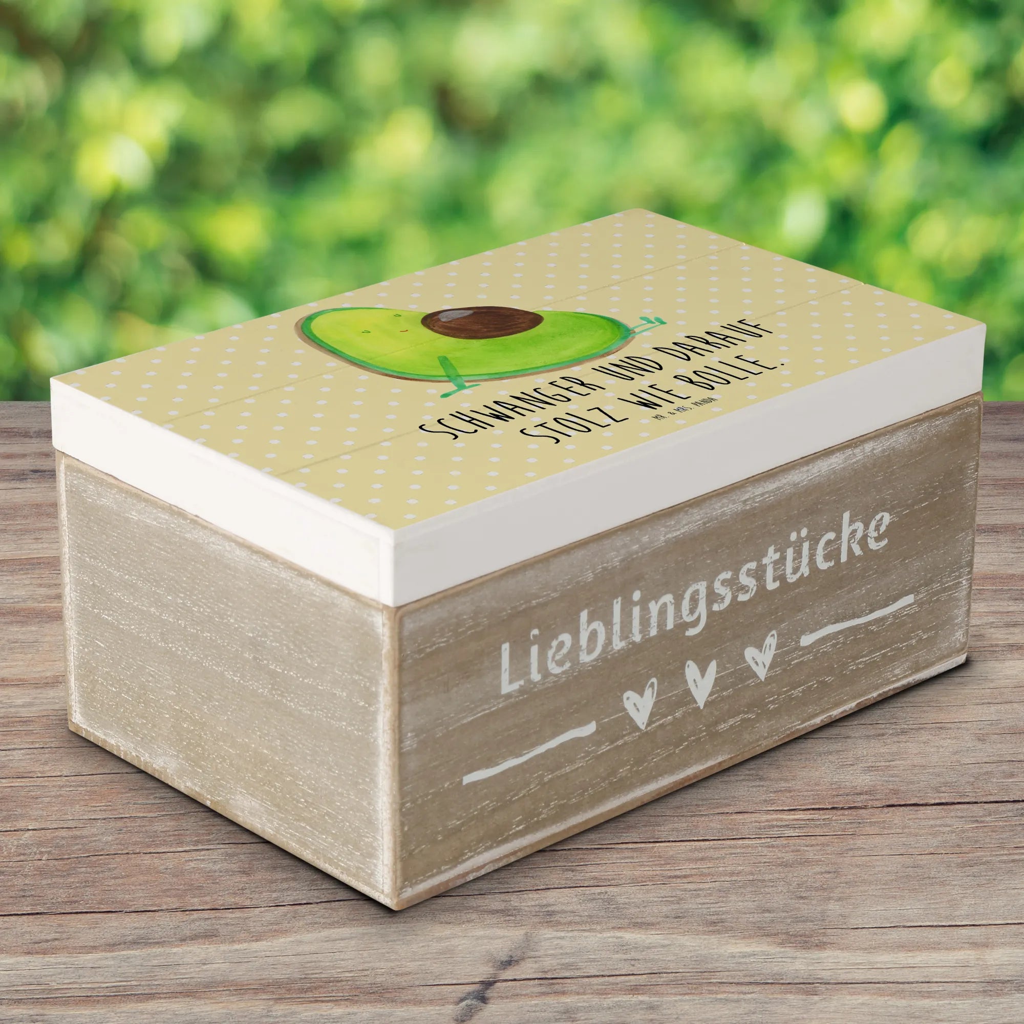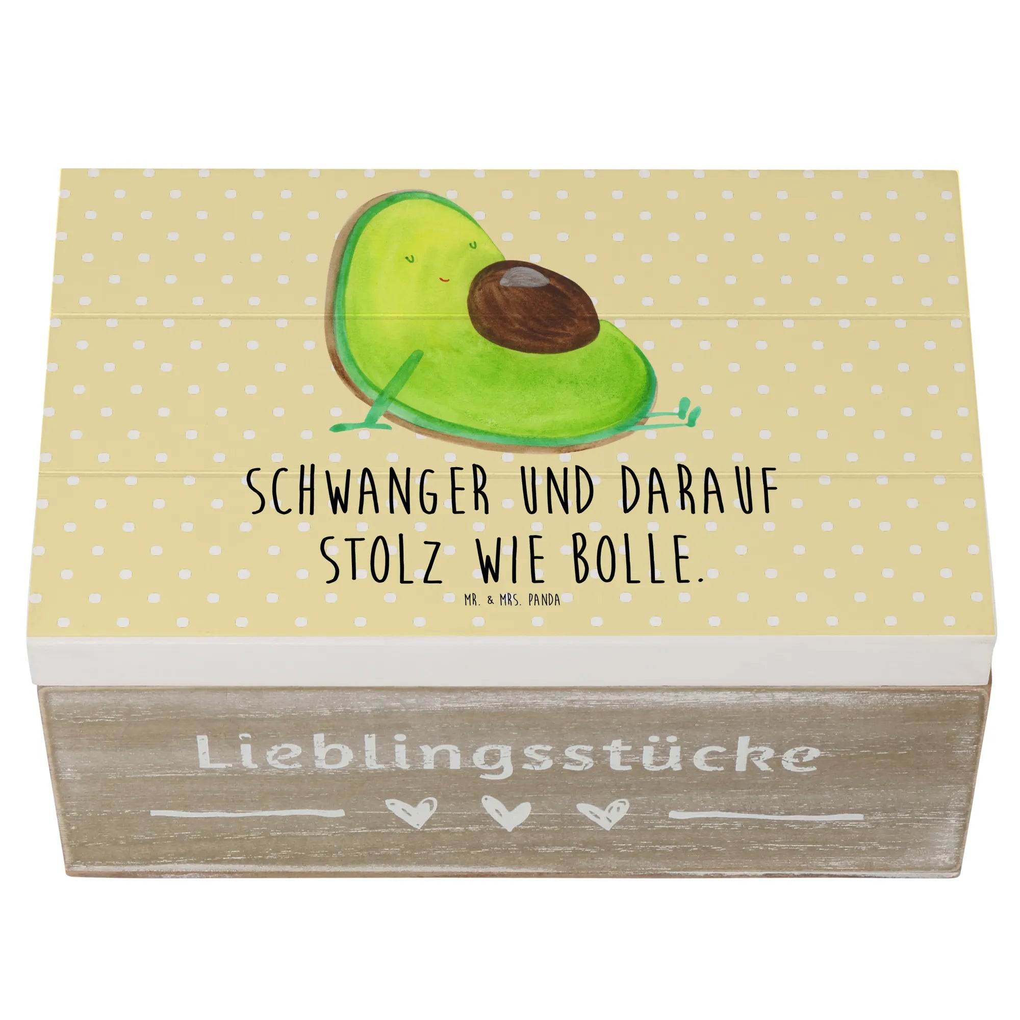 Skrzynia drewniana Awokado ciąża - 22 x 15 cm - z napisem - Pastelowy żółty