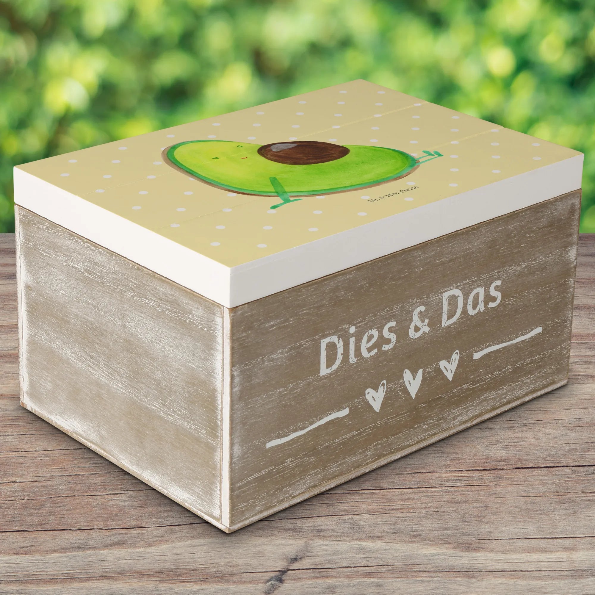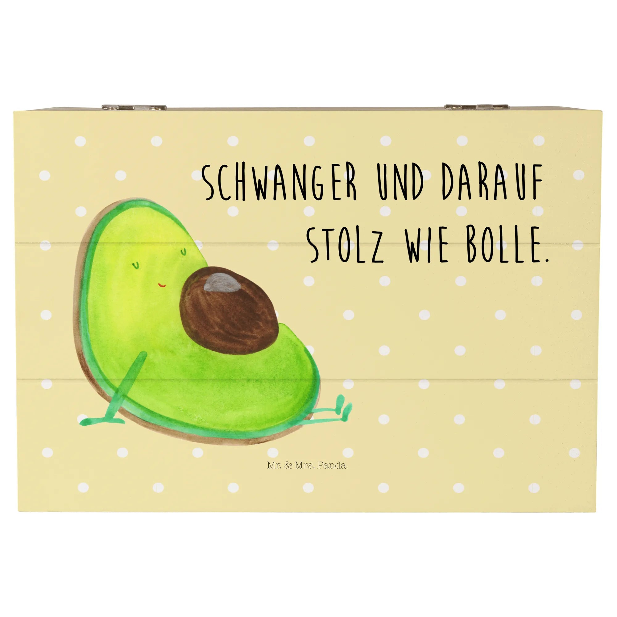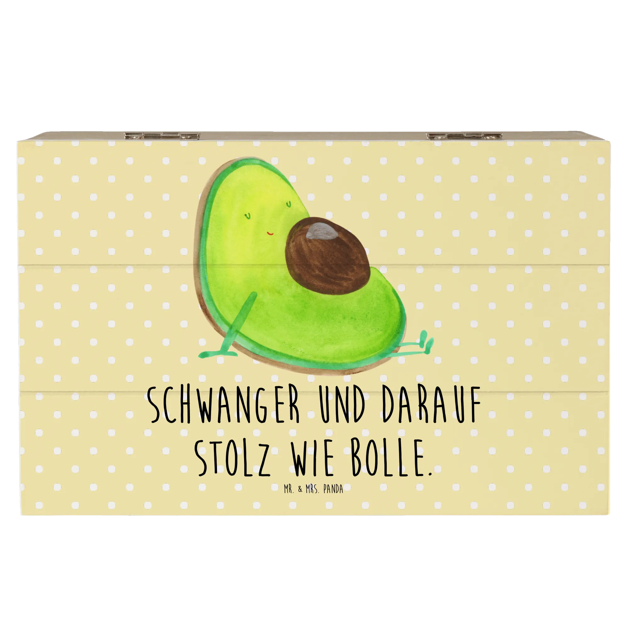 Skrzynia drewniana Awokado ciąża - 22 x 15 cm - z napisem - Pastelowy żółty