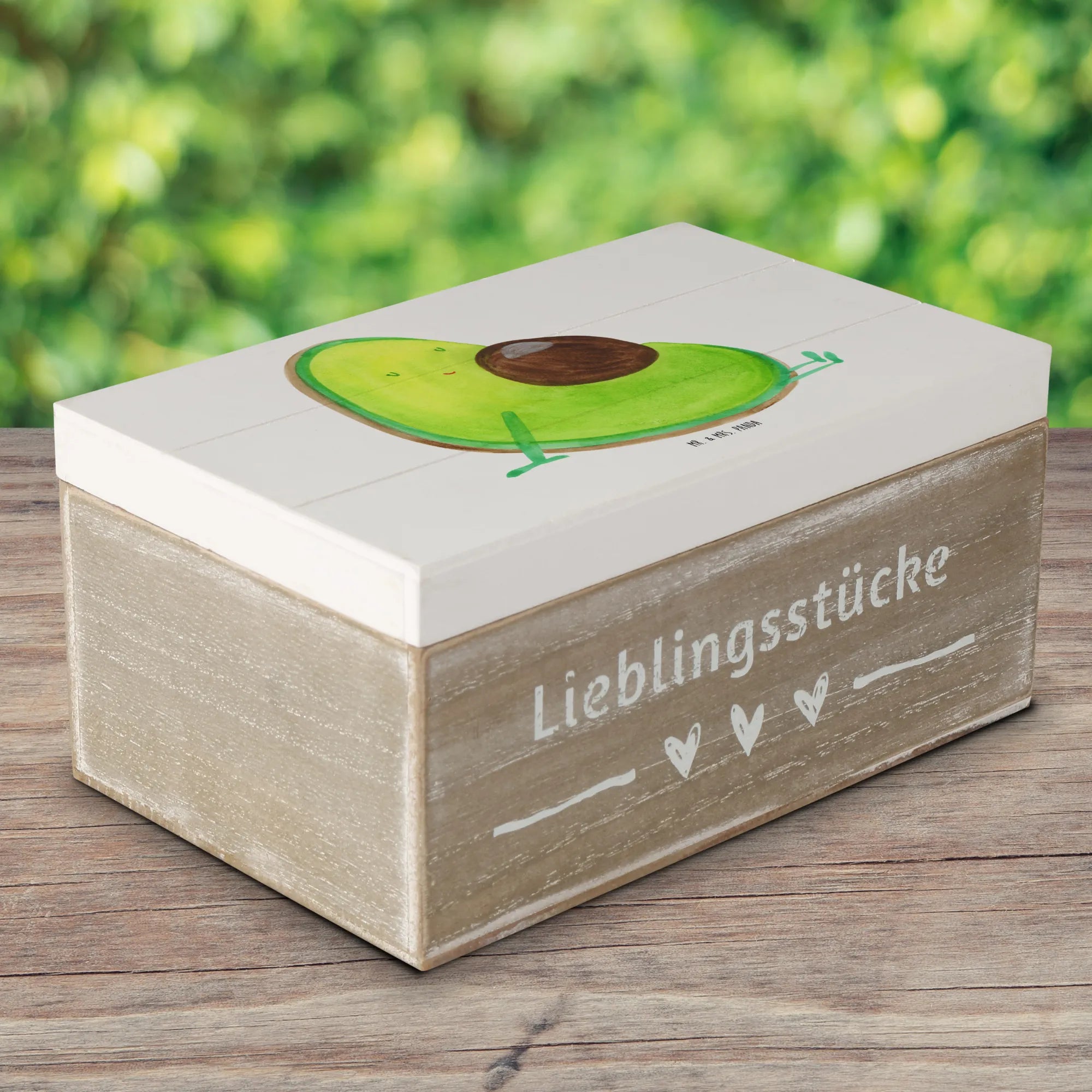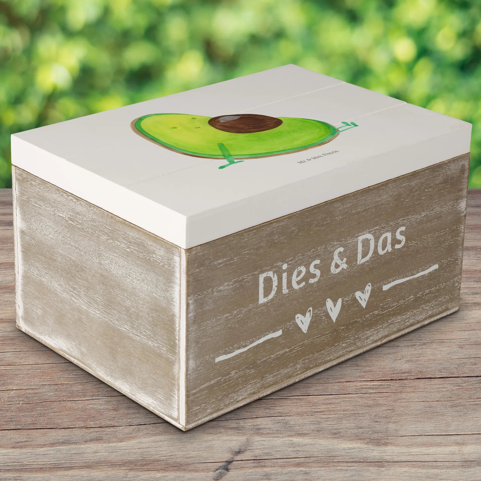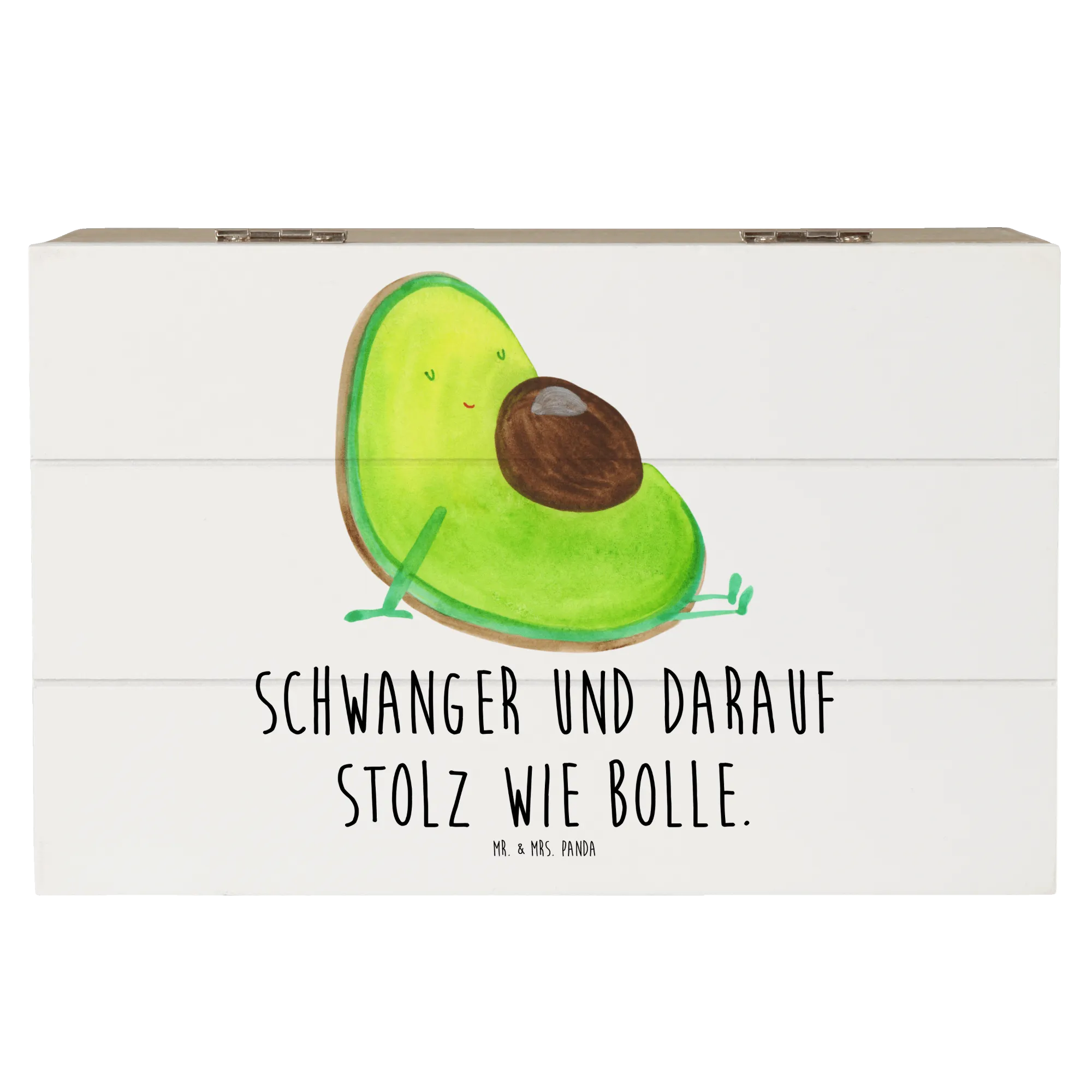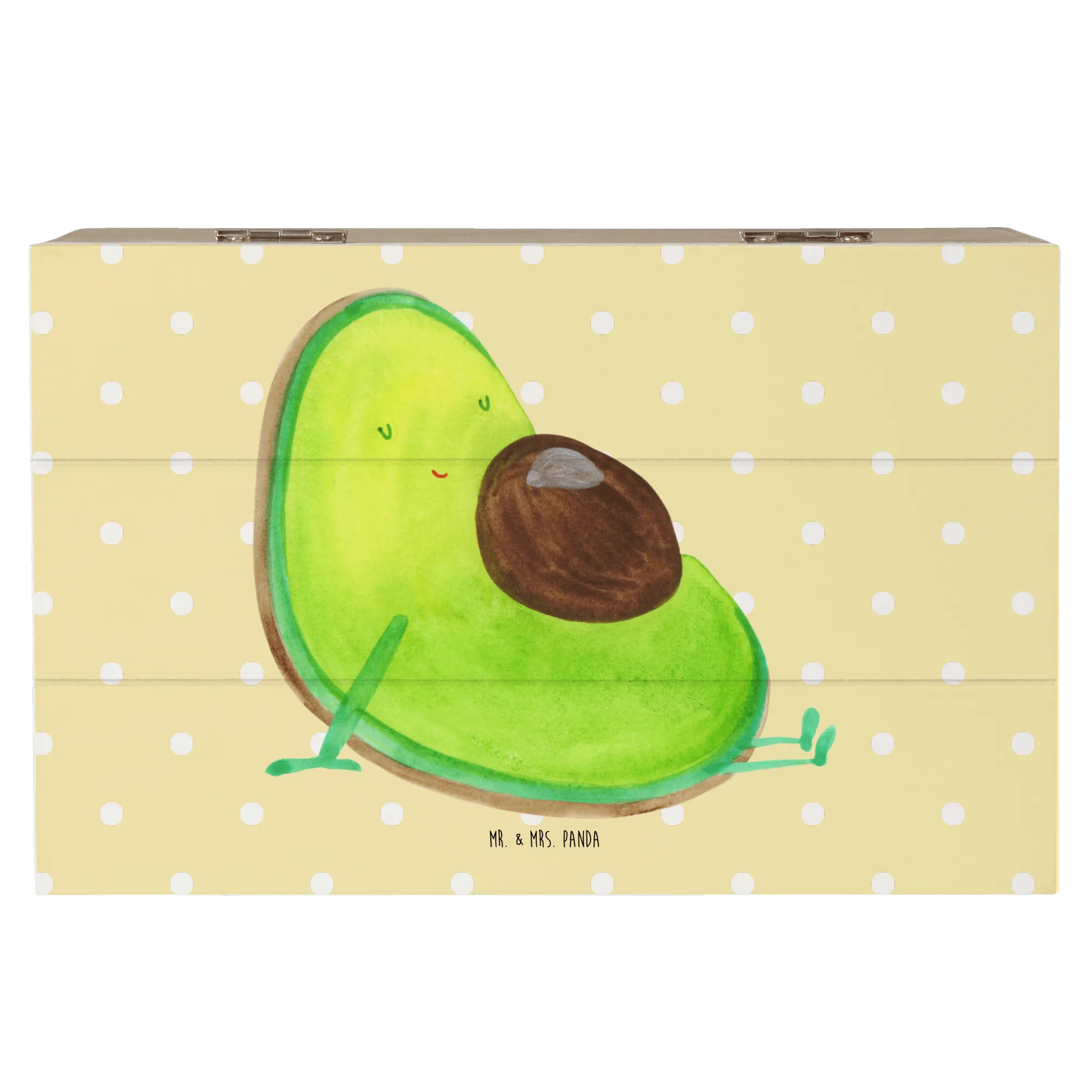 Skrzynia drewniana Awokado ciąża - 22 x 15 cm - z napisem - Pastelowy żółty