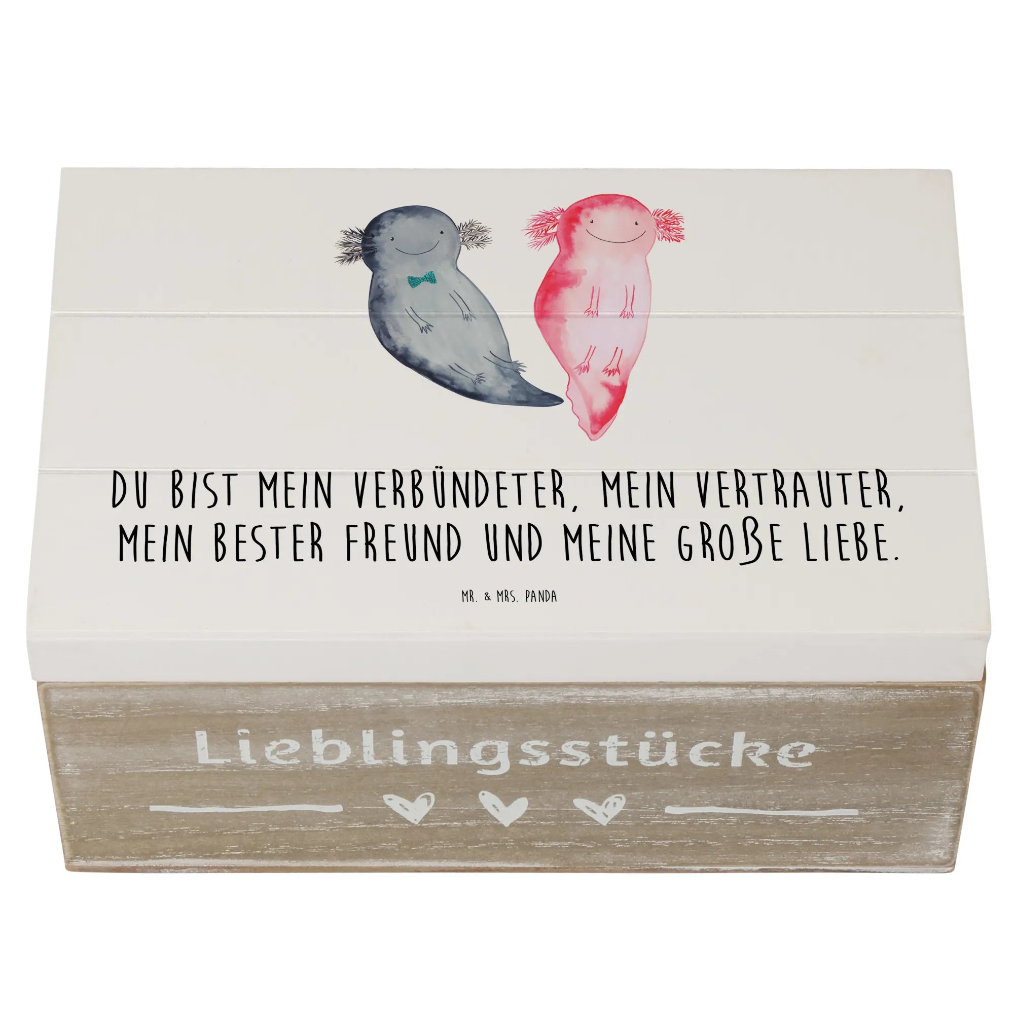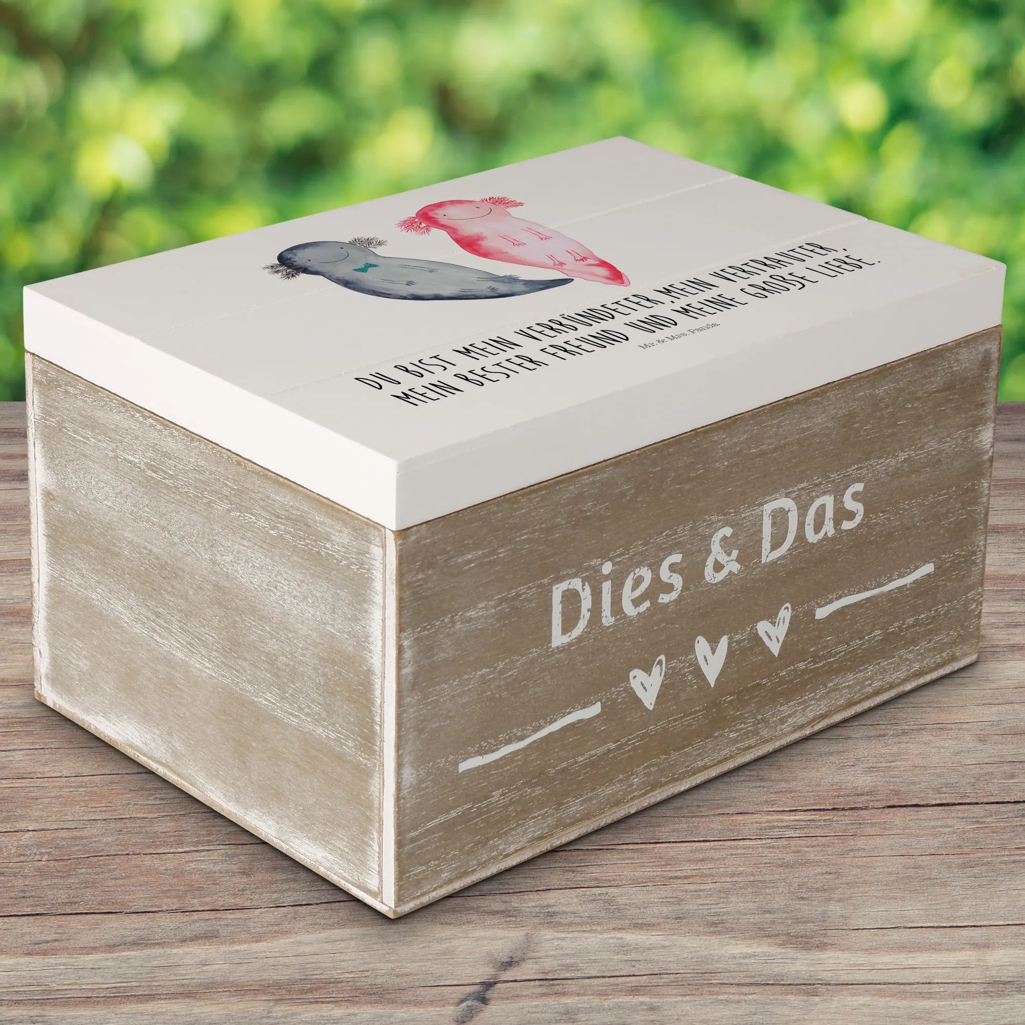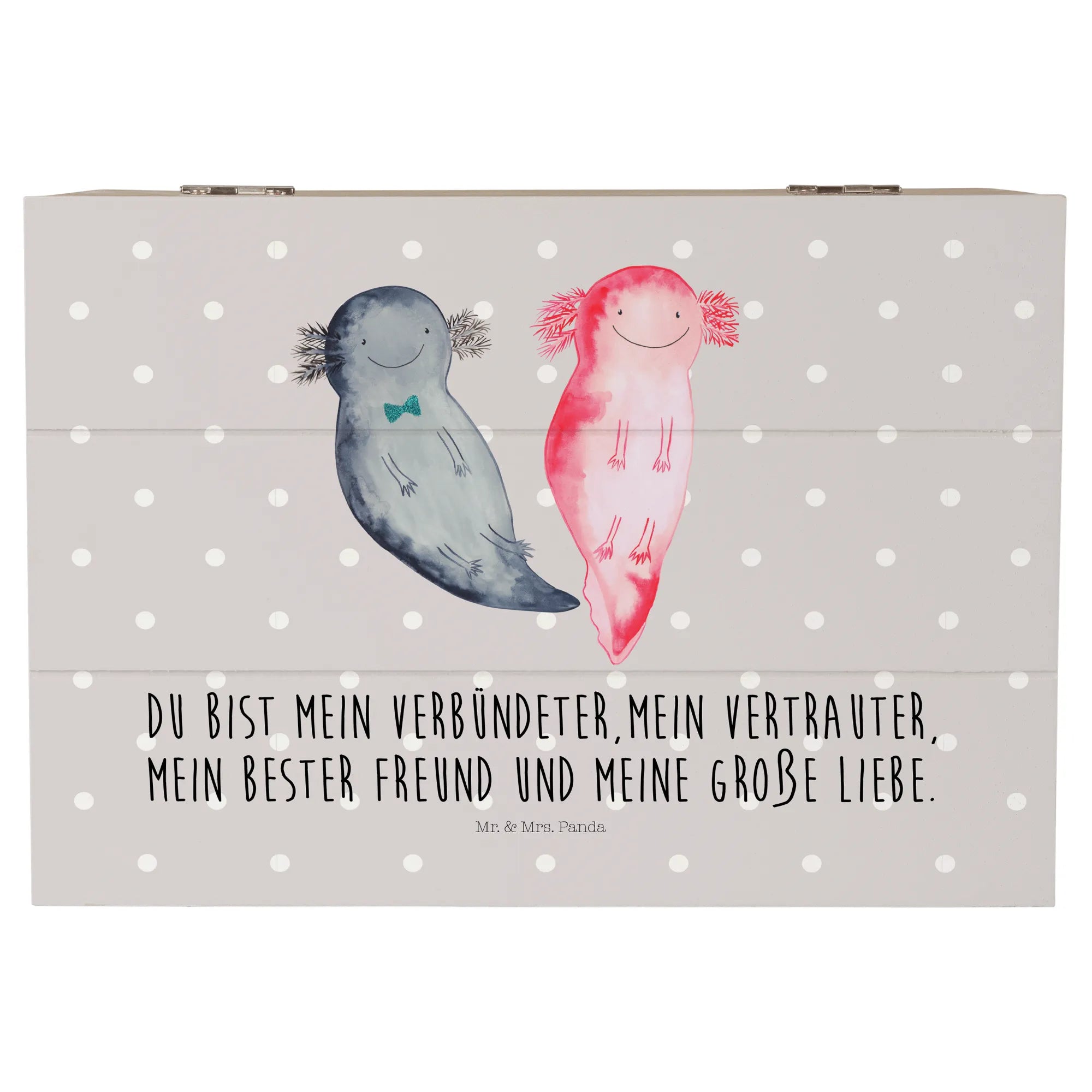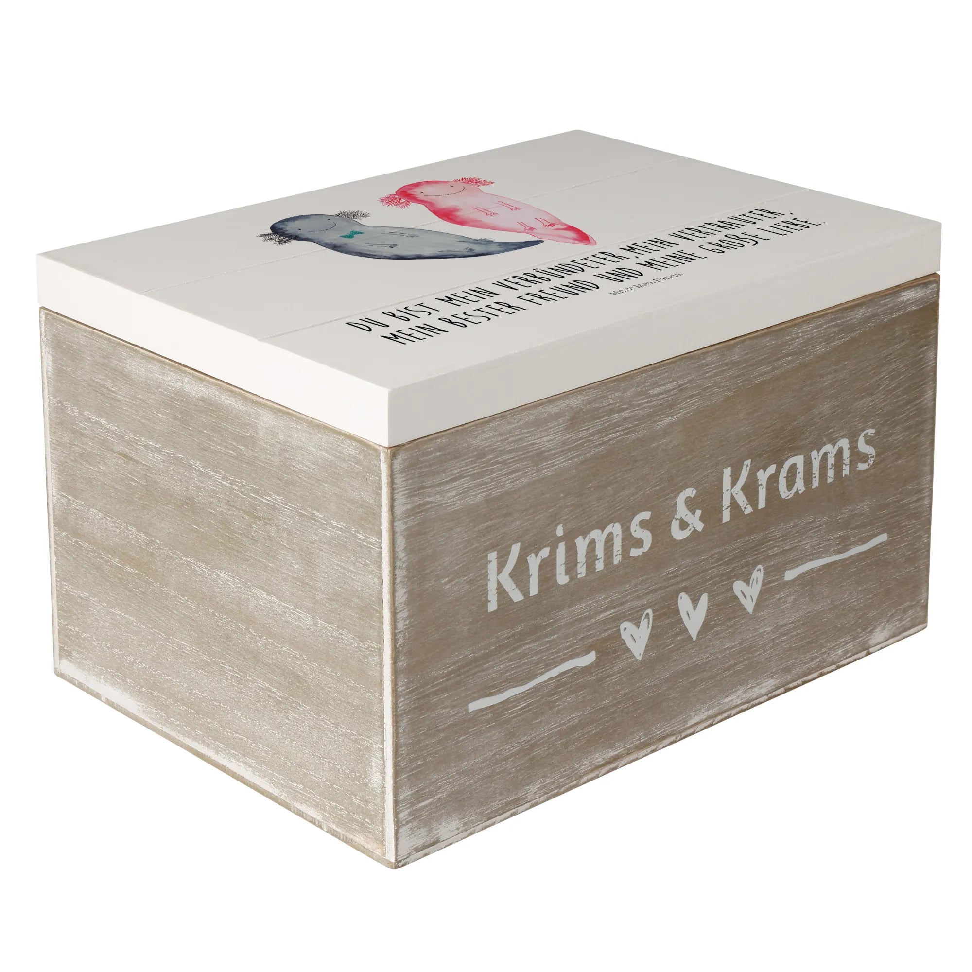 Skrzynia drewniana Axolotl Przyjaciółka - 22 x 15 cm - z napisem - Pastelowy szary