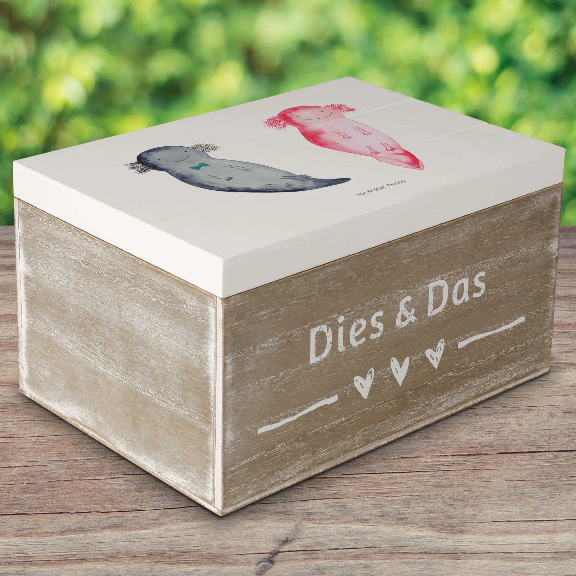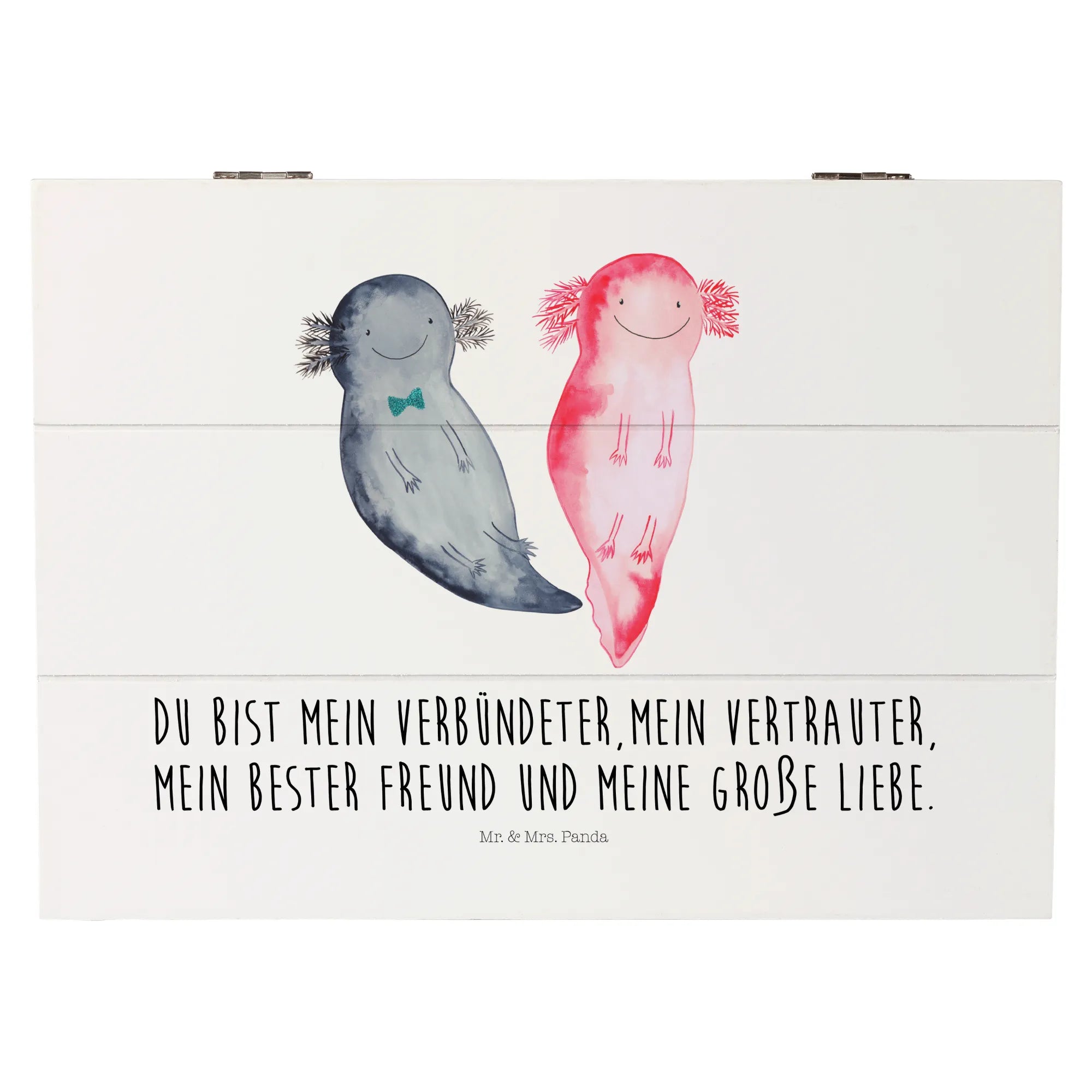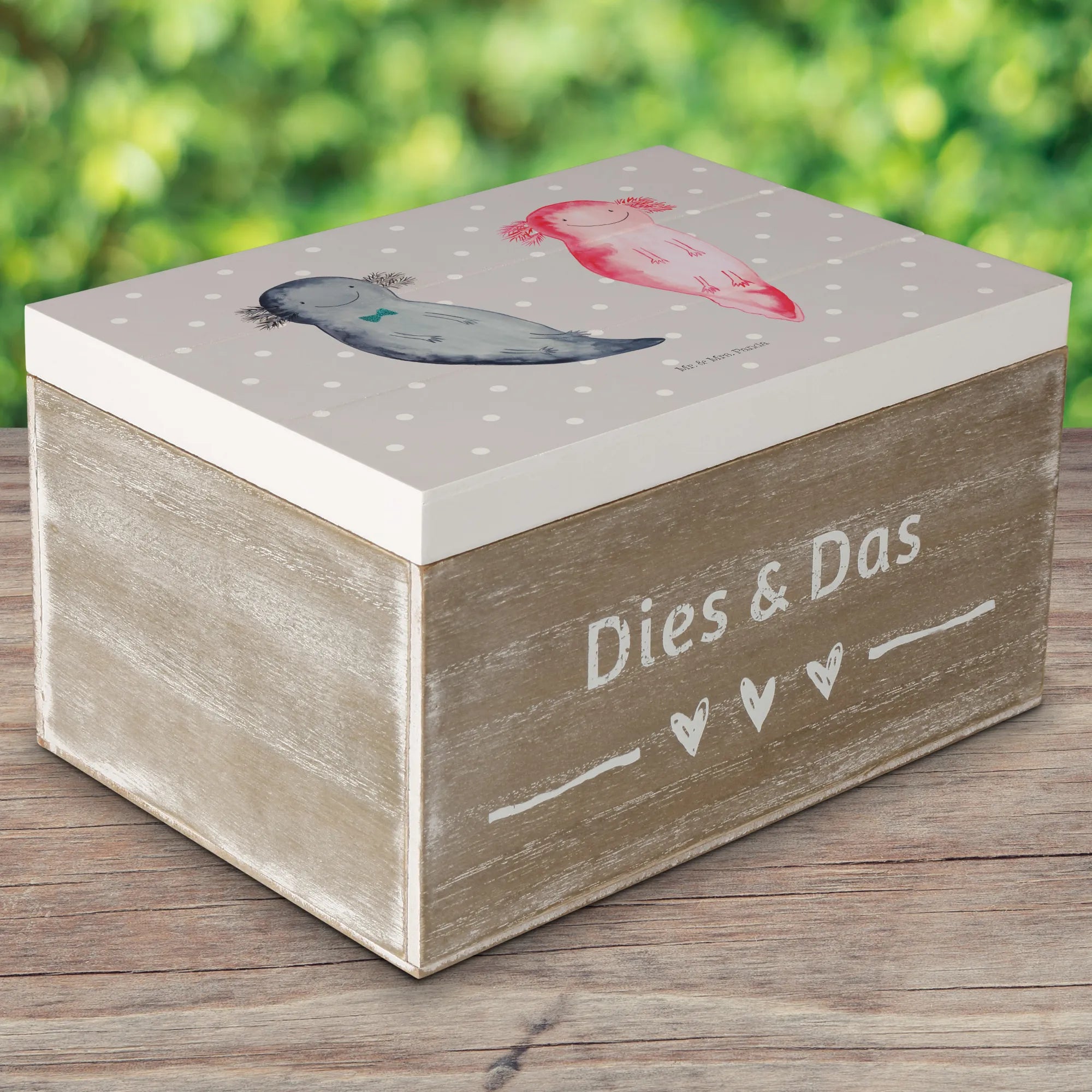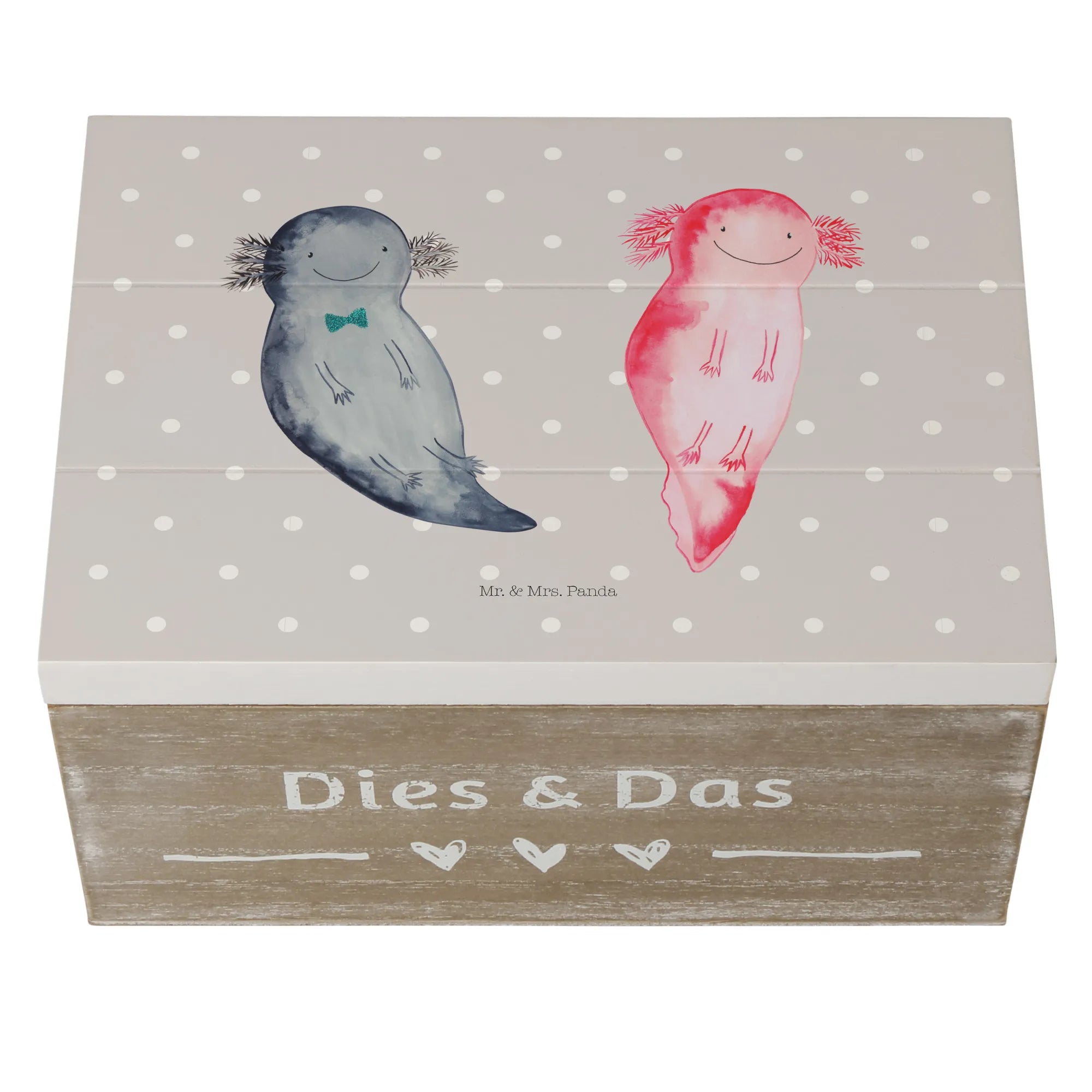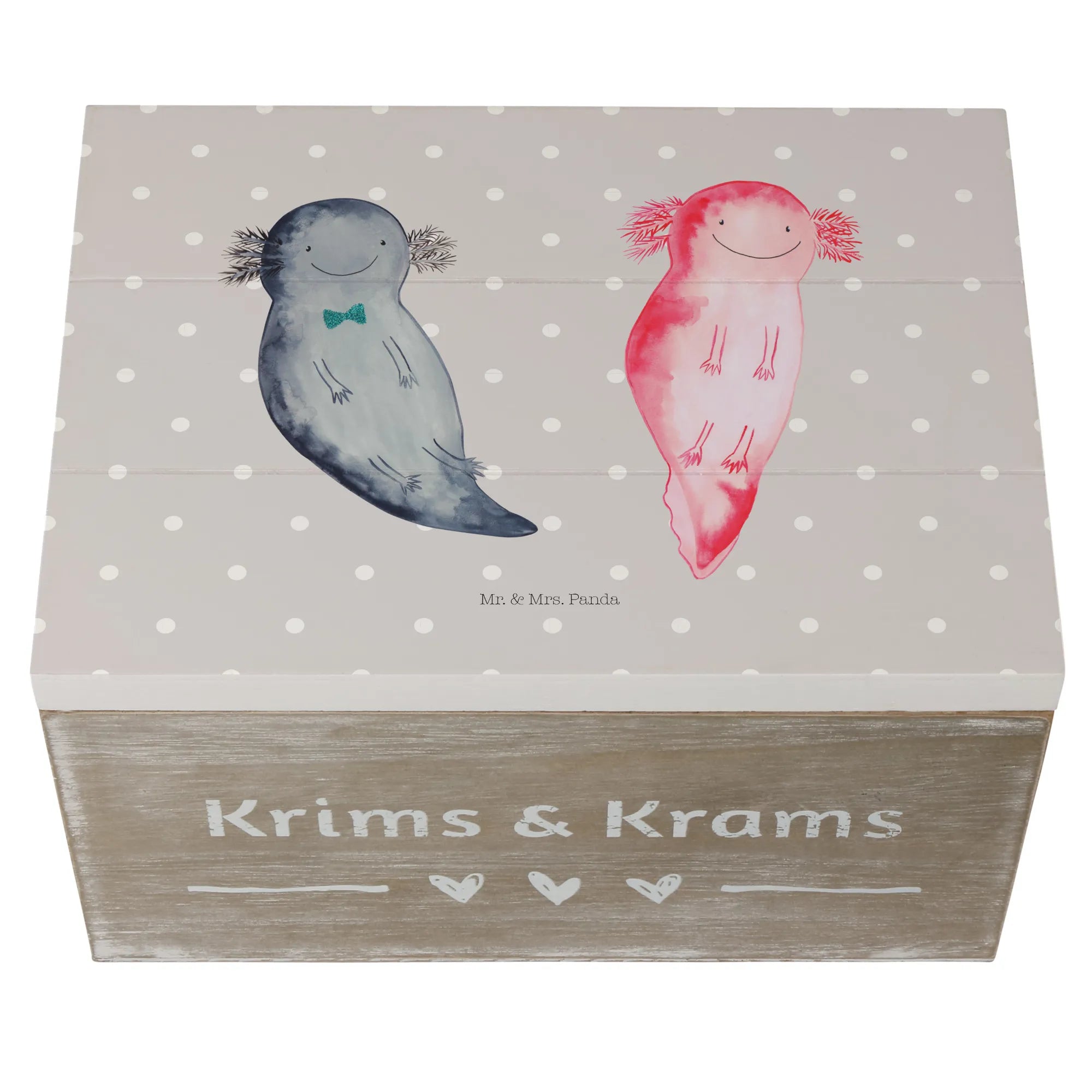 Skrzynia drewniana Axolotl Przyjaciółka - 22 x 15 cm - z napisem - Pastelowy szary