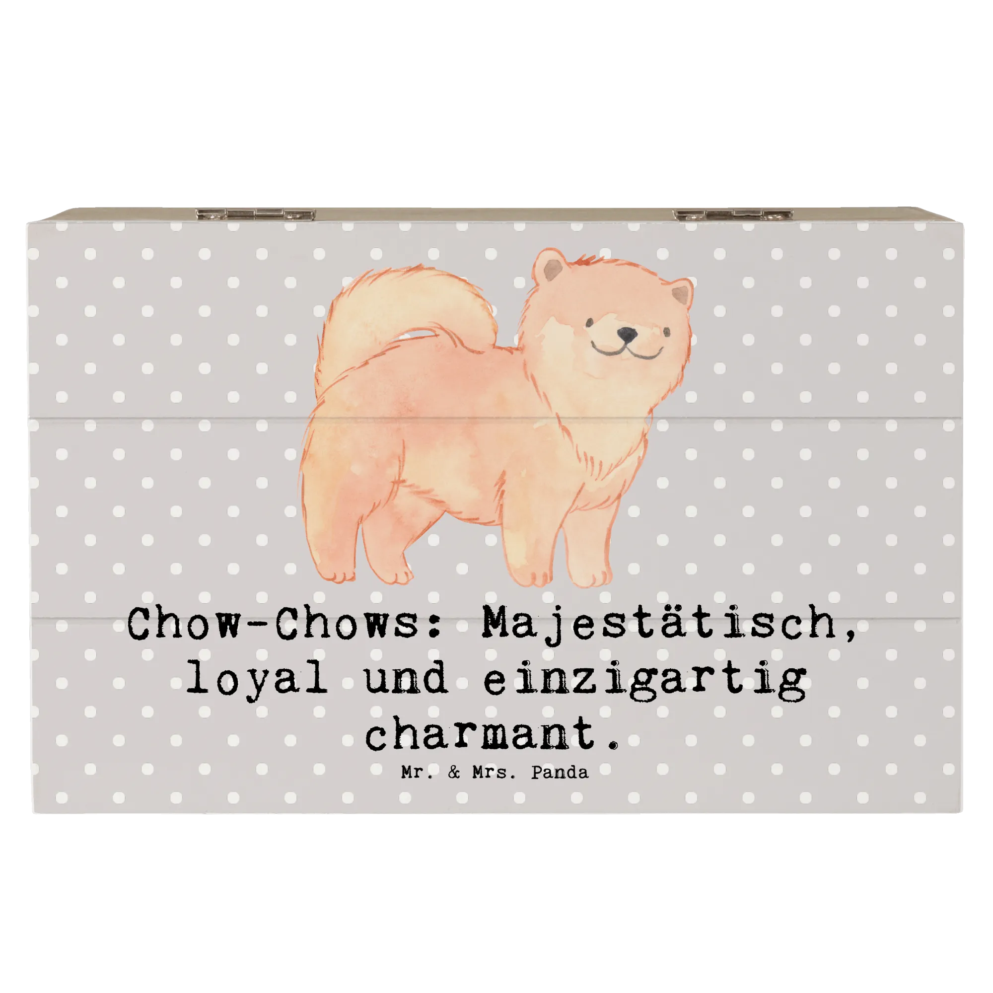Skrzynia drewniana Chow-Chows: Majestätisch, loyal und einzigartig charmant. - 22 x 15 cm - Pastelowy szary