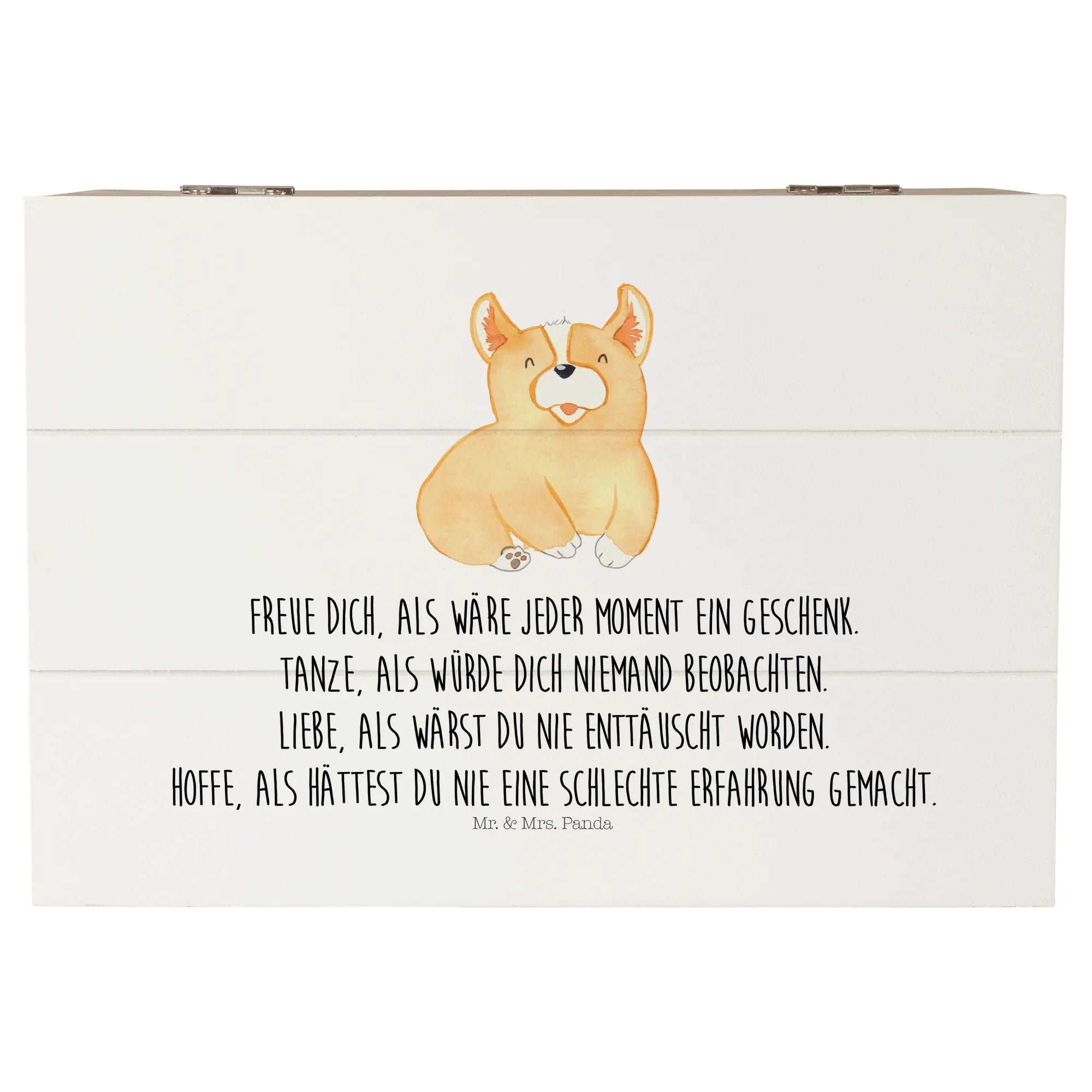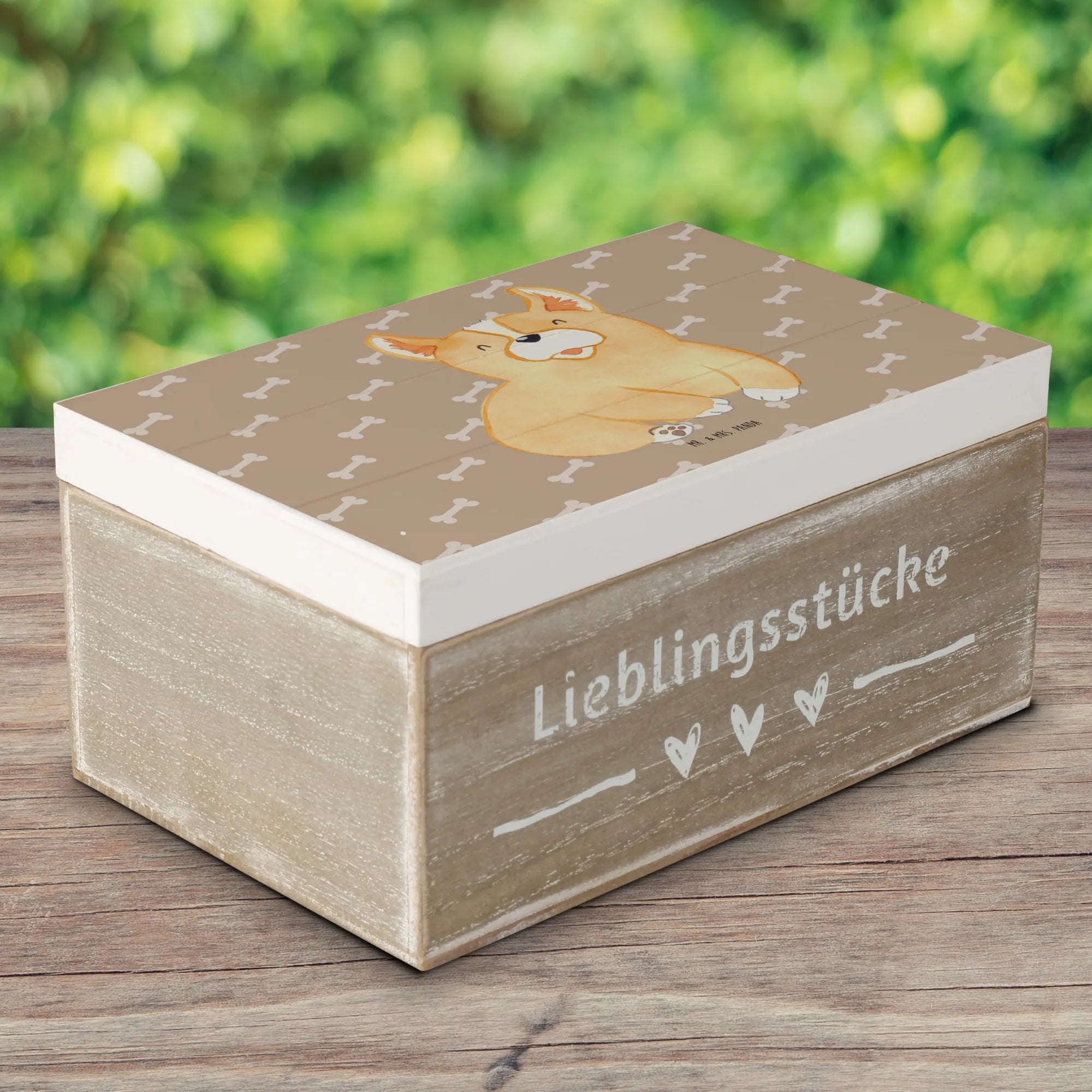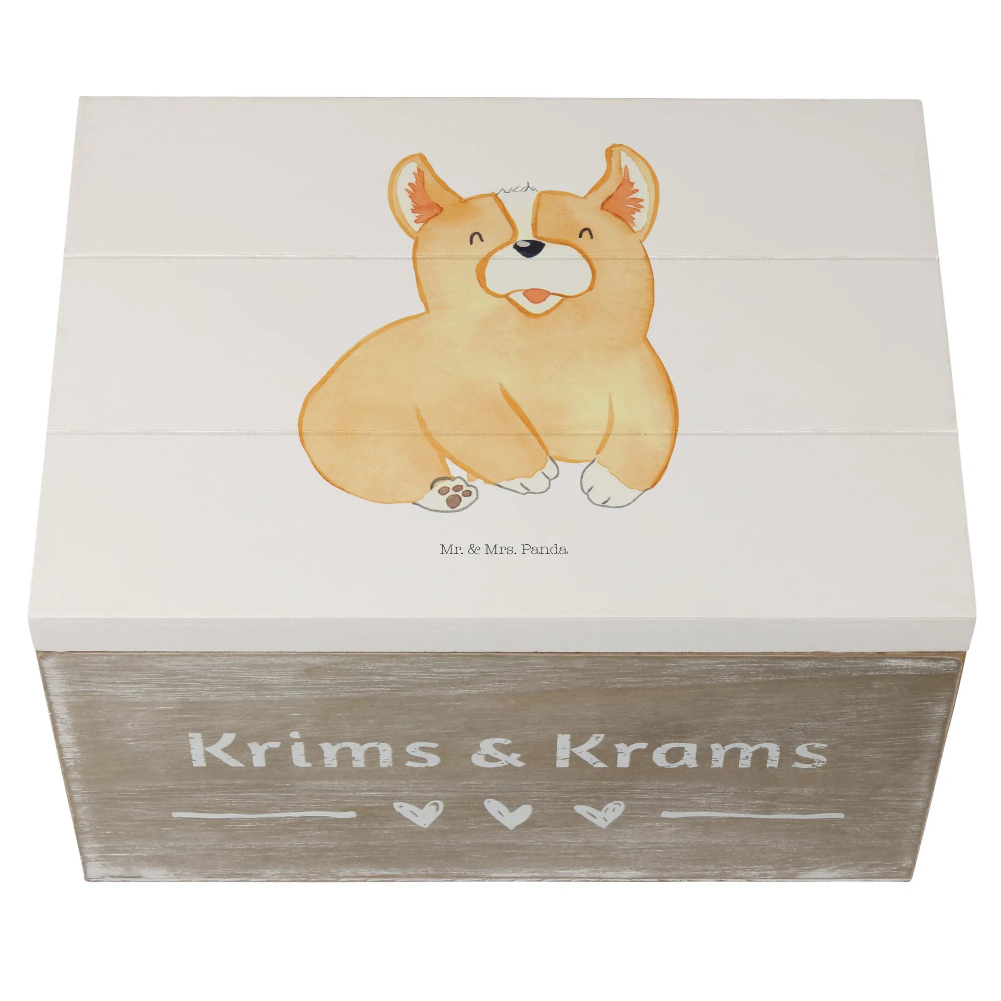 Skrzynia drewniana Corgi - 19 x 12 cm - z napisem - biały