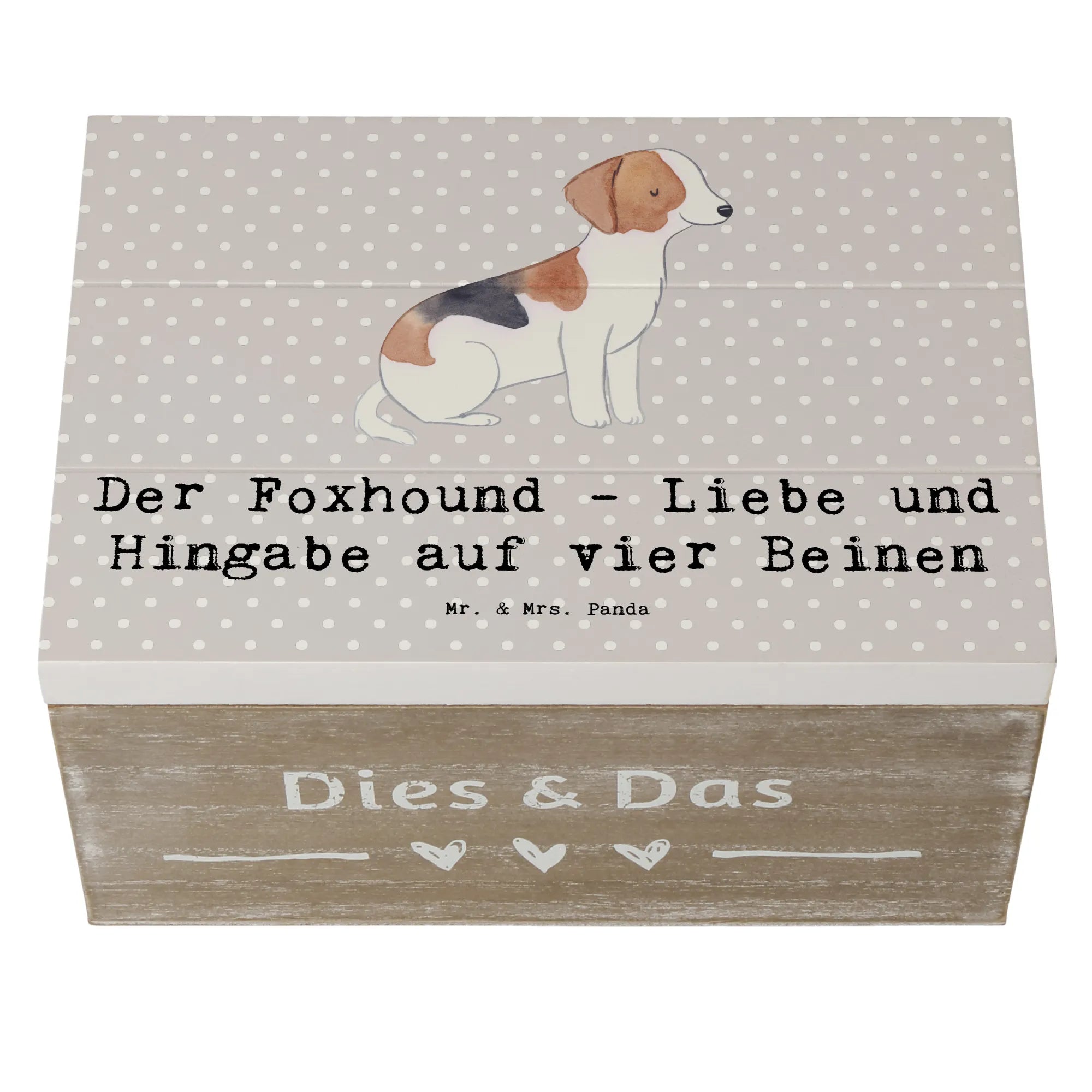 Skrzynia drewniana Der Foxhound - Liebe und Hingabe auf vier Beinen - 22 x 15 cm - Pastelowy szary