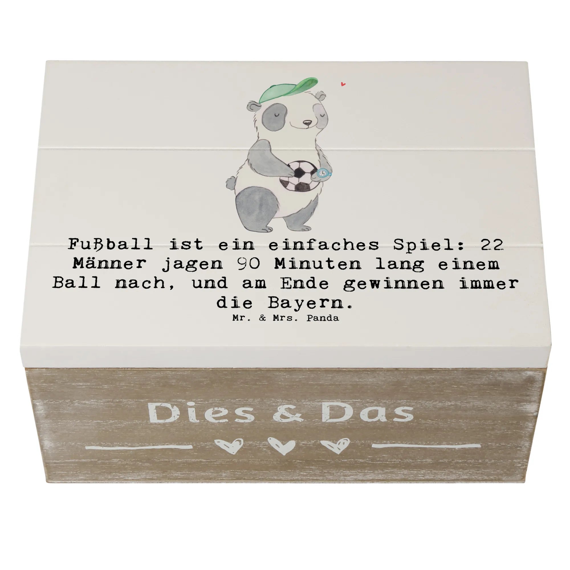 Skrzynia drewniana Fußball ist ein einfaches Spiel: 22 Männer jagen 90 Minuten lang einem Ball nach, und am Ende gewinnen immer die Bayern. - 19 x 12 cm - Pastelowy szary