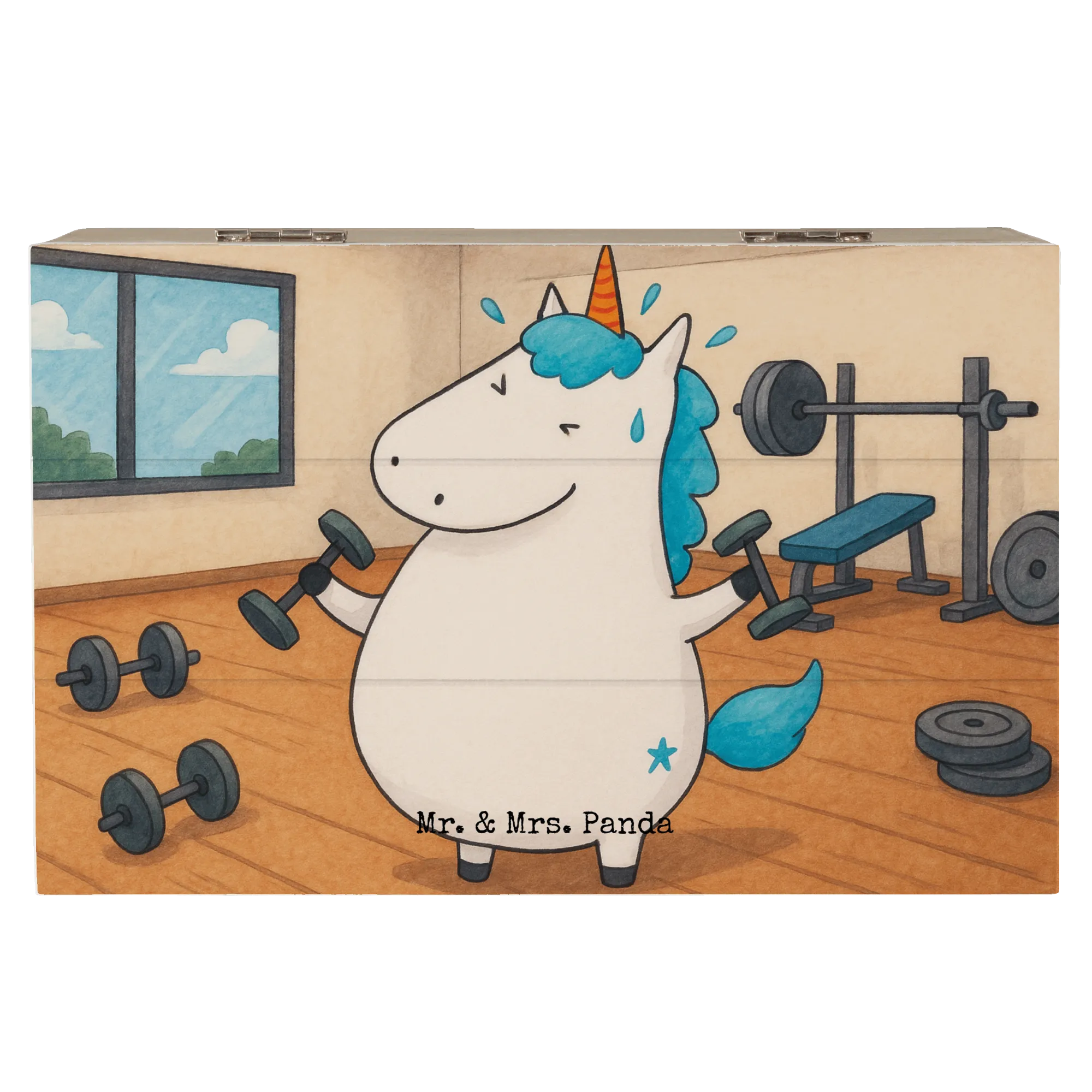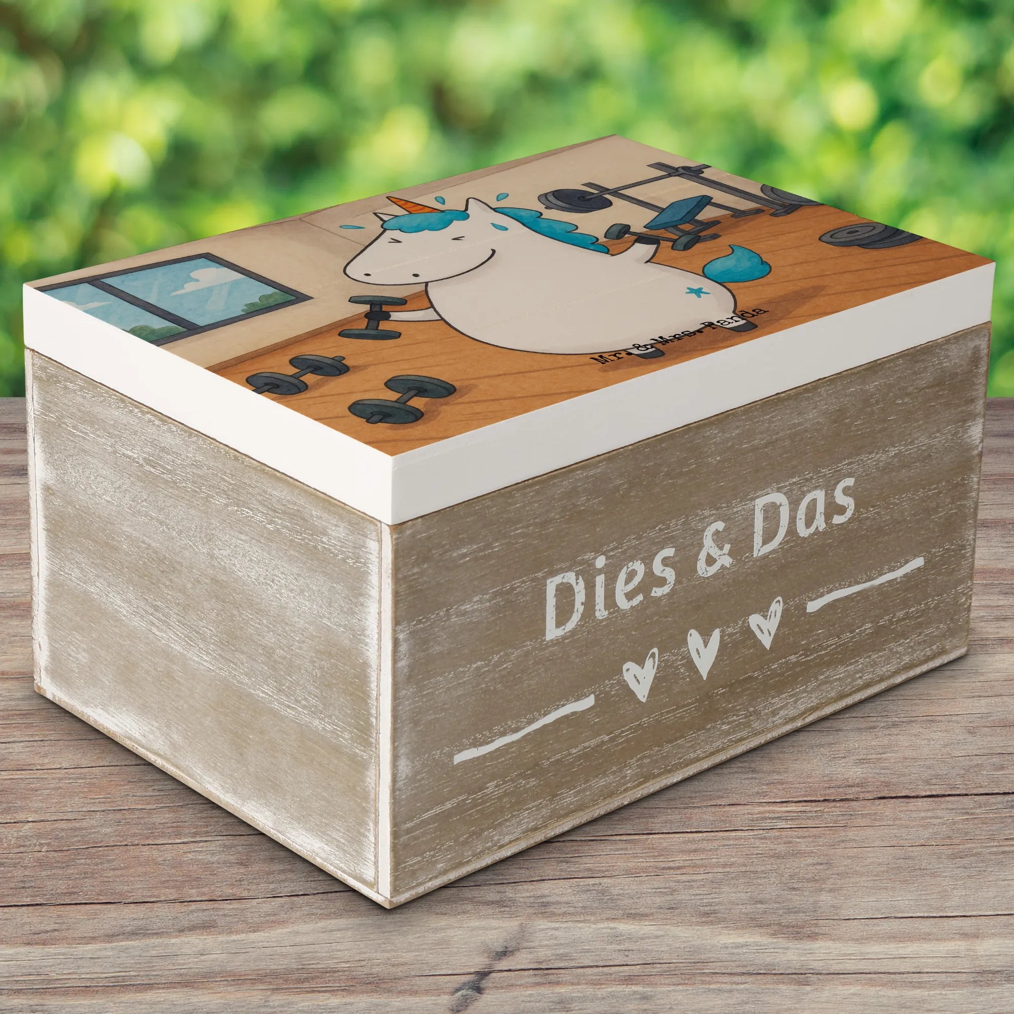 Skrzynia drewniana jednorożec Fitness Design - 19 x 12 cm - z napisem