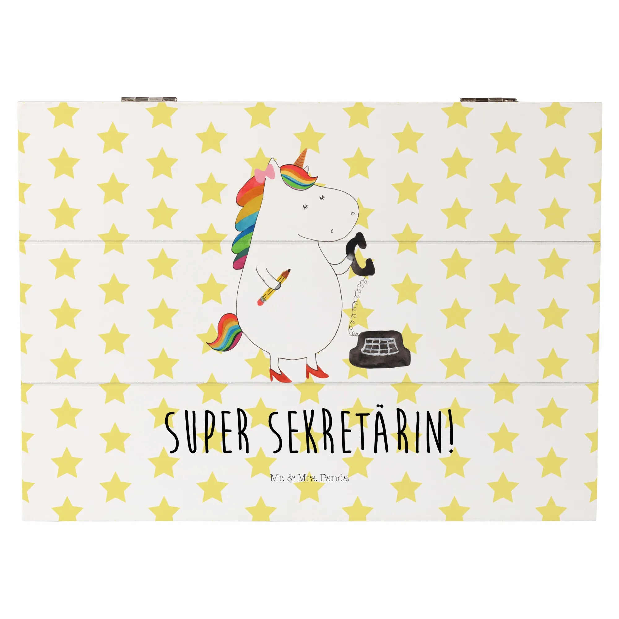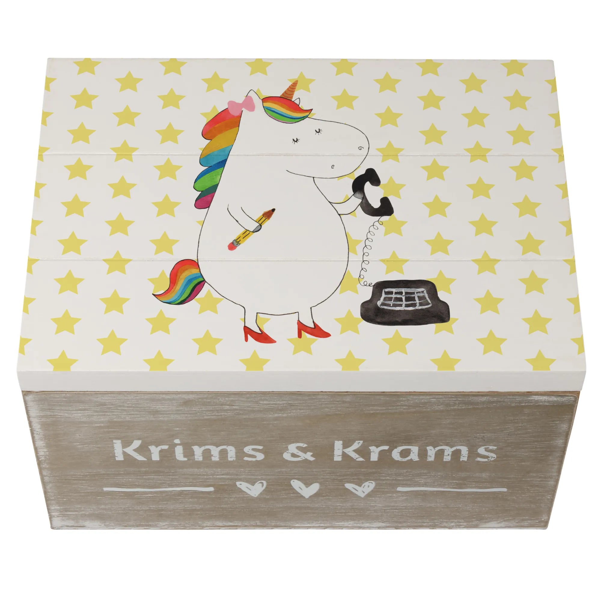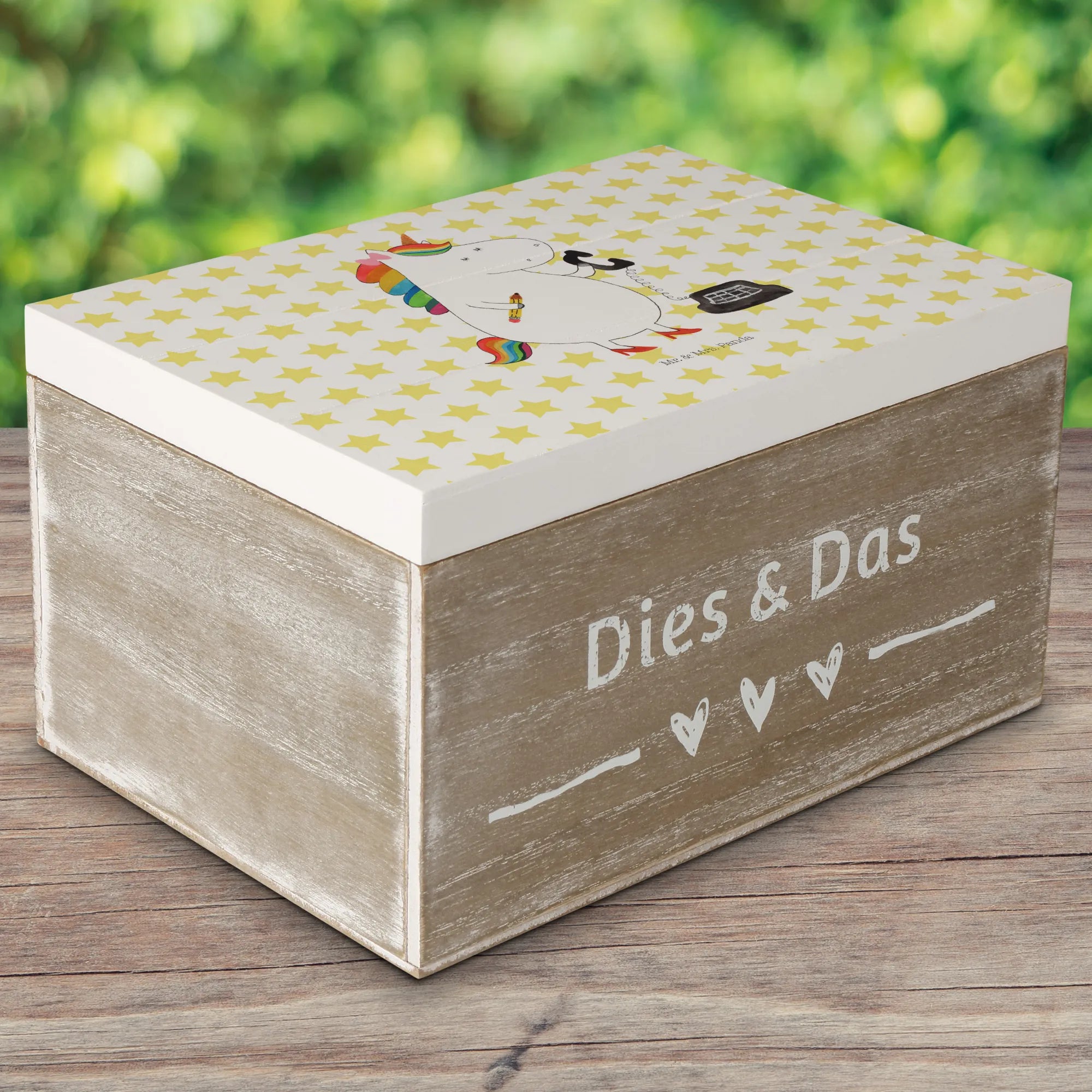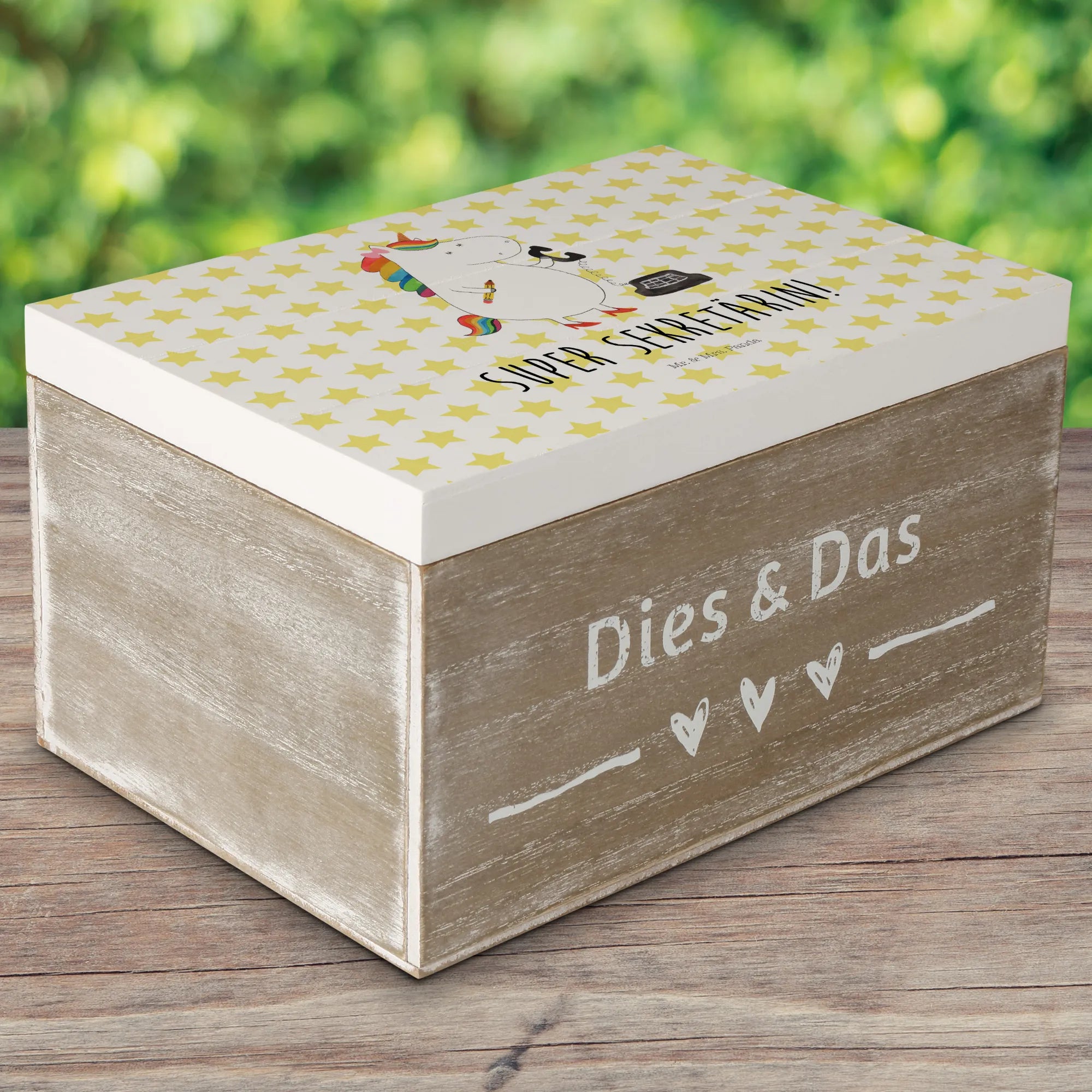 Skrzynia drewniana Jednorożec sekretarka - 22 x 15 cm - z napisem - biały