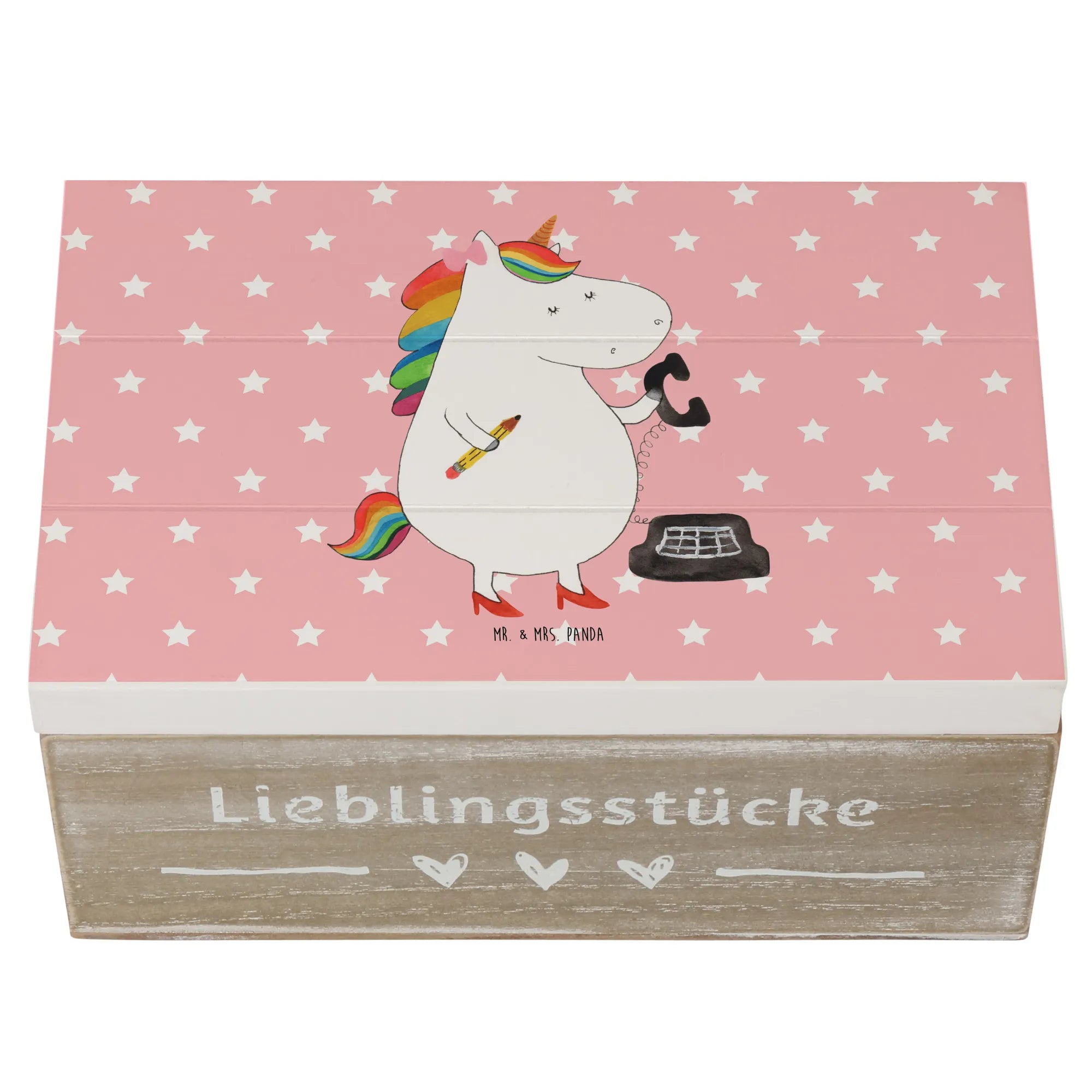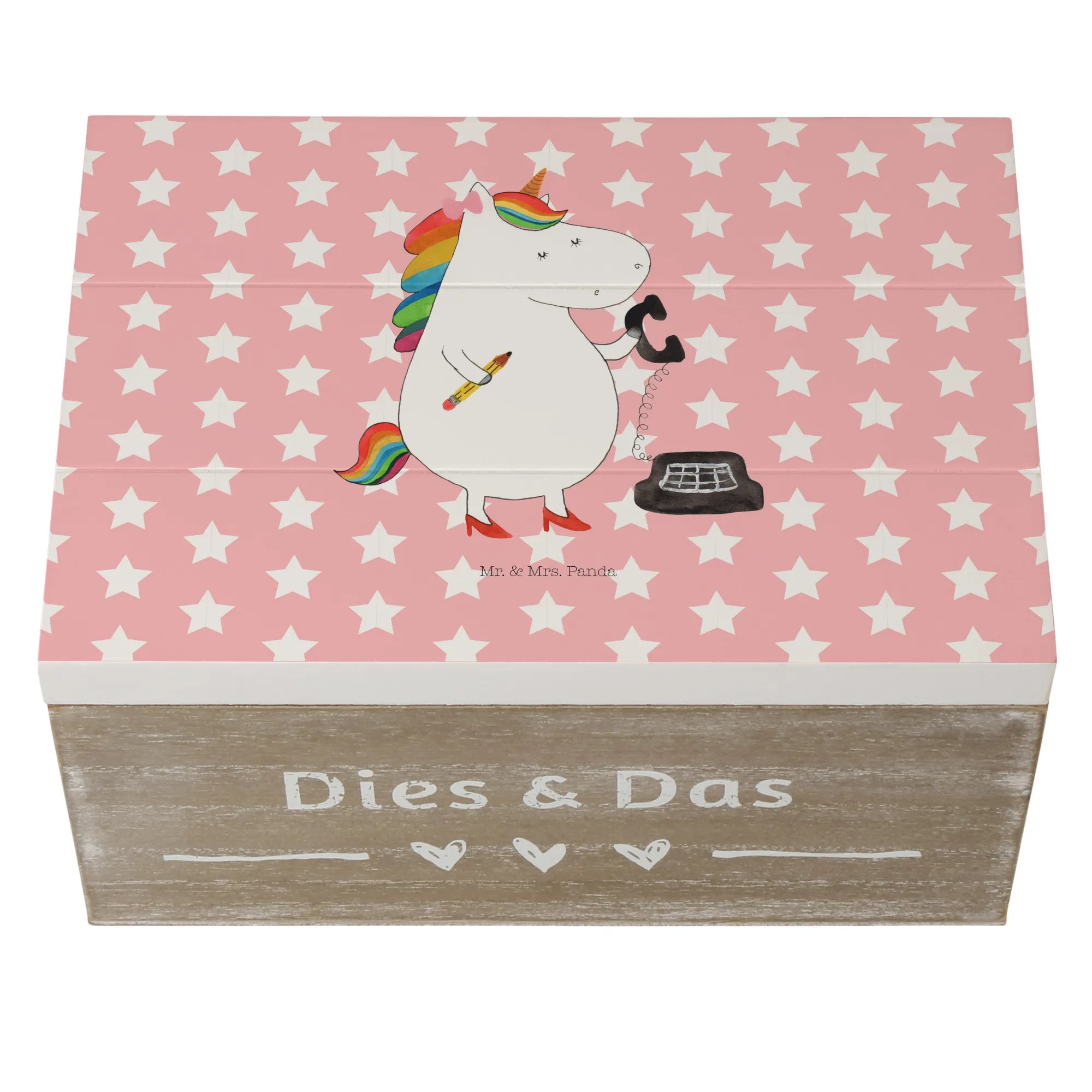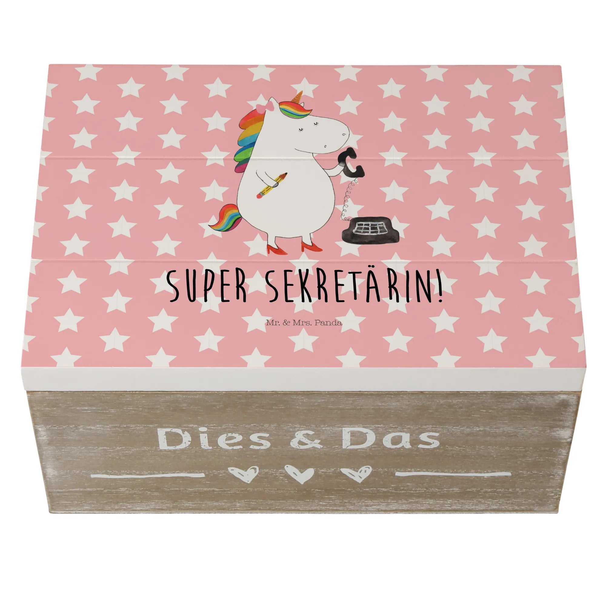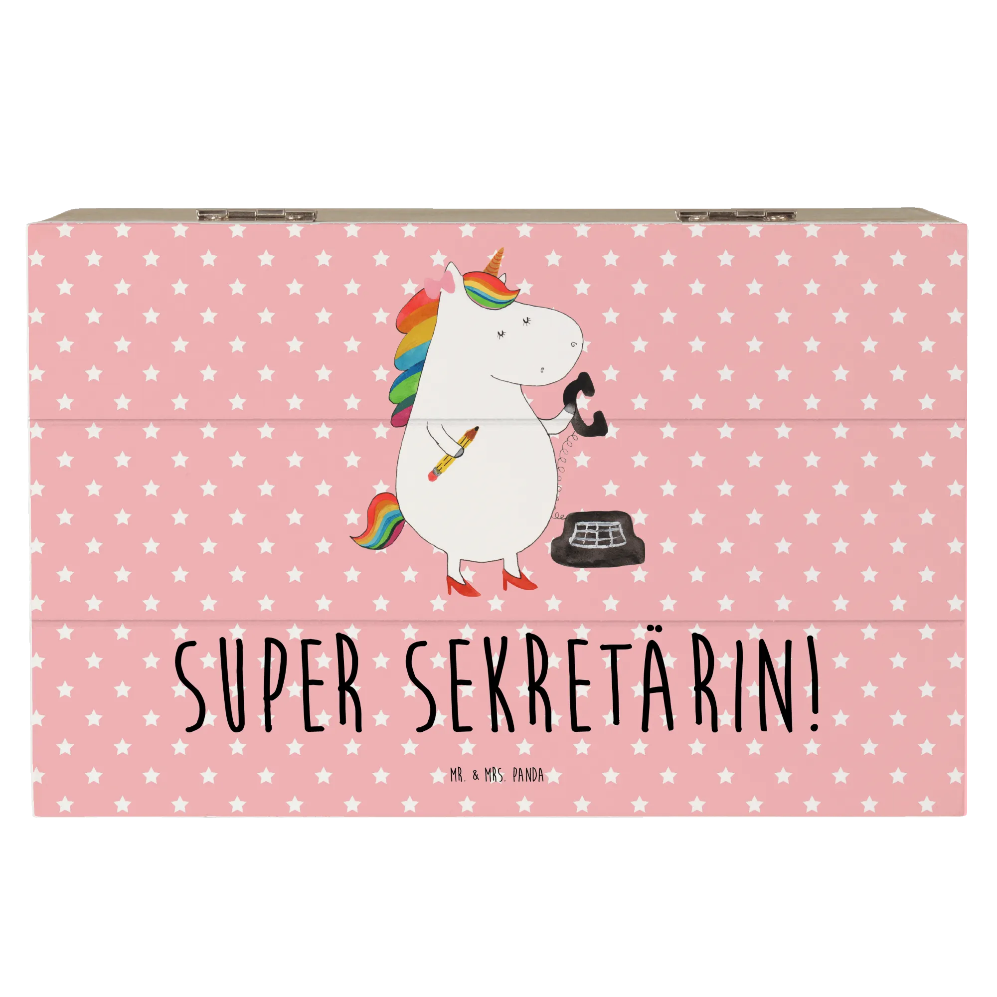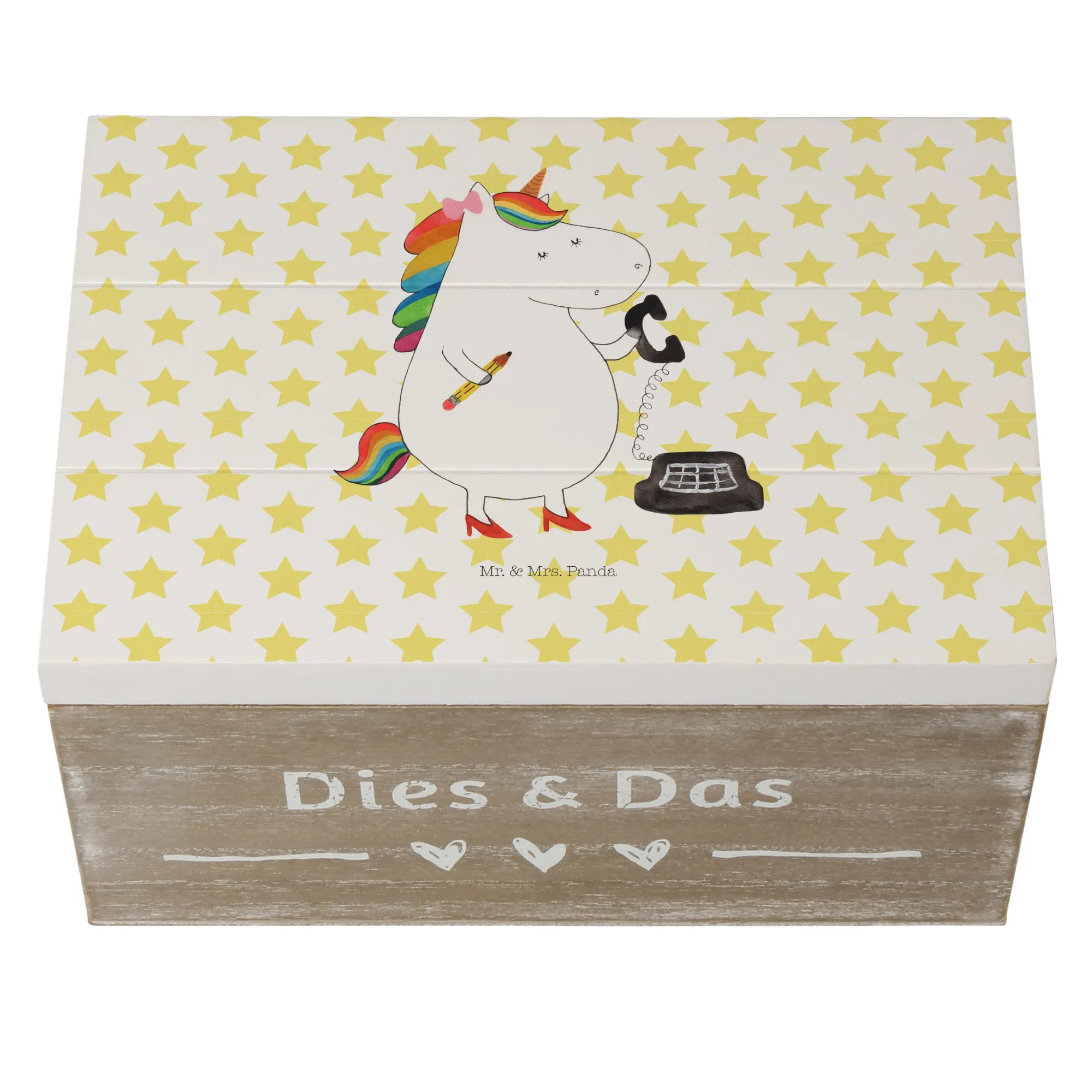 Skrzynia drewniana Jednorożec sekretarka - 22 x 15 cm - z napisem - biały