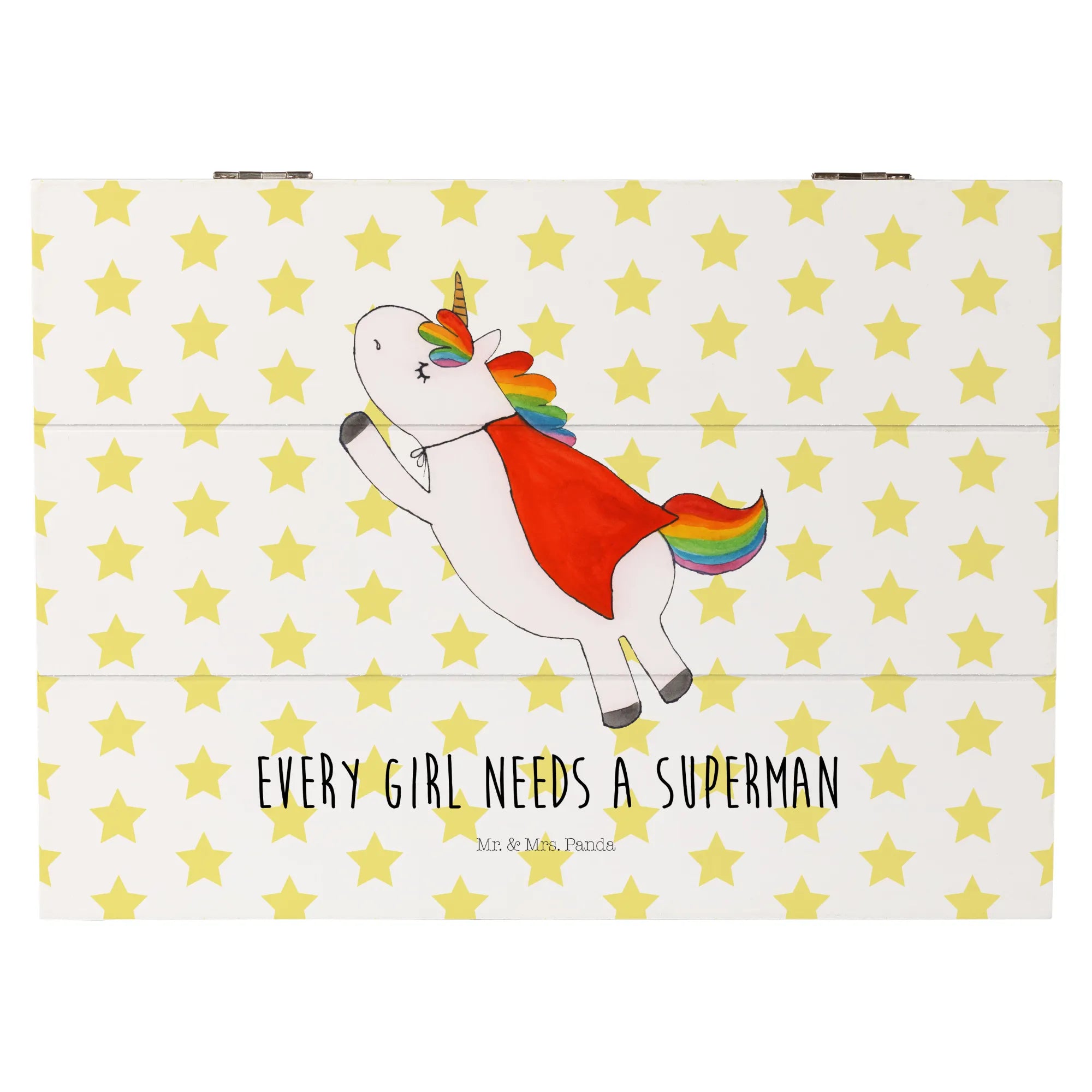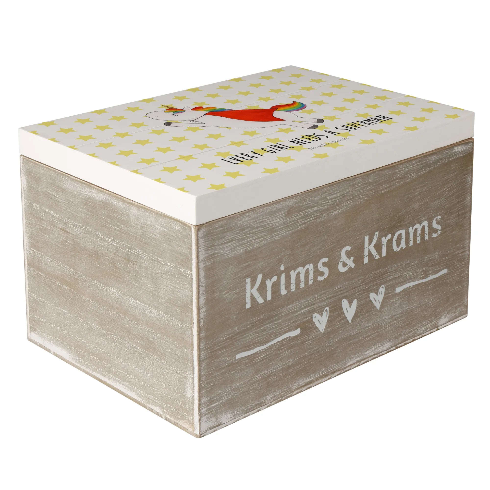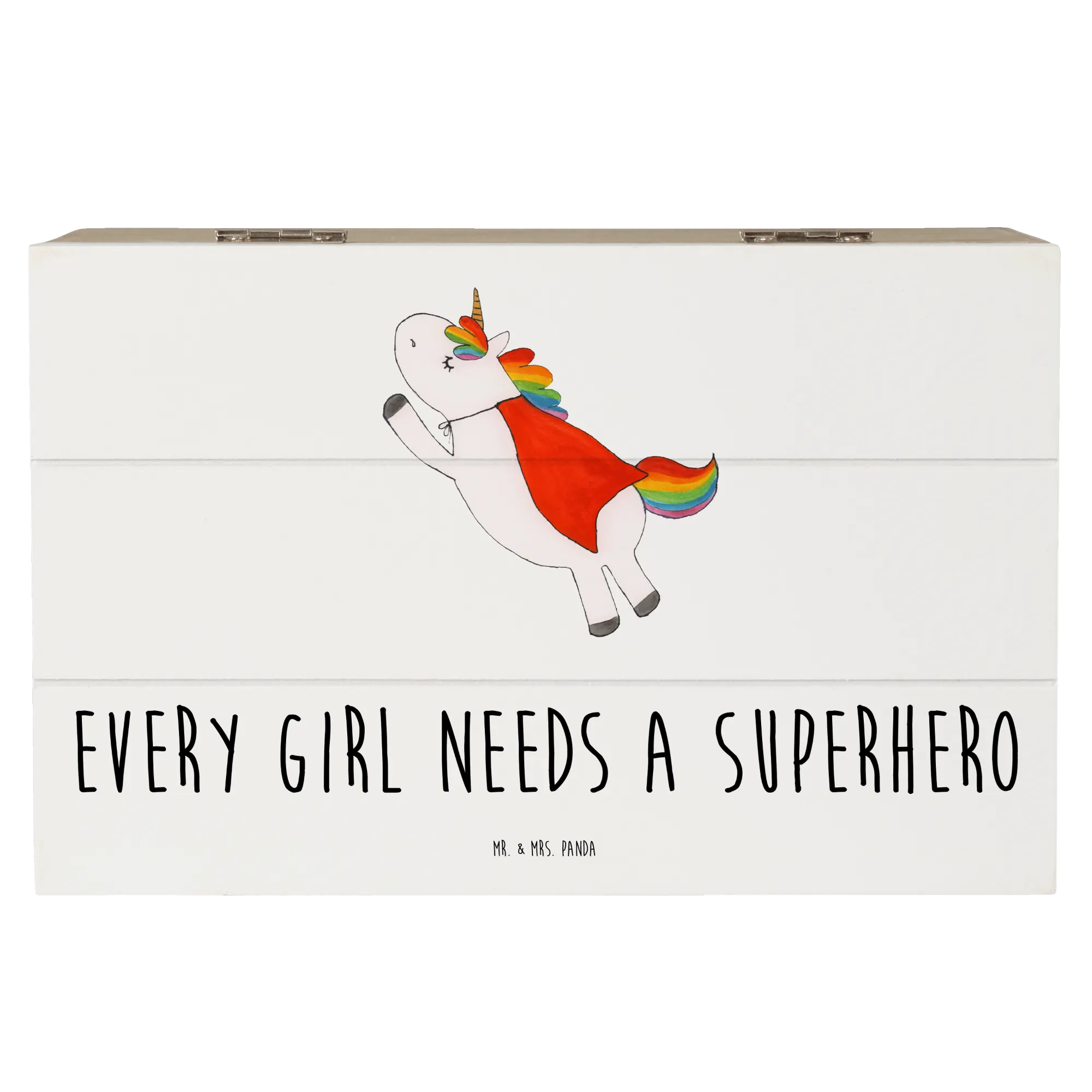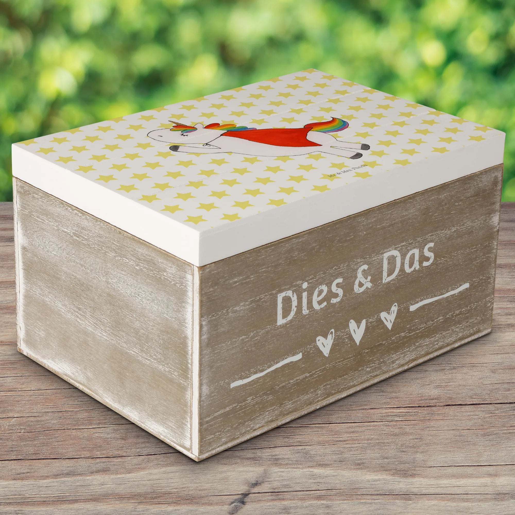 Skrzynia drewniana Jednorożec Super - 22 x 15 cm - z napisem - biały